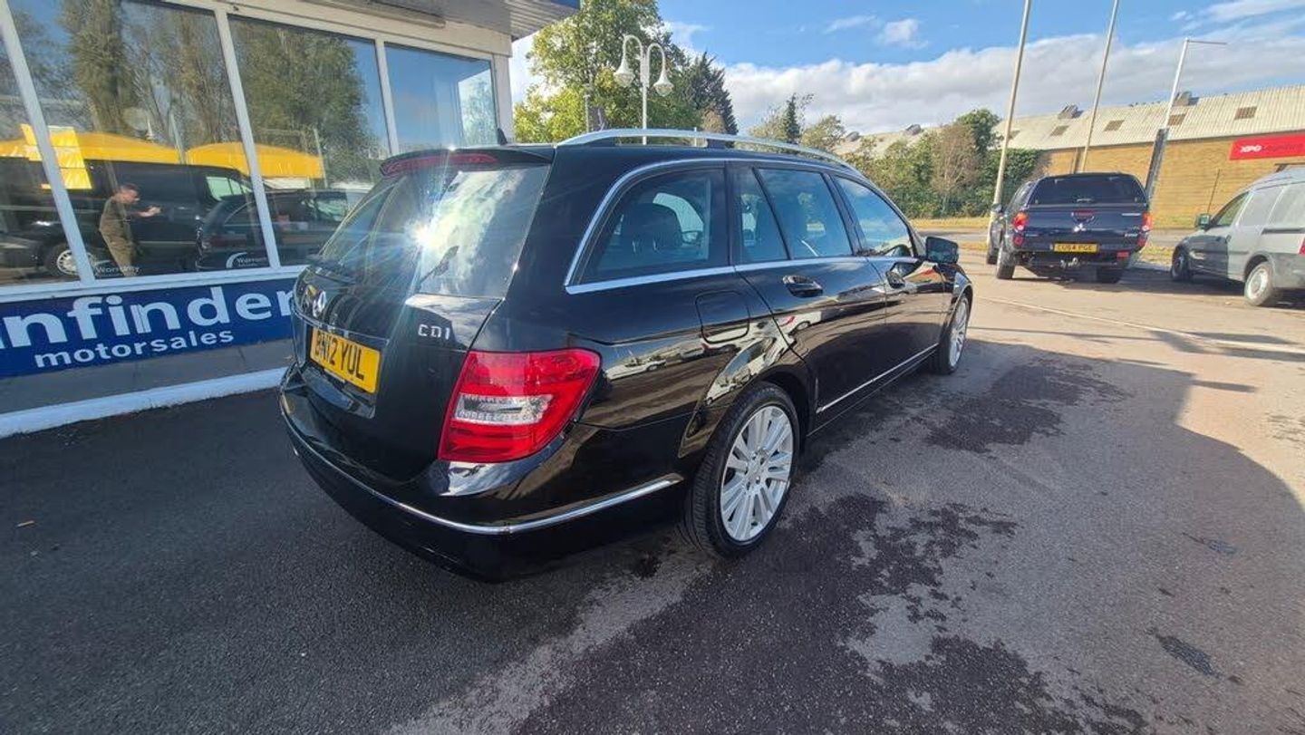 MERCEDES-BENZ C CLASS C220 CDI BlueEFFICIENCY Elegance Estate 5dr. 81000 miles. Mot until 20th May 2026. Alloy wheels. Manual. Finished in black with black leather interior.