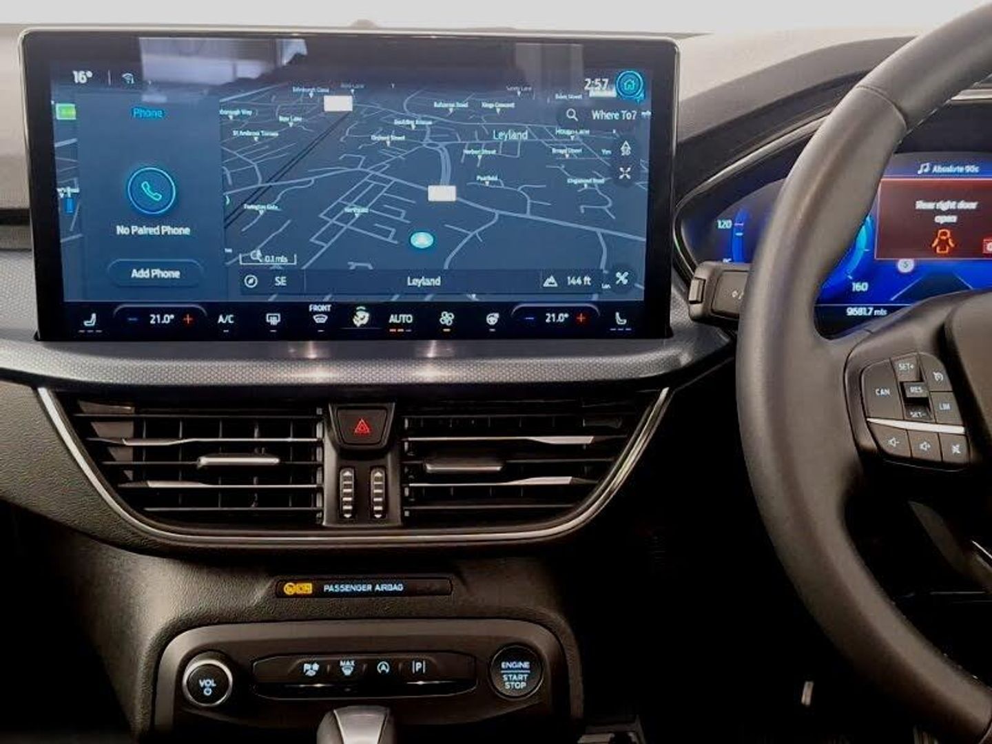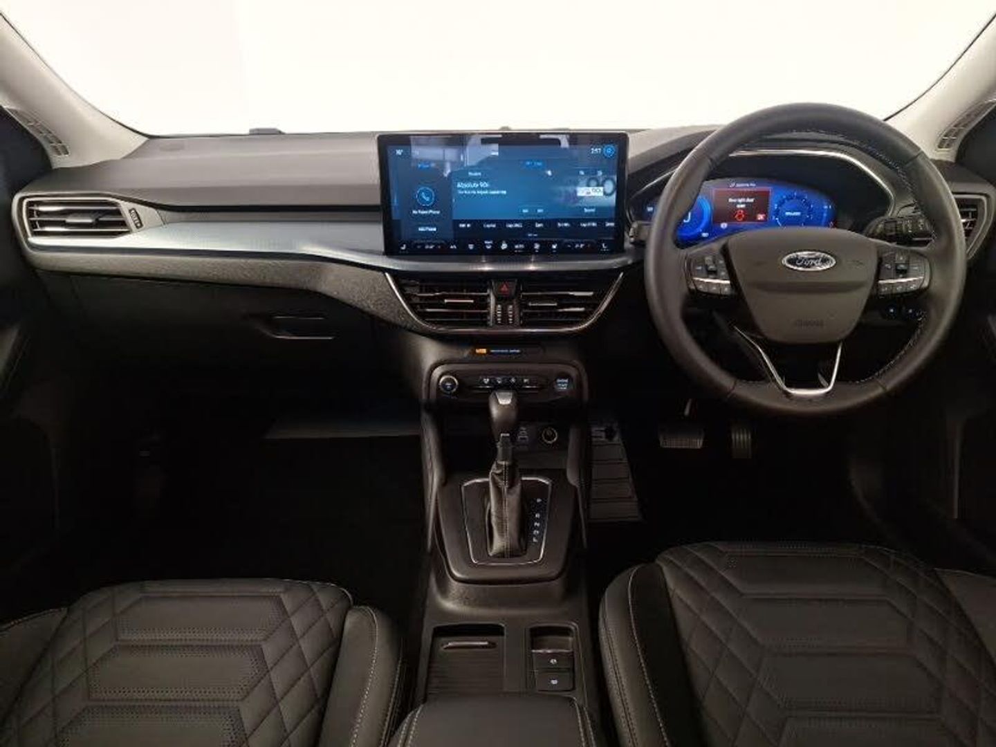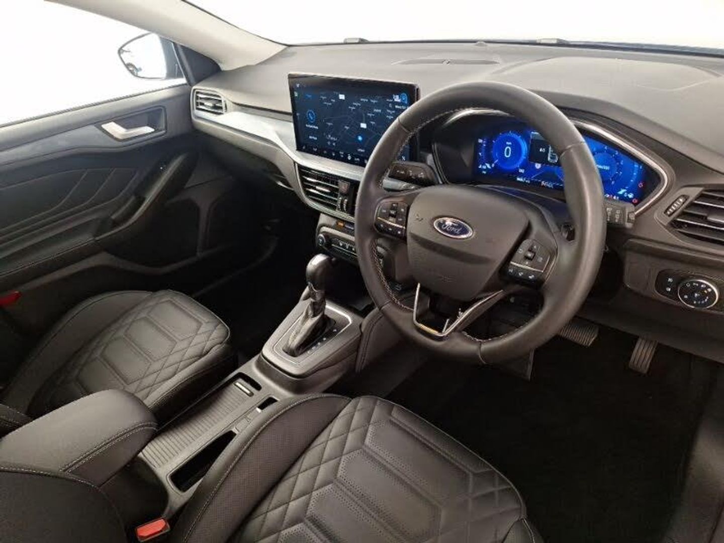 Ford SYNC4 Nav with 13.2'' touchscreen, DAB, Emergency Assistance, Apple Carplay & Android Auto, B&O Premium Audio with 10 speakers, FordPass Connect, Dual zone electronic air temperature control, Bluetooth system, Wireless charging pad, Lane keeping system - lane keeping alert and lane keeping aid, Eco mode, 2 USB ports, Auto headlamps (on/off), Electrically operated heated power fold door mirrors with puddle lamp with side indicators, LED daytime running lamp, Privacy glass, Quickclear heated windscreen, Rain sensor, Isofix child seat preparation, Winter pack - Focus, Auto hold function, 18" 5 spoke shadow black machined finish alloy wheels with mini spare wheel