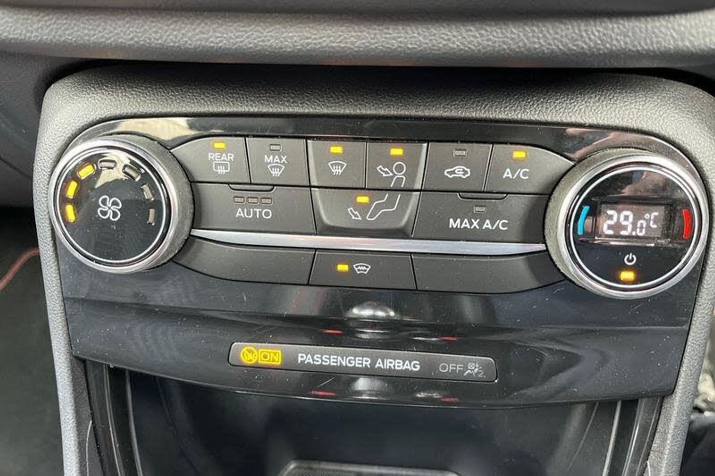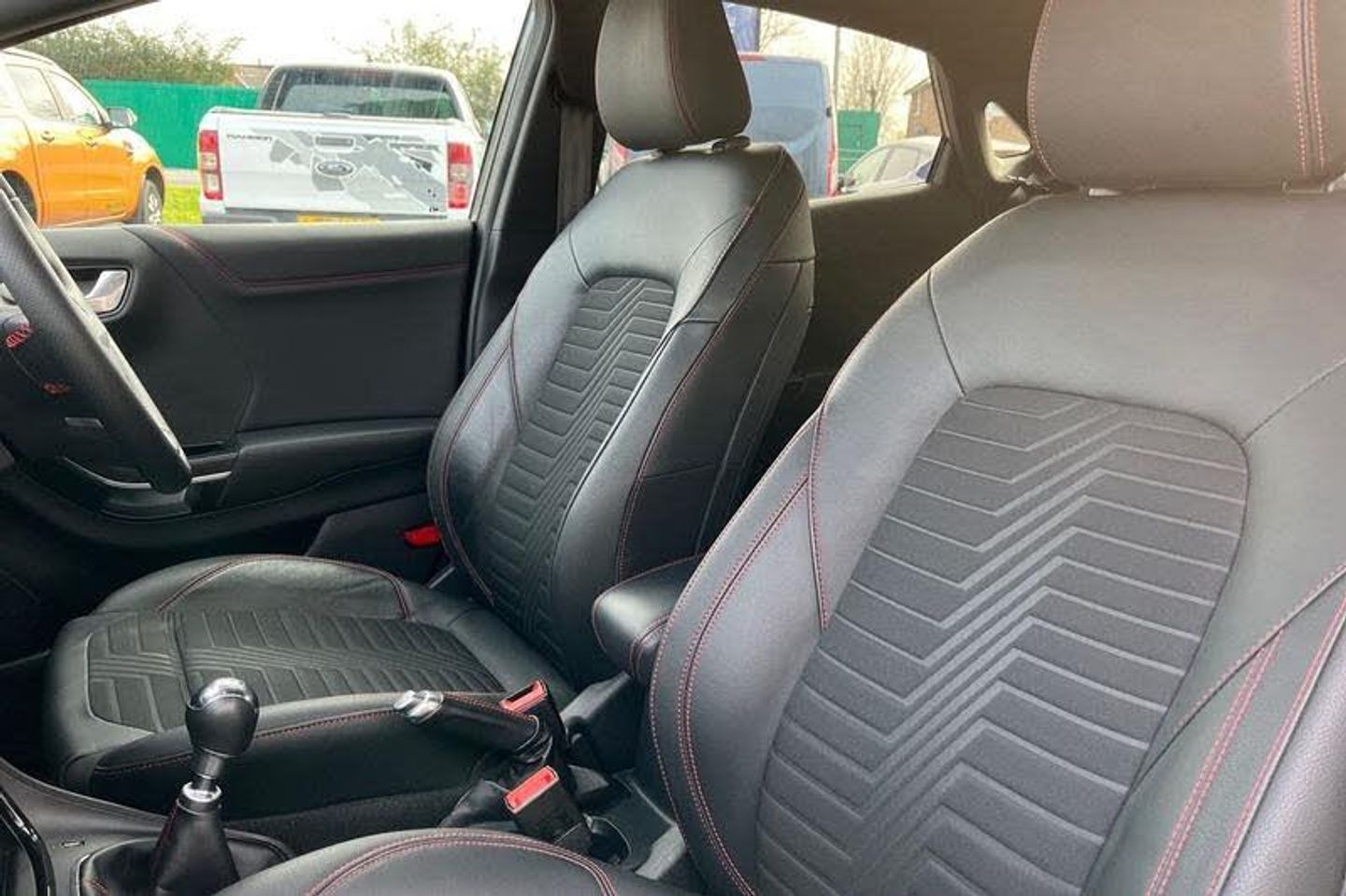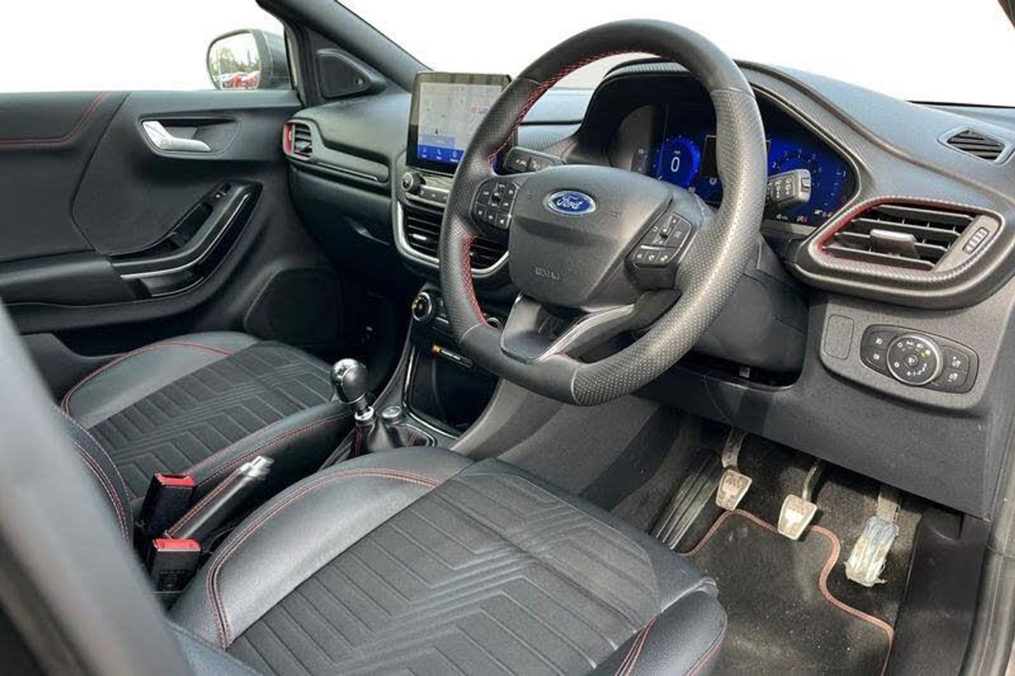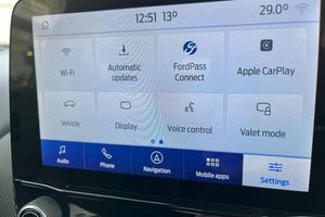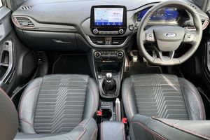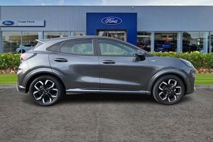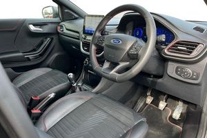 Driver impairment monitor, Emergency call service, Ford easy fuel, Full digital 12.3 instrument cluster, Lane keeping aid with lane departure warning, Power assist steering, Power start button, Rear parking sensor, Selectable drive modes(Normal, sport, Eco, trail, slippery), Speed sign recognition, Automatic headlights with auto high beam, Automatic rain sensing wipers, Front fog lamps, LED daytime running lights, LED rear lamps, Power foldable heated door mirrors with puddle lamps, Privacy glass to side rear windows and tailgate glass, Quickclear heated windscreen, Rear side wing doors, Rear wiper, ST-Line body styling kit with unique grille, Third brake light, 3 seat bench in 2nd row, Centre console with armrest and stowage, Ford megabox extended bootspace, Front and rear head restraints, Front floor mats, Manual 4 way driver seat adjust with lumbar adjustment, Manual 4 way passenger seat with lumbar seat adjustment, Sensico partial premium upholstery, Single front passenger seat, ST-Line flat bottomed sensico leather steering wheel with leather handbrake and aluminium gear knob, Wireless charging pad with electronic air temperature control (EATC), 3 rear seatbelts, Child safety lock, Electronic stability control (ESC) and hill start assist, Pedestrian/cyclist detection & post-collision braking, Pre collision assist system, Tyre pressure monitoring system (TPMS)