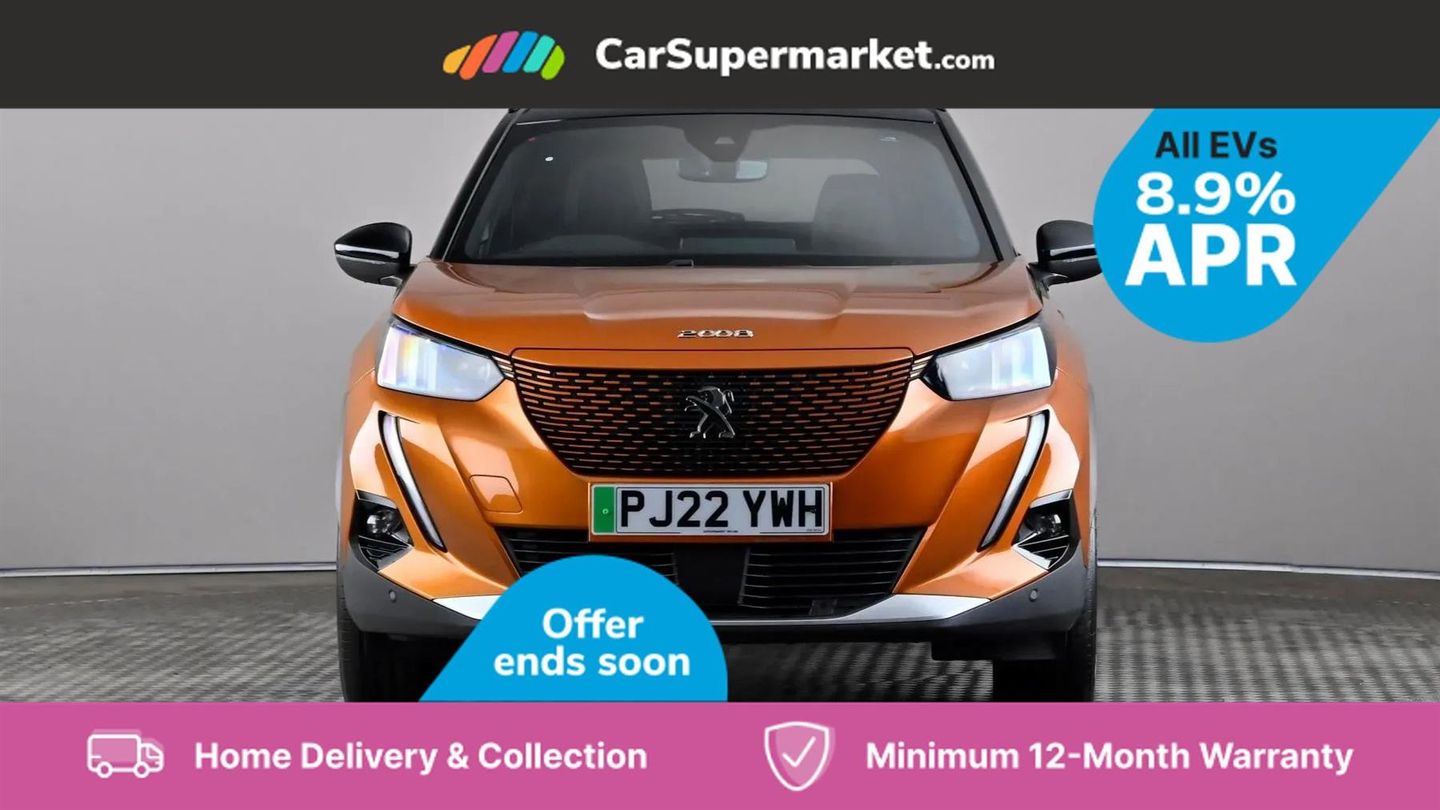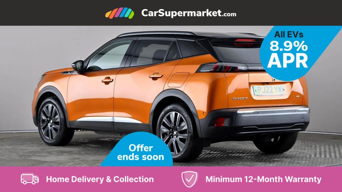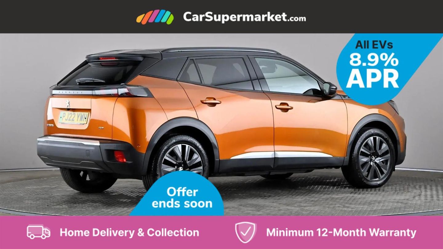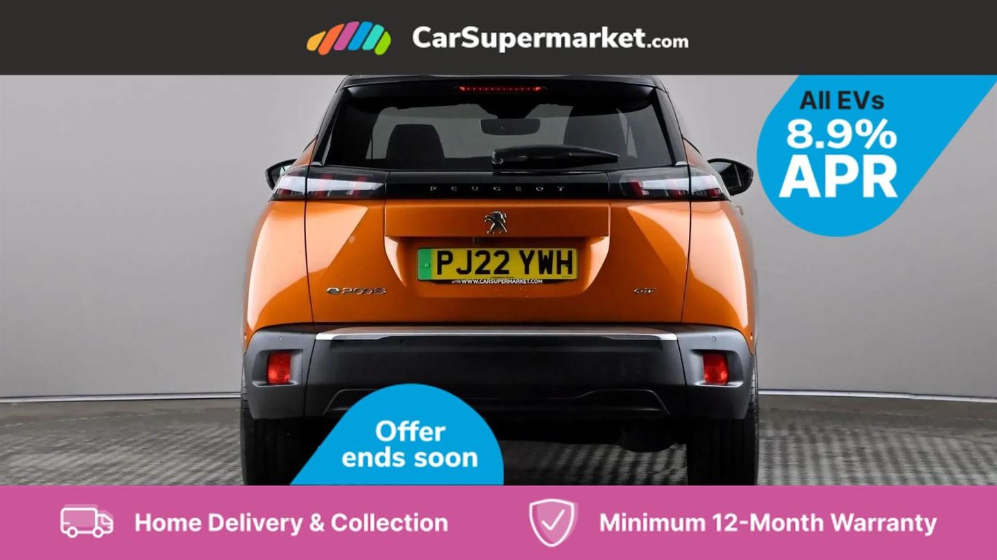 Blind Spot Monitoring, Bluetooth, Sat Nav, Apple CarPlay, Android Auto, Peugeot i-Cockpit, Keyless Entry, 18" Alloy Wheels;This 2022 Peugeot E-2008 GT Premium, with only one owner and a full service history up to 32,274 miles in May 2025, offers a compelling electric driving experience. This stylish SUV boasts a 50 kWh battery providing a maximum range of 212 miles when new, and benefits from a MOT valid until May 2026. Key features include Bluetooth for seamless phone connectivity and full LED headlights with Smartbeam Assist for enhanced visibility. The convenience of this electric Peugeot is further highlighted by its charging capabilities. A full charge at home using a 7kW charger takes approximately 7 hours and 30 minutes, ideal for overnight top ups. For faster charging on the go, it can reach 80% capacity in just 30 minutes from empty at a public charging station. These attributes demonstrate the E-2008 GT Premium's suitability for both daily commutes and longer journeys, offering a practical and modern approach to motoring.
