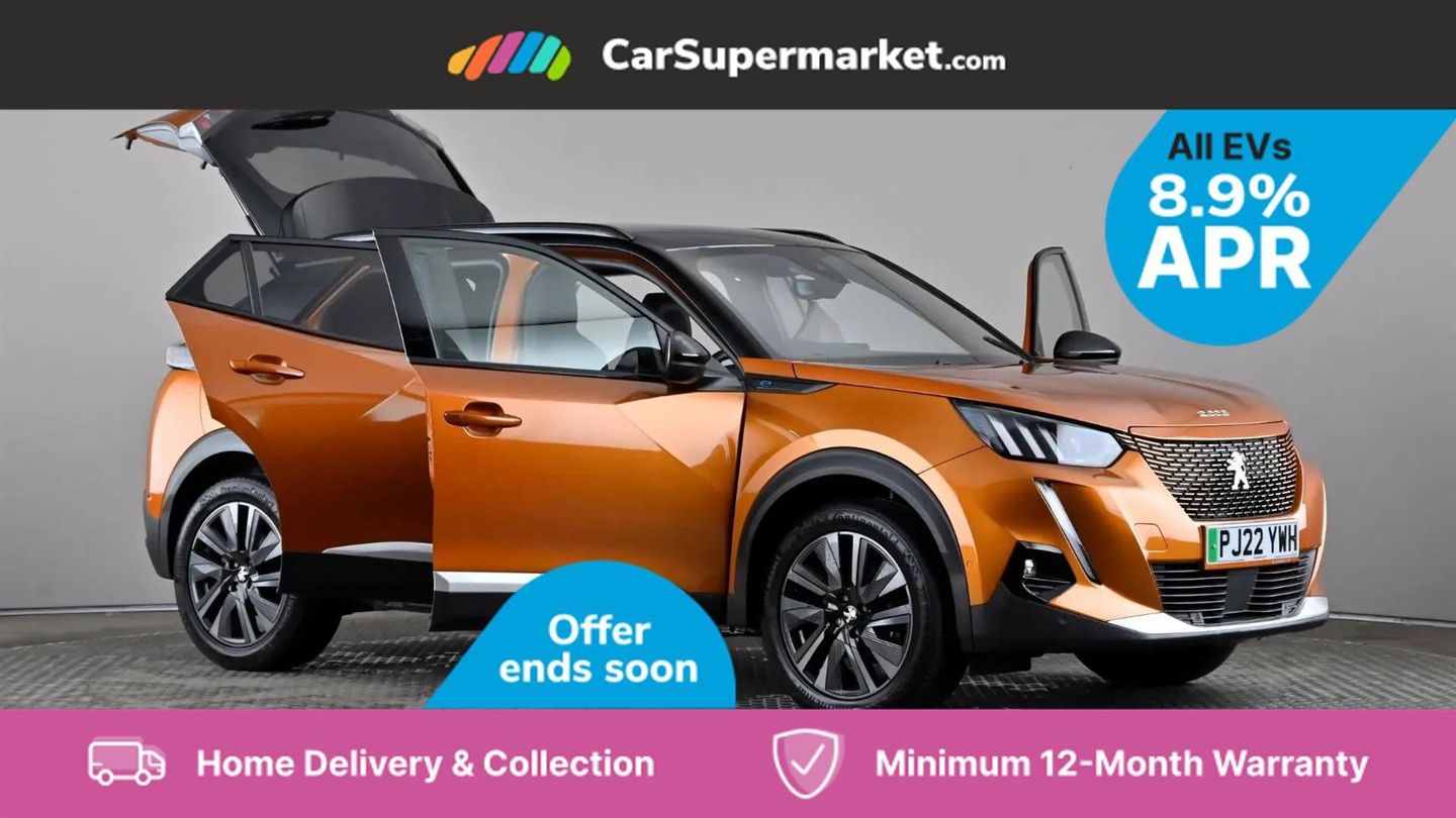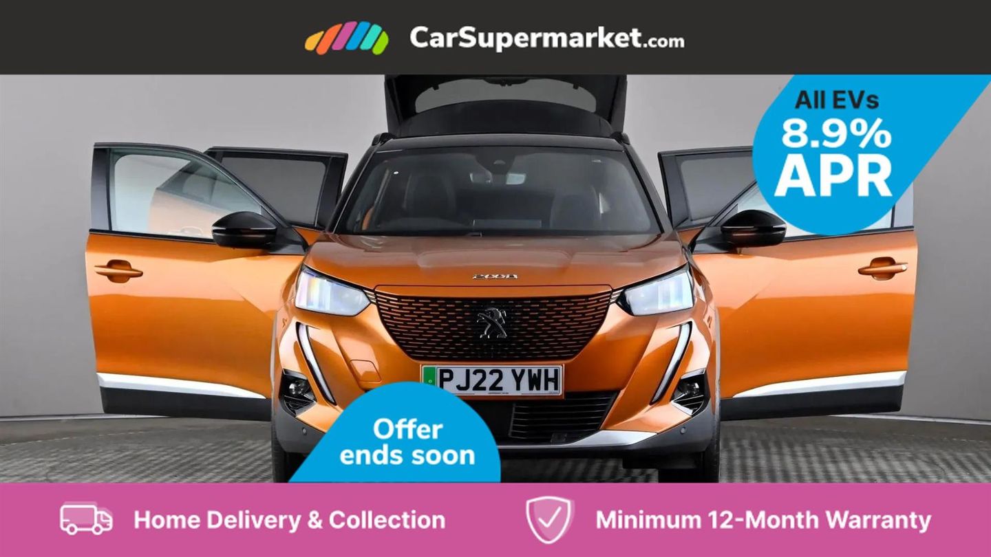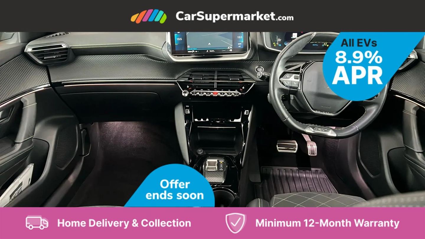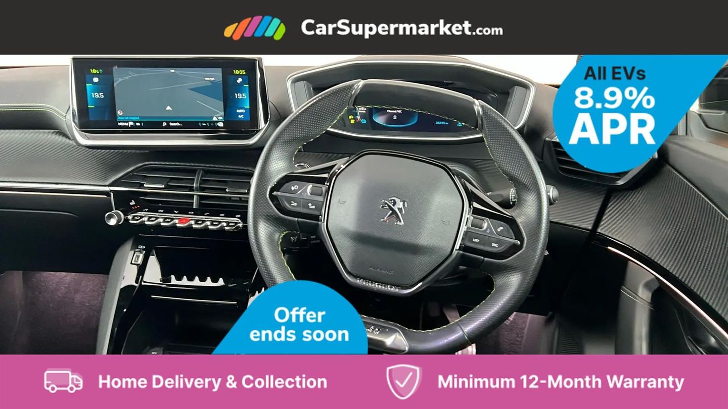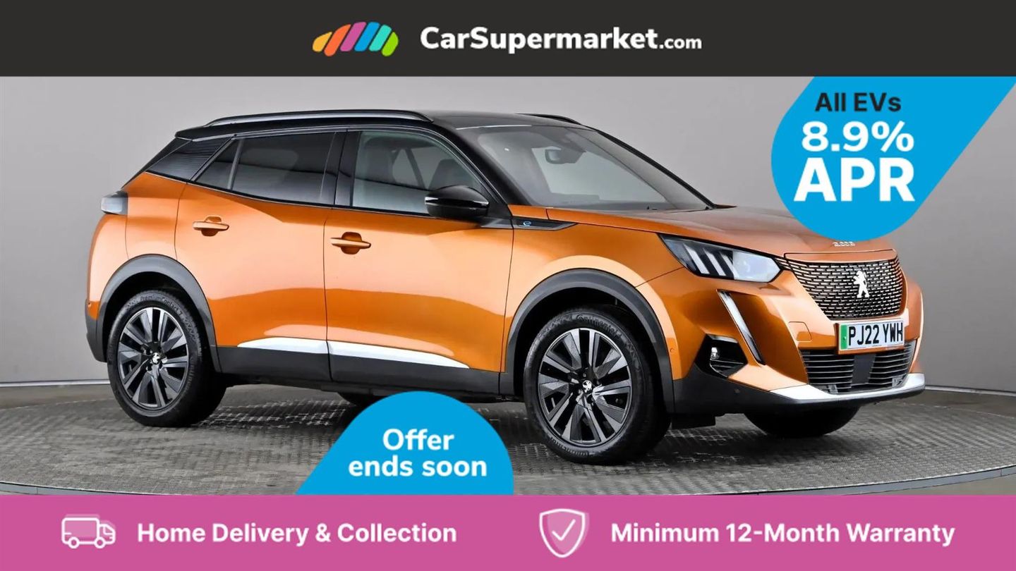 Blind Spot Monitoring, Bluetooth, Sat Nav, Apple CarPlay, Android Auto, Peugeot i-Cockpit, Keyless Entry, 18" Alloy Wheels;This 2022 Peugeot E-2008 GT Premium, with only one owner and a full service history up to 32,274 miles in May 2025, offers a compelling electric driving experience. This stylish SUV boasts a 50 kWh battery providing a maximum range of 212 miles when new, and benefits from a MOT valid until May 2026. Key features include Bluetooth for seamless phone connectivity and full LED headlights with Smartbeam Assist for enhanced visibility. The convenience of this electric Peugeot is further highlighted by its charging capabilities. A full charge at home using a 7kW charger takes approximately 7 hours and 30 minutes, ideal for overnight top ups. For faster charging on the go, it can reach 80% capacity in just 30 minutes from empty at a public charging station. These attributes demonstrate the E-2008 GT Premium's suitability for both daily commutes and longer journeys, offering a practical and modern approach to motoring.