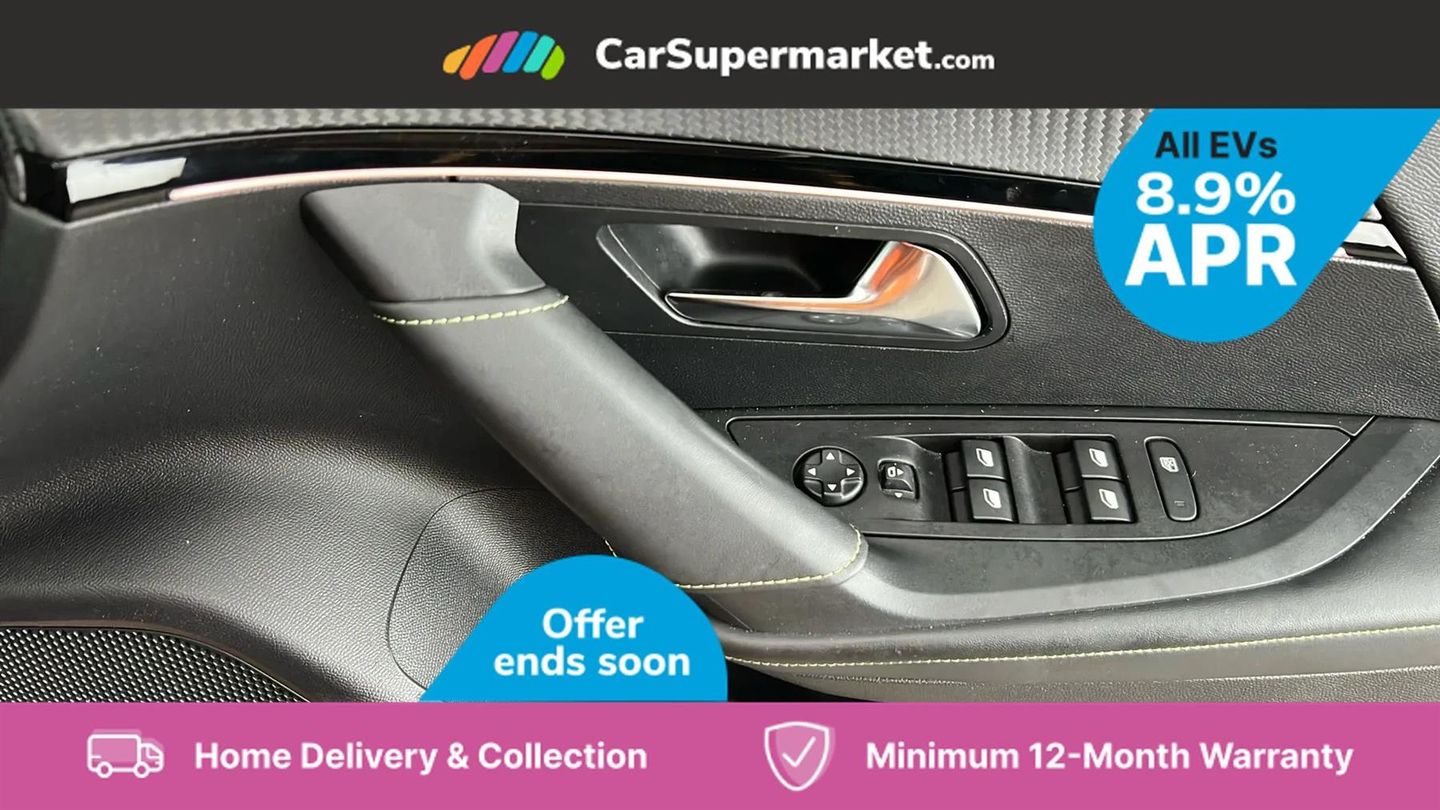 Blind spot monitoring,Bluetooth telephone facility,Connected 3D navigation,Driver attention warning,e-Toggle driving selector,Exterior temperature indicator with ice warning,Lane keep assist,Mirror screen with mirror link, apple carplay and android auto,Multi function trip computer,PEUGEOT i-Cockpit with 10" capacitive colour touchscreen,PEUGEOT i-Cockpit with compact steering wheel,PEUGEOT i-Cockpit with configurable 3D headup instrument panel,PEUGEOT SOS and assistance,Smart phone docking station,Speed limit recognition and recommendation,Visio Park 1 with 180 degree Colour reversing camera,7 kW monophase on board charger,Mode 3 type 2 cable for wallbox charging,2 front USB socket with USB-C,2 USB sockets in rear,6 speakers radio with mp3 compatible,DAB Radio (Digital Audio Broadcasting),Voice recognition for radio, navigation and telephony features,2 X Rear number plate lights,Acoustic windscreen,Automatic front windscreen wipers,Automatic hazard light activation upon heavy brake application,Black diamond roof,Black front wing trim with gloss black detail and e-monogram,Body coloured exterior door handles,Chrome Lion Badge front and rear,Dark tinted rear side and tailgate windows,Diamond black mirror shells,Diamond black rear spoiler,Electric, heated, and power folding door mirrors,Frameless electrochrome interior rear view mirror,Front bumper - Silver lower trim,Full LED headlights with smartbeam assist,Gloss black finish on B pillar,Gloss black longitudinal roof rails,Gloss black rear cluster connecting strip,Gloss black roof bars,Gloss black window surround,GT model designation badging on tailgate,Headlights left on audible warning,LED daytime running lights with 3 claw headlight with distinctive tooth design,LED front fog lamps with remote cornering function,LED side indicator lights integrated into door mirrors,LED third brake light,Model designation badges front and rear,One touch electric front/rear windows with pinch protection,Radiator grille - body colour chequered and gloss black edge trim,Radiator grille - colour coded top edge trim,Rear full LED 3D peugeot signature claw effect lights with daylight function,Rear reversing lights,Rear side wing doors,Rear windscreen wiper triggered automatically in reverse gear,Stainless steel door sill scuff plates,Tailgate with heated rear windscreen and wiper blade,Variable front intermittent wipers,Welcome lighting,Wheel arch extensions,1/3 to 2/3 split folding rear seats,12v power outlet - front,12V socket,3 seat bench in 2nd row,8 Colour personalisable ambient lighting,Aluminium pedals,Automatic air conditioning with pollen and active carbon filter,Central front armrest with storage compartment,Driver and front passenger sport seats,Driver seat manual adjustment - height, longitudinal and back rest angle,Electric power steering with reach and rake adjustable steering column,Front centre armrest,Front LED interior light with 2 reading spotlights and rear interior light with timer,Front passenger seat manual adjustment - height, longitudinal and back rest angle,High centre console,ISOFIX child seat mounting points on passenger seat,Lime green contrast stitching to front centre console, door panels and dashboard facia,Mistral full-grain perforated leather steering wheel with Lime Green stitch detail and satin chrome 'GT' emblem,Modular boot floor,Multifunction steering wheel,Pre heating function,Roof lining - Mistral black,Seatbelt unfastened on the move audible and visual alert for front and rear seats,Single front passenger seat,Switch for Push Button Start finished in black with chrome surround,Tri material alcantara/cloth upholstery,Drive assist Plus pack - 2008,Visibility pack - 2008,2x 2nd row ISOFIX child seat mountings,ABS (Anti-lock Braking System) with EBD (Electronic Brakeforce Distribution) and EBA (Emergency Braking Assistance),Acoustic vehicle alerting system,Active safety brake with night function/cyclists/pedestrians,Adaptive driver and front passenger airbags with passenger airbag deactivation function,Brake energy regeneration,Child locking functionality on rear doors,Driver/front passenger side airbags,Electric parking brake,ESP (Electronic Stability Program) + Hill Start Assist,Front and rear curtain airbags,Front and rear disc brakes,Front and rear three-point retractable seatbelts, with force limiters,Front optimised safety headrests and rear retractable headrests (x3), height adjustable,Tyre pressure sensor,Alarm system with anti-lift sensor,Automatic door locking when moving off,Deadlocks,Electronic code immobiliser,Exterior door lock x1 (Left-hand or passenger’s side),Peugeot Open and Go (keyless entry and push button start),Remote central locking,Carbon effect Dashboard, front and rear door panel finish,18" Evissa diamond cut alloy wheels,Tyre inflation kit