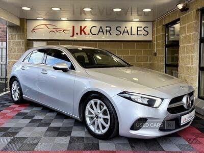 7" colour screen in instrument panel, 7" tablet style colour display, Active lane keep assist, Attention assist, Bluetooth interface for hands free telephone, Bulb failure indicator, Cruise control + speed limiter, Direct steering, DYNAMIC SELECT with a choice of driving modes (ECO, Comfort, Sport, Sport+ and Individual), External temperature gauge, HDD Navigation system, Low fluid warning light, Mercedes connect me with remote online services, Radio aerial integrated into roof spoiler, Reversing camera, Service indicator (ASSYST PLUS), Speed sensitive power steering, Stop/start system, Trip computer, Voice control system, Warning lamp for direction indicators, 2 USB ports in centre console, DAB Digital radio, MBUX Multimedia system including digital instrument cluster and phone mirroring, Adaptive brake lights, Body colour bumpers, Body colour door handles, Body colour side skirt, Body coloured door mirrors, Chrome beltline, Chrome weather strip, Diamond radiator grille with black pins with one louvre in silver + chrome insert, Electric adjustable heated door mirrors, Electric front windows, Electric rear windows, Headlamp assist, Heated rear window with timer, High level third brake light, LED daytime running lights, LED Headlights, LED rear lights, Rain sensor windscreen wipers, Rear fog lights, Rear wiper, Twin Trapezoidal tailpipes, 1/3 to 2/3 split folding rear seats, 12V socket, 3 spoke leather multifunction sports steering wheel, Adjustable head restraints, Artico man-made leather upholstery, Auto Mercedes-Benz child seat recognition sensor, Black headlining, Controller on centre console with chrome surround, Dual zone automatic climate control, Exit lights, Floor mats, Footwell lights, Front and rear reading lights, Front centre armrest with storage compartment, Front door sills with Mercedes benz lettering, Front head restraints, Front seat backs luggage nets, Gearshift paddles on steering wheel, Height adjustable front seats, Height/reach adjustable steering column, Illuminated cup holders, Illuminated glovebox, Illuminated storage compartment, Interior door handle illumination, Isofix rear child seat preparation, Load securing rings in luggage compartment, Luggage compartment cover, Oddments tray lighting, Reading lights, Rear head restraints, Storage compartment under load area floor, Sunvisors with illuminated vanity mirrors, touchpad, Twin front cupholders, Seat comfort pack - A Class, 3 rear 3 point seatbelts, ABS with Brake Assist, Active bonnet, Child proof door locks, Crash responsive emergency lighting, Drivers knee airbag, Dual stage Driver/Passenger Airbags, Electronic parking brake, ESP with ASR, Front and rear seatbelt reminder, Front head airbags, Front passenger seat occupancy sensor, Front side airbags, Hill start assist, Tyre pressure monitoring system, Warning triangle and first aid kit, Window airbags, Alarm system/interior protection/immobiliser, Keyless ignition, Remote central locking, Lowered comfort suspension, Carbon fibre interior trim finishers, Chrome air vent surrounds, 17" 10 spoke light alloy wheels painted in vanadium silver, Tirefit sealant with electric air pump