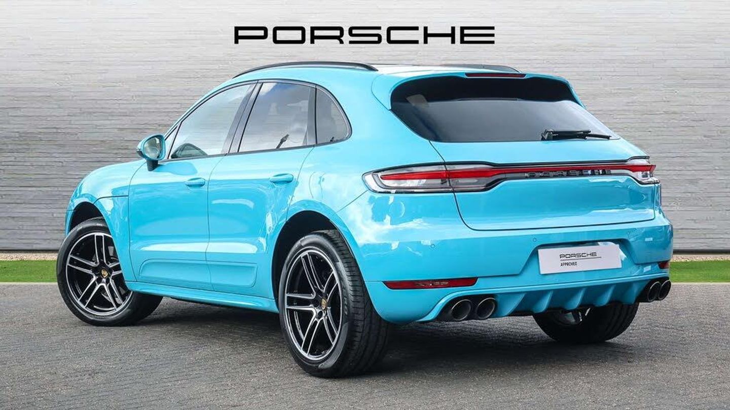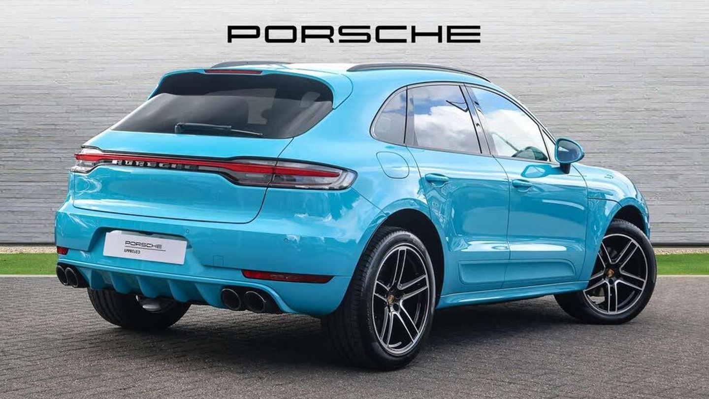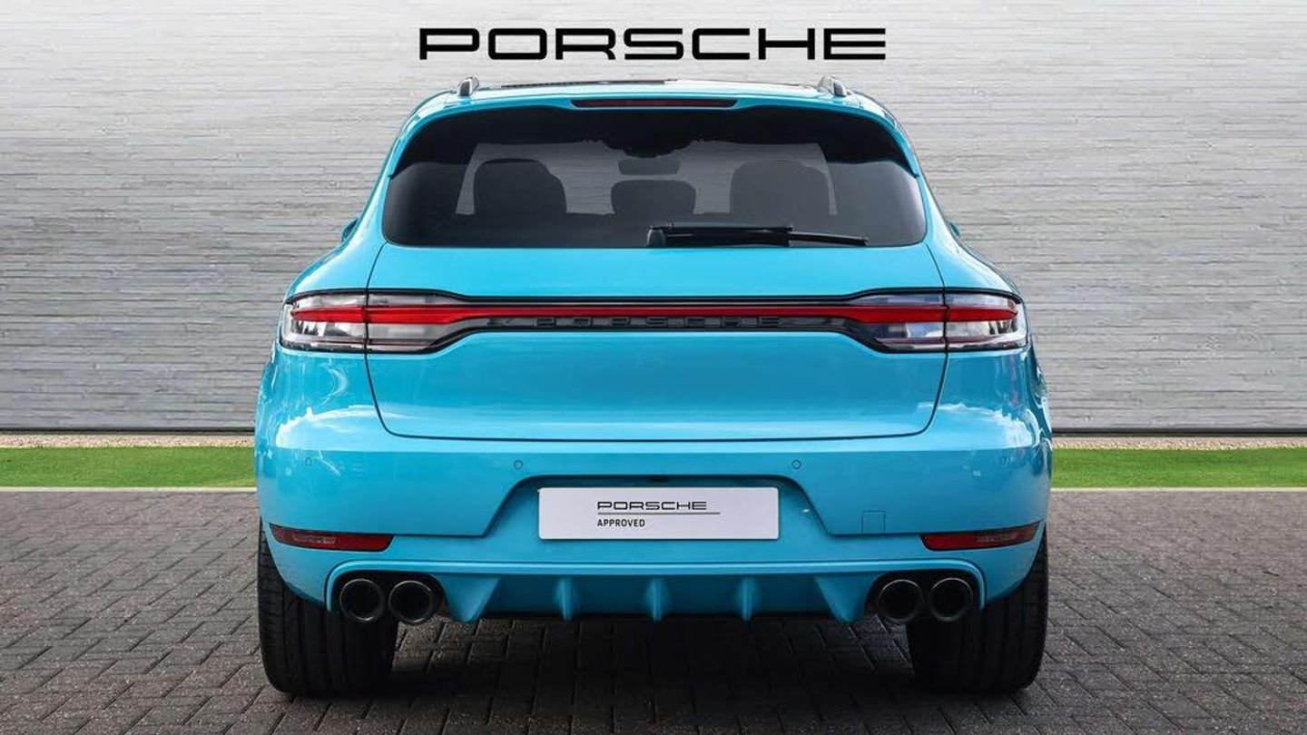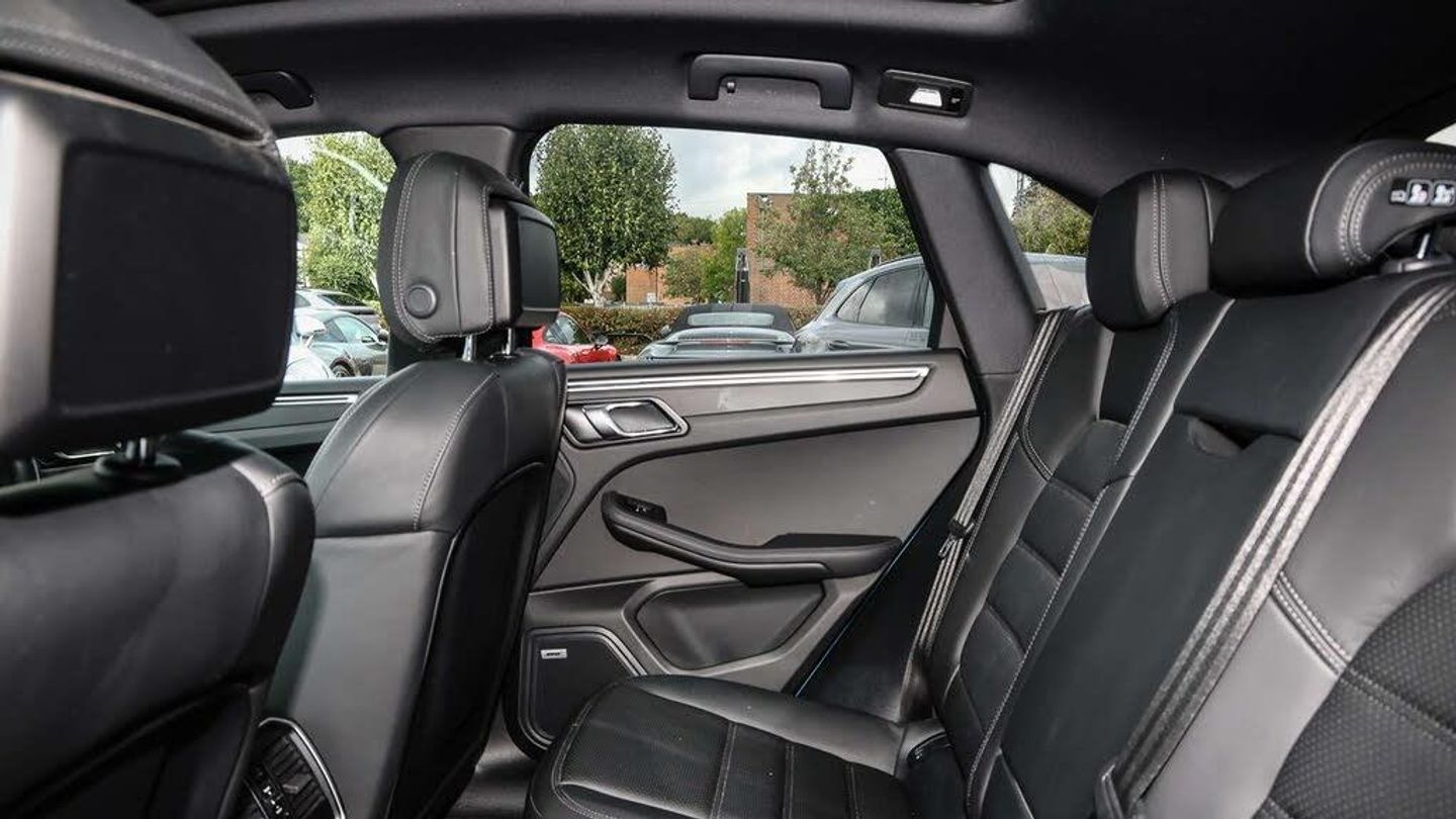 Features:Panoramic glass roof (3FU), Roof rails in aluminium, painted in black (high-gloss) (3S5), SportDesign package with SportDesign sideskirts (2D1), Side window trims in black (high-gloss) (QJ4), Sideblades painted in exterior colour (6H1), 'PORSCHE' logo painted in Black (matt) including deletion of model designation (0NT), Sports tailpipes in black (0P6), 20-inch Macan Turbo wheels painted in Jet Black Metallic (53U), Compass display on dashboard (8LE), Adaptive Sports Seats in Front (18-Way, electric) (Q1J), Porsche Crest on front headrests (3J7), BOSE® Surround Sound System (9VL), LED main headlights including Porsche Dynamic Light System Plus (PDLS Plus) (8IU), Privacy glass (VW1), ParkAssist (front and rear) including reversing camera (7X8)