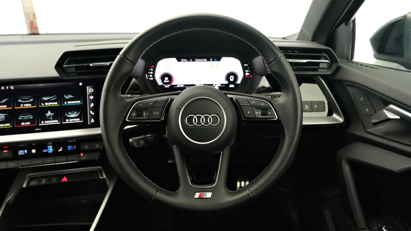 Reserve Online,MMI Navigation Plus with high resolution 10.1" colour touch screen display,Audi smartphone interface,2xUSB-C connection with data and charging functions,DAB Digital radio,3 spoke leather multifunction steering wheel with paddle shift,Audi Virtual Cockpit - 10.25" digital and colour instrument cluster,Camera based traffic sign recognition,Light and rain sensors,LED headlights with LED rear lights and dynamic rear indicators,Auto dimming frameless rear view mirror,Tyre pressure loss indicator,Sports suspension,Dual zone electronic climate control,4 way electrically adjustable lumbar support for driver and front passenger,LED interior lighting pack - A3 Sportback