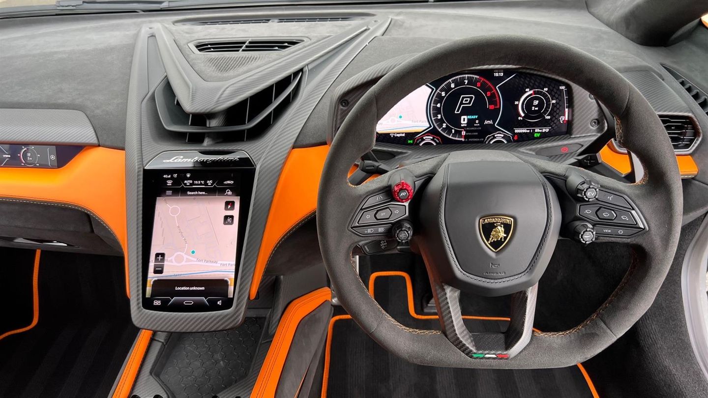 21"/22" Forged Altanero Alloys in Black,Passenger Display,Rear View Camera,Lower Exterior Carbon Package,Upper Exterior Carbon Package,Interior Details Carbon Package,Aerodynamic Door in Carbon,Seat belts - Nero Ade,Embroidered Lamborghini Logo on Headrest,Corsa Tex Pack in Contrast Colour for Trim,Contrast Interior Colour in Arancio Leonis,Nero Lucido Brake Calipers,Exhaust Tailpipes in Matt Black,Lamborghini Rear Logo in Black High Gloss