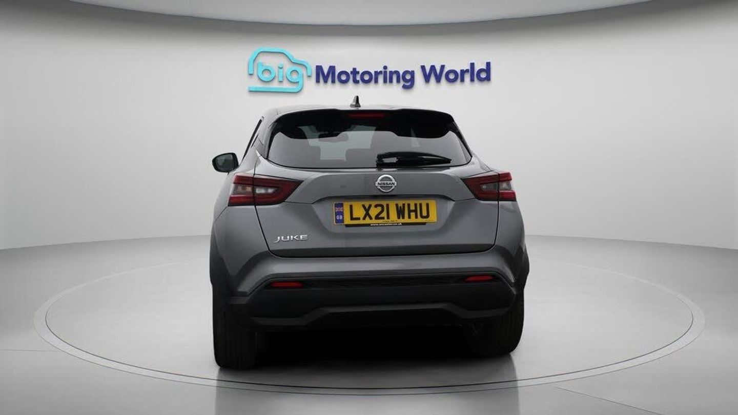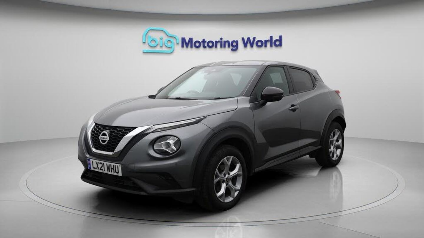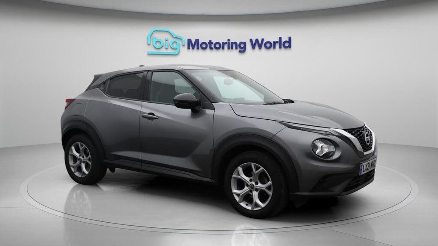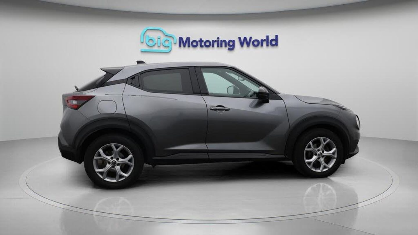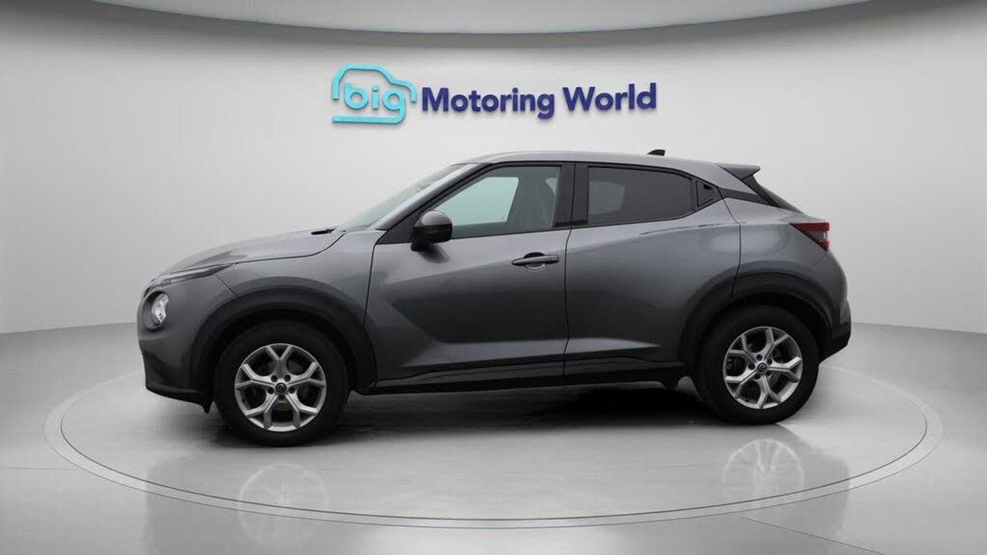 Apple CarPlay,Lane Assist-Our Nissan Juke is finished in Grey. Specification includes a range of fantastic features including Apple CarPlay, Lane Assist, Android Auto, Satellite Navigation, Privacy Glass, Rear View Camera, Bluetooth, Parking Sensors, Ambient Lighting, Flat Bottom Steering Wheel Specification information is supplied by CAPHPI and may vary to the actual car. This data does not form any part of a buying contact. Please check specification prior to purchase in-store. The MOT is valid until May 2026, visit bigmotoringworld.co.uk for more photos, a 360 tour, service history and a free HPI report.Were BIG on peace of mind and this Grey Nissan Juke has completed our comprehensive 200 point inspection and passed all checks. Its ready for you to drive away with immediate collection in-store. We include a 90-day warranty as standard plus an option to extend for up to 3 years.Reserve this car exclusively for you, safely and securely at bigmotoringworld.co.uk, with a fully refundable £99 deposit. Test drive before you buy, with no commitment, no hassle and a completely haggle free experience. Still searching and want to see thousands more cars? We are BIG on choice with over 8000 cars to choose from.Visit our award winning web site bigmotoringworld.co.uk.Were Big Motoring World and were BIG on what matters to you.