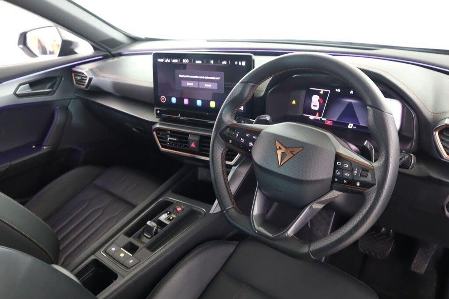 12V Socket, 19in Alloy Wheels - Exclusive Machined Sport - Matt Black and Silver, 60-40 Rear Seats with Central Armrest and Mechanical Seat Release, ABS - Anti-Lock Braking System, Airbag on Driver and Front Passenger Side with Front Passenger Airbag Deactivation, Anti-Theft Alarm, Auto Dimming Rear View Mirror, Breakdown Kit, CUPRA Connect - Safety - Service - Remote and Online, Charging Cable - Mode 2 - 10amp, Charging Cable - Mode 3 - 16amp, Copper and Aluminium Interior Detailing, Daytime Running Lights with Automatic Headlight Control and Coming-Leaving Home Lights, Digital Cockpit and Configurable Dashboard, Driver Alert System, Driving Profile Selection, Dynamic Headlight Range Control, Electric Window - Front, Electrically Adjustable - Folding and Heated Door Mirrors with Memory Function, Electronic Locking Differential with Dynamic Traction Support, Electronic Parking Brake, Forward Collision Warning with Automatic Braking, Front Centre Armrest, Front Fog Lights with Cornering Function, Front Side Curtain Airbag, Front and Rear Head Restraints, Gloss Black Roof Rails and Window Surrounds, Headlining - Black, ISOFIX, Illuminated Interior Front Door Sills, Illuminated Sunvisor with Mirror, Kessy - Keyless Entry and Start, LED Headlight, LED Taillights with Dynamic Indicator, Lane Assist, Leather Multi-function Steering Wheel - Heated with Gear Shift Paddles, Locking Wheel Bolts, Navigation System, Park Assist - including Front and Rear Sensors, Power Steering, Predictive Adaptive Cruise Control with Speed Limiter, Rain Sensing Wipers, Reading Lights - 2x Front - 2x Rear, Rear Diffuser with Black Simulated Exhaust Pipes, Rear View Camera, Safety and Driving Pack M, Seat Belt Reminder, Smart Wraparound Interior Lighting, Three Zone Climate Control with Control Panel in the Rear, Tinted Rear Windows, Tyre Pressure Monitoring System, USB Type C x4 - x2 Front and x2 Rear, Welcome Lights, Wireless Phone Charger