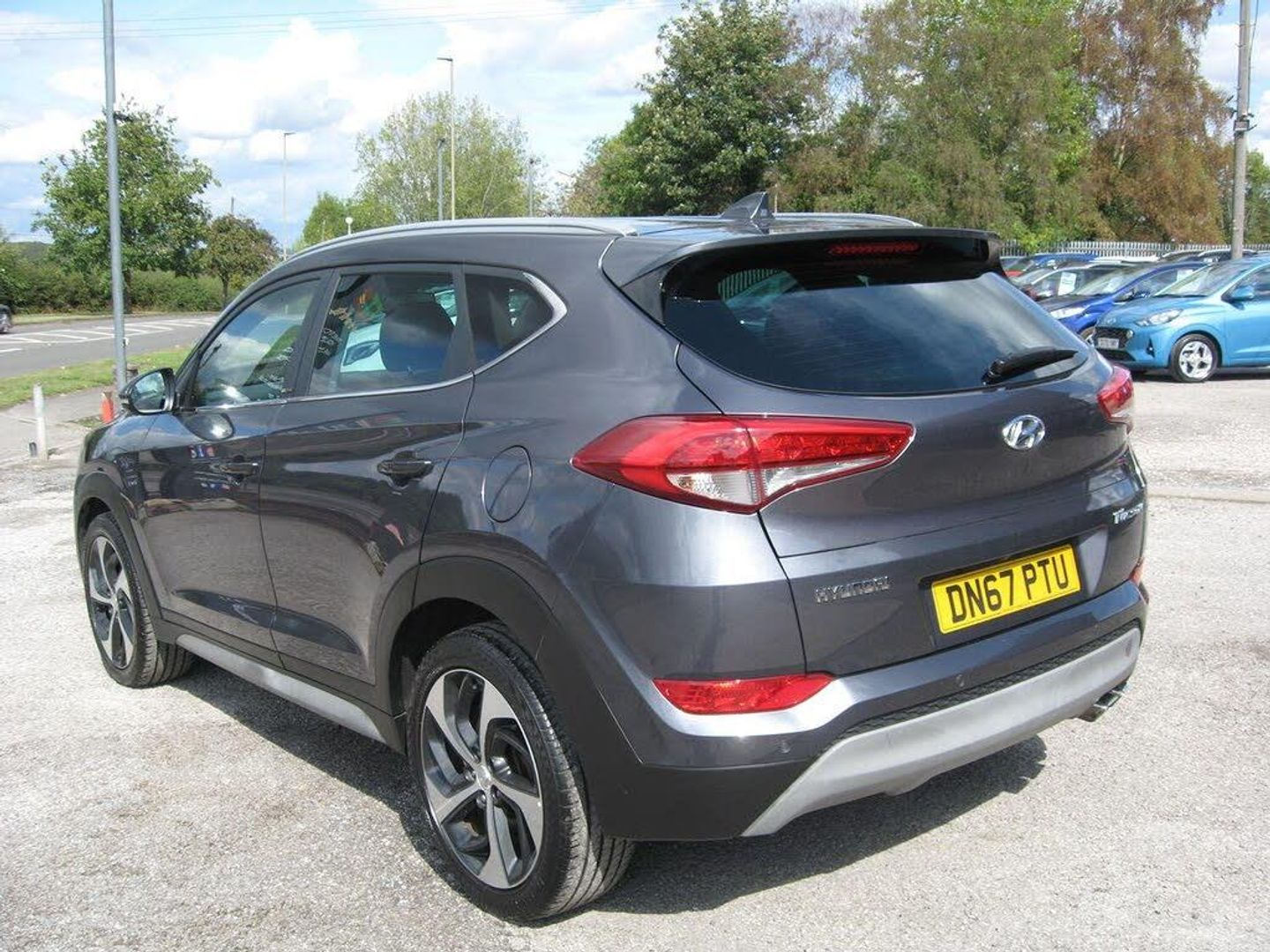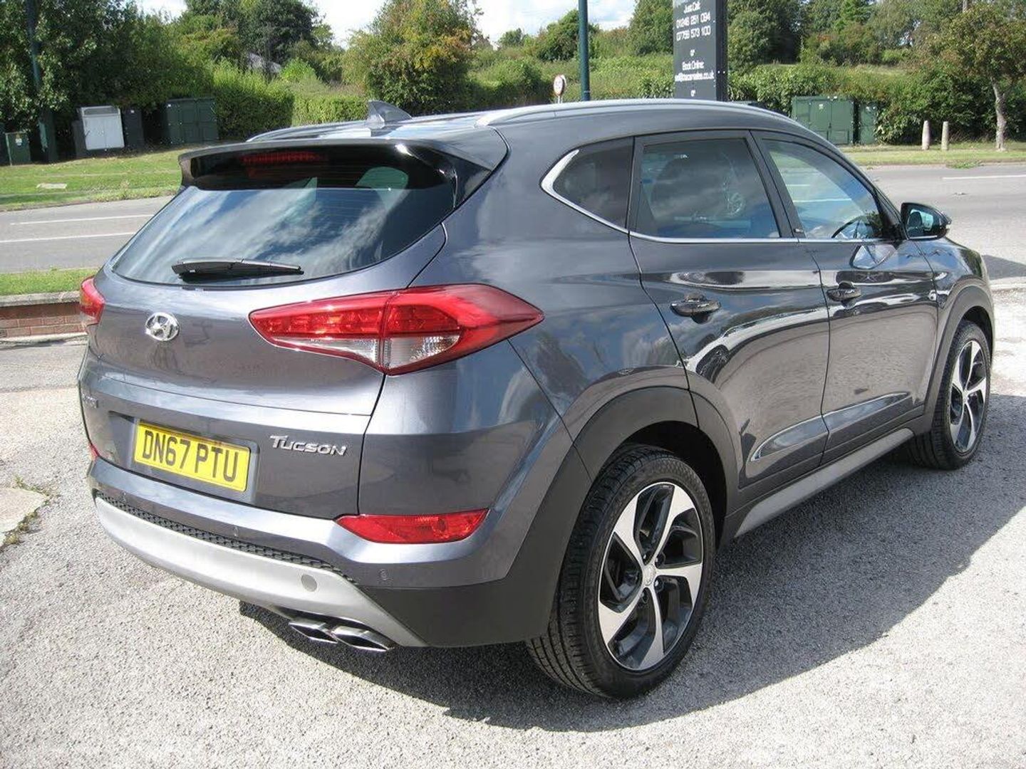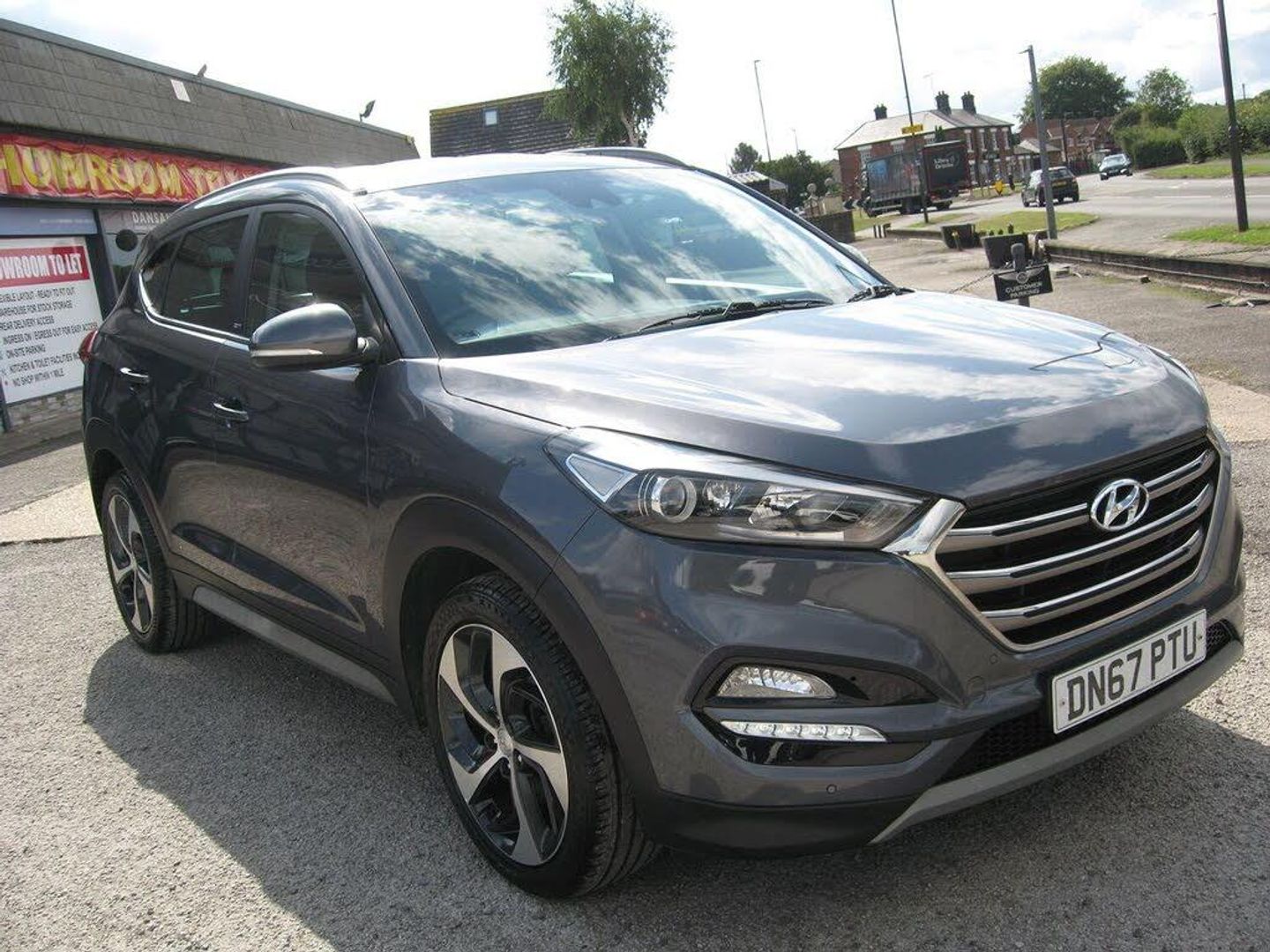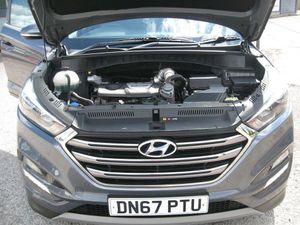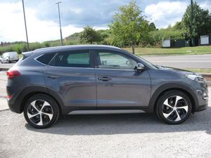 FINANCE ARRANGED, FREE 6 MONTHS WARRANTY T+CS APPLY. P/X WELCOME. LOW MILEAGE AUTOMATIC TUCSON SPORT EDITION with 7 SERVICES, LADY OWNED SINCE 2020. 2 KEYS, MOT 26-08-2026. Finished in metallic grey with 19 alloy wheels, daytime running lights, tinted rear windows, front and rear park sensors, front fog lights, silver colour roof rails, full black leather upholstery with heated and electric front height adjustable seats, driver seat lumbar adjuster, front and rear arm rests, touch screen monitor with sat nav, reverse camera, blue tooth connectivity, DAB radio, media connectivity via aux and usb sockets, dual zone climate control, air conditioning, cruise control, front and rear electric windows, electric retractable door mirrors, multi function steering wheel, trip computer, auto lights and wipers, remote central locking, power steering, abs, traction control, lane departure warning, hill assist control, tyre pressure monitor, front and side airbags, iso fix rear seats, runs and drives very well, must be seen. PART EXCHANGE, FINANCE AVAILABLE AND ARRANGED.