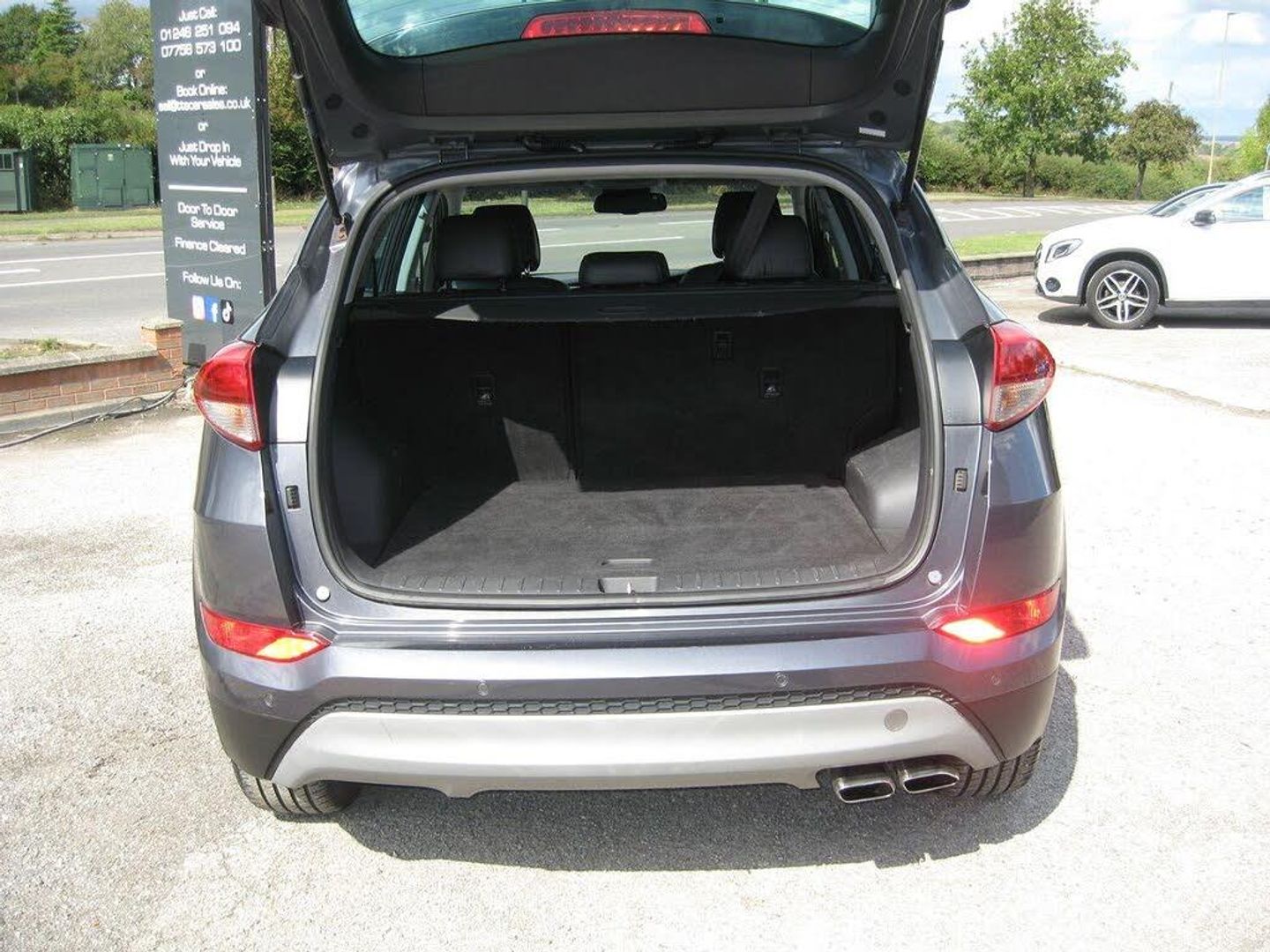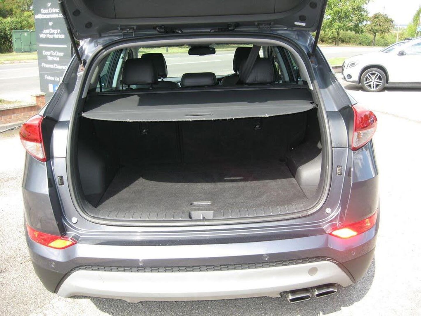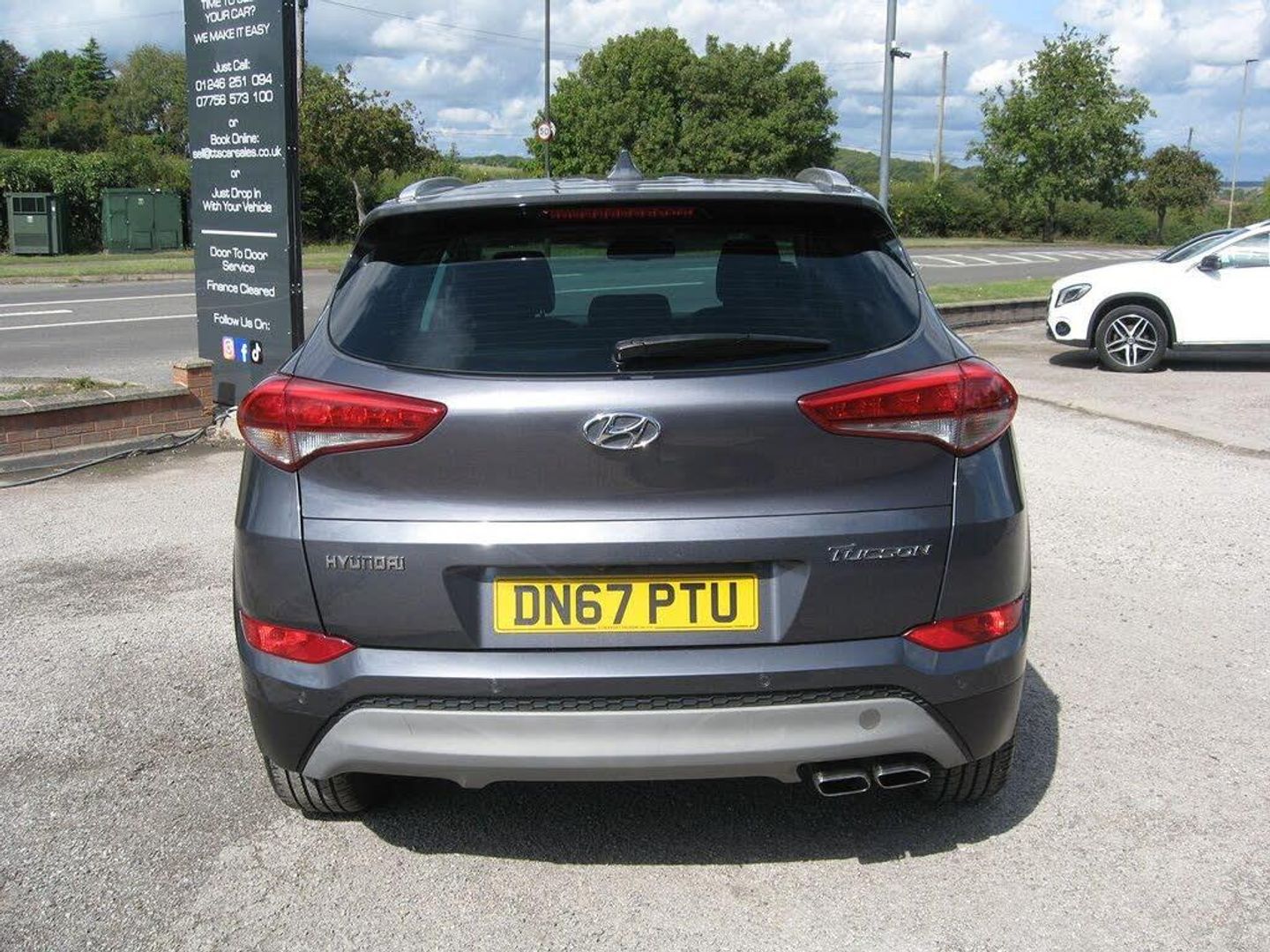 FINANCE ARRANGED, FREE 6 MONTHS WARRANTY T+CS APPLY. P/X WELCOME. LOW MILEAGE AUTOMATIC TUCSON SPORT EDITION with 7 SERVICES, LADY OWNED SINCE 2020. 2 KEYS, MOT 26-08-2026. Finished in metallic grey with 19 alloy wheels, daytime running lights, tinted rear windows, front and rear park sensors, front fog lights, silver colour roof rails, full black leather upholstery with heated and electric front height adjustable seats, driver seat lumbar adjuster, front and rear arm rests, touch screen monitor with sat nav, reverse camera, blue tooth connectivity, DAB radio, media connectivity via aux and usb sockets, dual zone climate control, air conditioning, cruise control, front and rear electric windows, electric retractable door mirrors, multi function steering wheel, trip computer, auto lights and wipers, remote central locking, power steering, abs, traction control, lane departure warning, hill assist control, tyre pressure monitor, front and side airbags, iso fix rear seats, runs and drives very well, must be seen. PART EXCHANGE, FINANCE AVAILABLE AND ARRANGED.