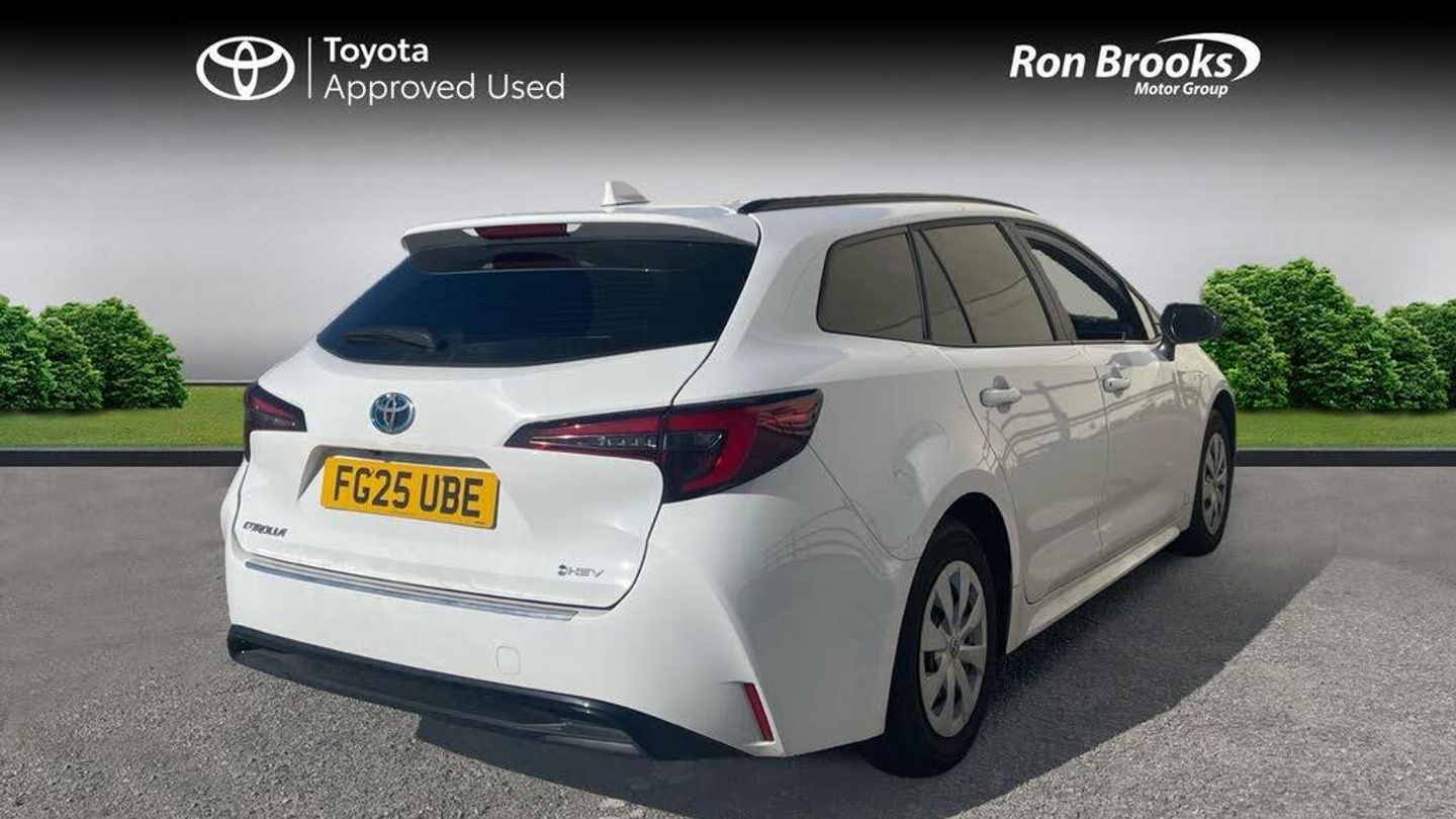 This 2025 Toyota Corolla is a Toyota manufacturer approved vehicle with a full service history and only one owner from new, offering peace of mind. This 1.8 VVT-h CVT Euro 6 (s/s) 5dr model boasts a 1.8L Petrol Hybrid Engine, combining efficiency with performance. Inside, you'll find an 8in Multimedia Display with DAB and Bluetooth, along with smartphone integration for Apple CarPlay and Android Auto, keeping you connected on the go. Enjoy added comfort with heated driver and front passenger seats, and benefit from the convenience of a reversing camera with static guide lines for easier parking.The impressive 138 bhp engine power indicates this Corolla offers a more dynamic driving experience compared to other vehicles in its class. Furthermore, the substantial cargo volume of 1606 litres highlights its practicality, providing ample space for all your needs. This vehicle also comes with a 12 month warranty, further enhancing its appeal.-Toyota Approved-FSH-1 Owner-Ron Brooks Toyota Used Cars, 145 Point Check, Prepared to Toyota Standards & 1 Year Toyota Warranty