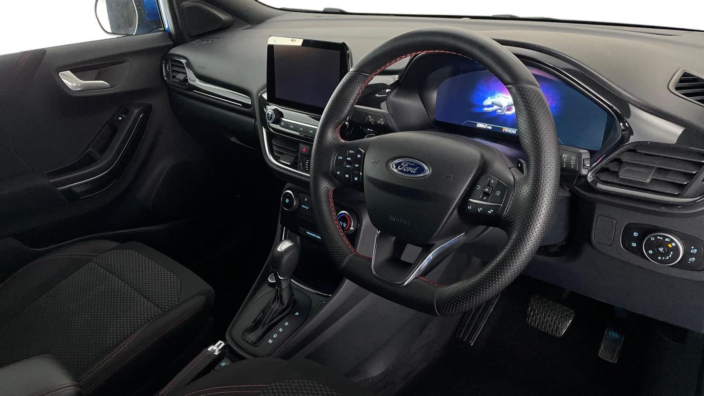 Reserve Online,Ford SYNC 3 navigation pack - Puma,Full digital 12.3" instrument cluster,Projector headlamps with LED day time running lights,Cruise control,Power foldable heated door mirrors with puddle lamps,Quickclear heated windscreen,Tyre pressure monitoring system (TPMS),Automatic rain sensing wipers,Power start button,Manual air conditioning,ST-Line body kit with large rear spoiler wth sports suspension,Ford megabox extended bootspace,Centre console with armrest and stowage