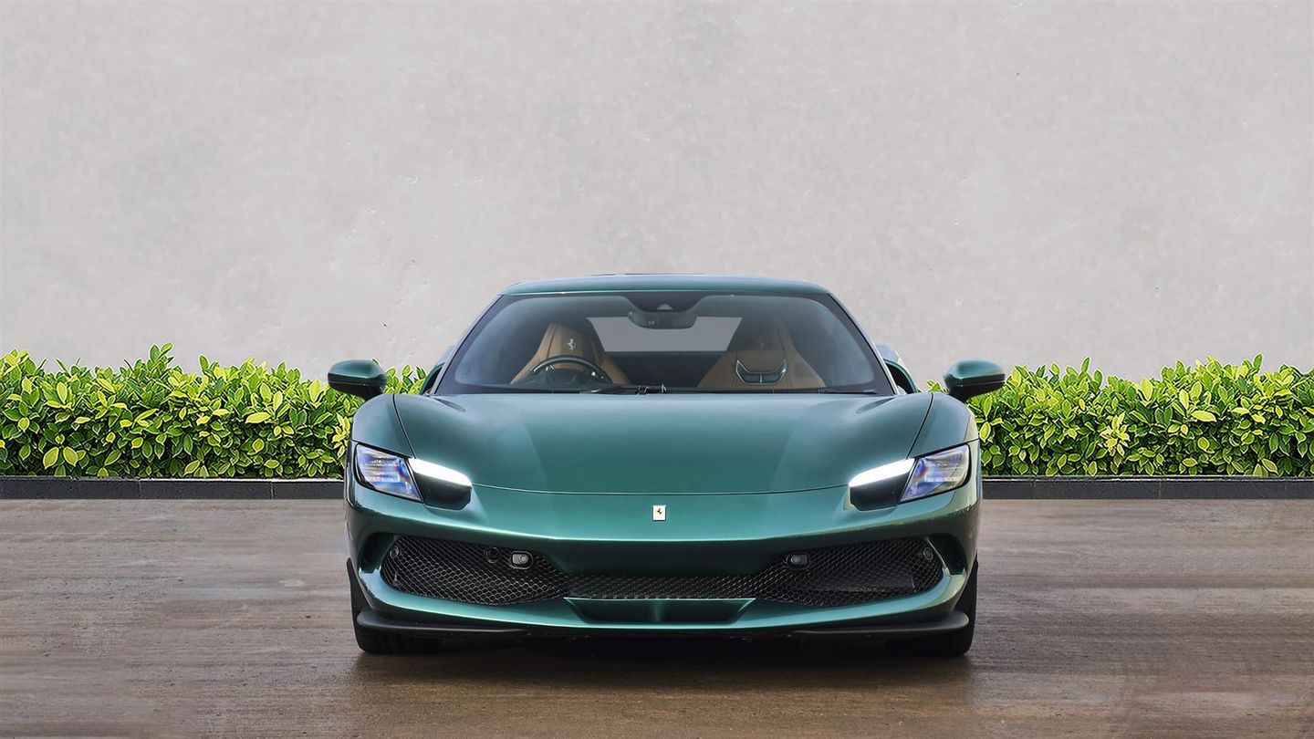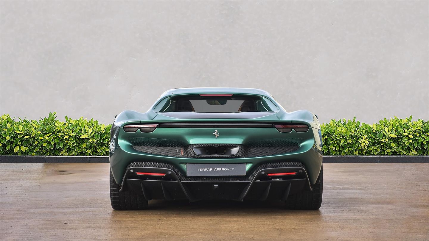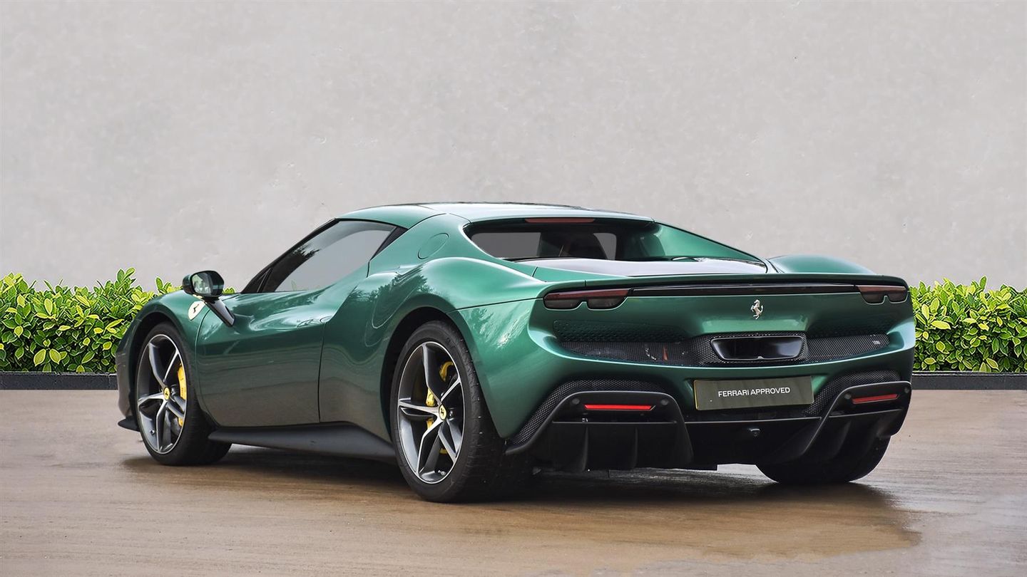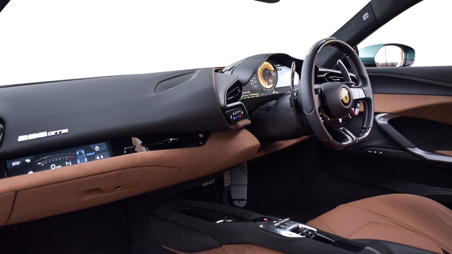 20 Diamond Cut Forged Alloy Wheels,Yellow Brake Calipers,Suspension Lifter,Premium HiFi System,Verde Pino 2 Layer Special Paint,Carbon Fibre Steering Wheel With LED Lights,Carbon Fibre Exterior Sill Kick,Scuderia Ferrari Shields,Titanium Wheel Bolts,Sports Exhaust Pipes,Rear Parking Camera,Front & Rear Parking Sensors,Apple CarPlay,Contrast Stitching Finished In Grigio Chiaro,Cavallino Stitched Onto Headrests Finished In Grigio Chia,Inner Details Finished In Cuoio Leather,Adaptive Headlight System,Electrochromic Exterior Rear View Mirrors,Wireless Smartphone Charger,Navtrak AntiTheft System,Balance Of Ferrari Warranty Until 2027,Balance Of Ferrari Service Plan Until 2030