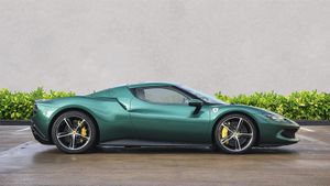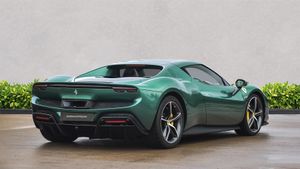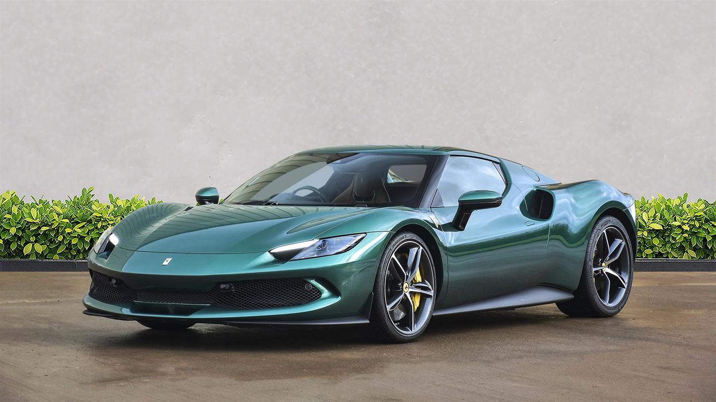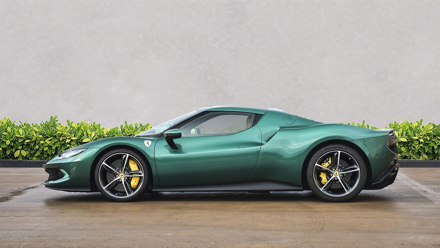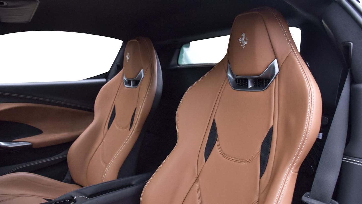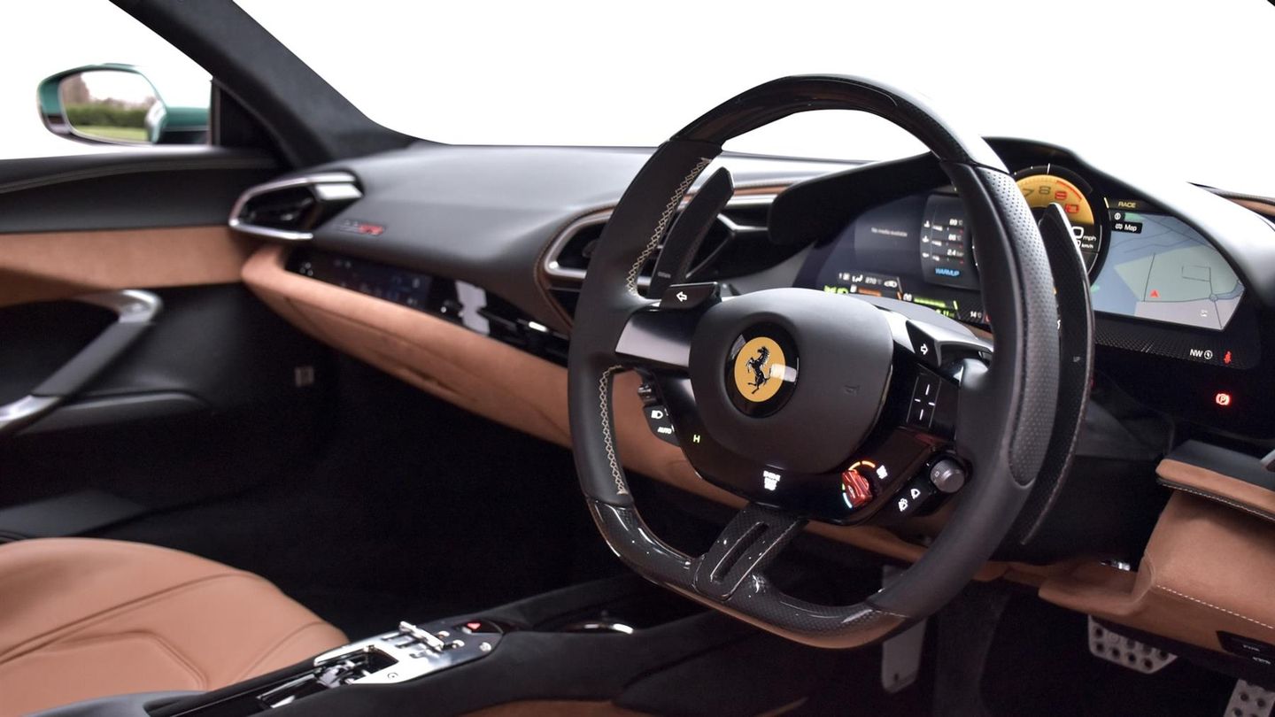 20 Diamond Cut Forged Alloy Wheels,Yellow Brake Calipers,Suspension Lifter,Premium HiFi System,Verde Pino 2 Layer Special Paint,Carbon Fibre Steering Wheel With LED Lights,Carbon Fibre Exterior Sill Kick,Scuderia Ferrari Shields,Titanium Wheel Bolts,Sports Exhaust Pipes,Rear Parking Camera,Front & Rear Parking Sensors,Apple CarPlay,Contrast Stitching Finished In Grigio Chiaro,Cavallino Stitched Onto Headrests Finished In Grigio Chia,Inner Details Finished In Cuoio Leather,Adaptive Headlight System,Electrochromic Exterior Rear View Mirrors,Wireless Smartphone Charger,Navtrak AntiTheft System,Balance Of Ferrari Warranty Until 2027,Balance Of Ferrari Service Plan Until 2030