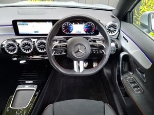 Manufacturer Approved Used, Balance of warranty, 10.25 inch touchscreen central media display, 10.25" Digital instrument cluster display screen, Hey Mercedes Voice activation, AMG body styling - AMG front apron with front splitter and AMG rear apron and visible exhaust tailpipe trim elements, Interior lighting - 64 colour Ambient lighting, LED High Performance headlamps including integral LED daytime running lamps and adaptive highbeam assist, 3 Spoke flat bottom leather multi function steering wheel with perforated leather in grip area, Air conditioning - One zone thermatic automatic climate control with automatically controlled air distribution, Heated front seats, Artico man-made leather/microcut microfibre - Black with contrast top stitching in red, ISOFIX and top tether child seat fixing points in two outer rear seats, Smartphone integration with Apple CarPlay and Android auto, Attention assist, DYNAMIC SELECT with a choice of driving modes (ECO, Comfort, Sport and Individual), 18" AMG 5 twin spoke light alloy wheels,aerodynamically optimised, painted in termolite grey with high sheen finish