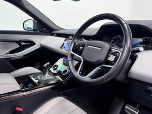 10in Touchscreen, 12-Way Driver and 10-Way Passenger Heated Electric Front Seats with 2-Way Manual Headrests and Rear Centre Armrest, 40-20-40 Folding Rear Seats, ABS - Anti Lock Braking System, ACC - Adaptive Cruise Control, ATPC - All Terrain Progress Control, All Season Tyres, Ambient Interior Lighting, Analogue Dials with Central TFT Display, Android Auto, Apple CarPlay, Approach Lights, Auto-Dimming Interior Rear View Mirror, Automatic Headlights, Bluetooth Connectivity, Body Coloured Roof, Brake Pad Wear Indicator, Bright Metal Pedals, Cabin Lighting, Carpet Mats, Chrome Treadplates, Customer Configurable Autolock, DAB - Digital Audio Broadcast, DSC - Dynamic Stability Control, Driver Condition Monitor, EBA - Emergency Brake Assist, EBD - Electronic Brake-Force Distribution, EPAS - Electronic Power Assisted Steering, ETC - Electronic Traction Control, Efficient Driveline, Electric Parking Brake, Electric Windows with One-Touch Open-Close and Anti-Trap, Emergency Braking, Evoque Badge, Flush Deployable Door Handles, Front and Rear Parking Aid, HDC - Hill Descent Control, Headlining - Ebony Morzine, Heated Electric Power Fold Door Mirrors with Approach Lights and Auto-dimming Driver Side, Heated Rear Window with Timer, Hill Launch Assist, Intrusion Sensor, LED Headlights, Lane Keep Assist, Leather Steering Wheel, Locking Wheel Nuts, Low Traction Launch, Manual Headlight Levelling, Manual Tailgate, Manually Adjustable Steering Column, Online Pack with Data Plan, Overhead Lighting Console, Overhead Stowage for Sunglasses, Passive Front Headrests, Passive Suspension, Pivi Pro - Connected, Power Operated Child Locks, Power Socket Pack 1, Push Button Start, R-Dynamic Exterior Pack, RSC - Roll Stability Control, Rain Sensing Windscreen Wipers, Rear Air Vents, Rear Animated Directional Indicators, Rear Centre Headrest, Rear Collision Monitor, Rear Fog Lights, Rear ISOFIX, Rear View Camera, Remote, Satin Chrome Gearshift Paddles, Seat Belt Reminder, Six Airbags, Sound System, Standard Roof, Sun Visors - Illuminated Vanity Mirrors, TPMS - Tyre Pressure Monitoring System, TVBB - Torque Vectoring by Braking, Tailgate Spoiler, Terrain Response 2, Traffic Sign Recognition and Adaptive Speed Limiter, Trim Finish - Gradated Linear Dark Aluminium, Twin Sliding Front Centre Armrest, Two-Zone Climate Control, Windscreen - Heated, Windscreen Washer Jets - Heated, Wireless Device Charging, Touch Pro Duo, Black Exterior Pack, Electrically Deployable Towbar, Fixed Panoramic Roof Including Powered Blind, Privacy Glass, 18in Alloy Wheels - 5-Split Spoke - Style 5074 - Gloss Sparkle Black, Powered Tailgate, Perforated Windsor Leather - Duo-Tone - Cloud-Ebony with Cloud-Ebony Interior, Portofino Blue