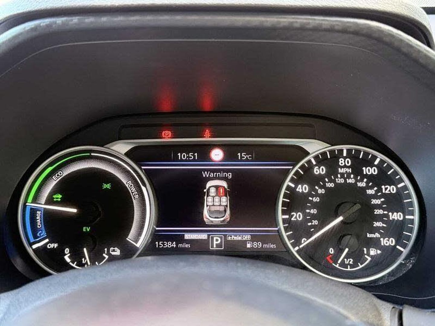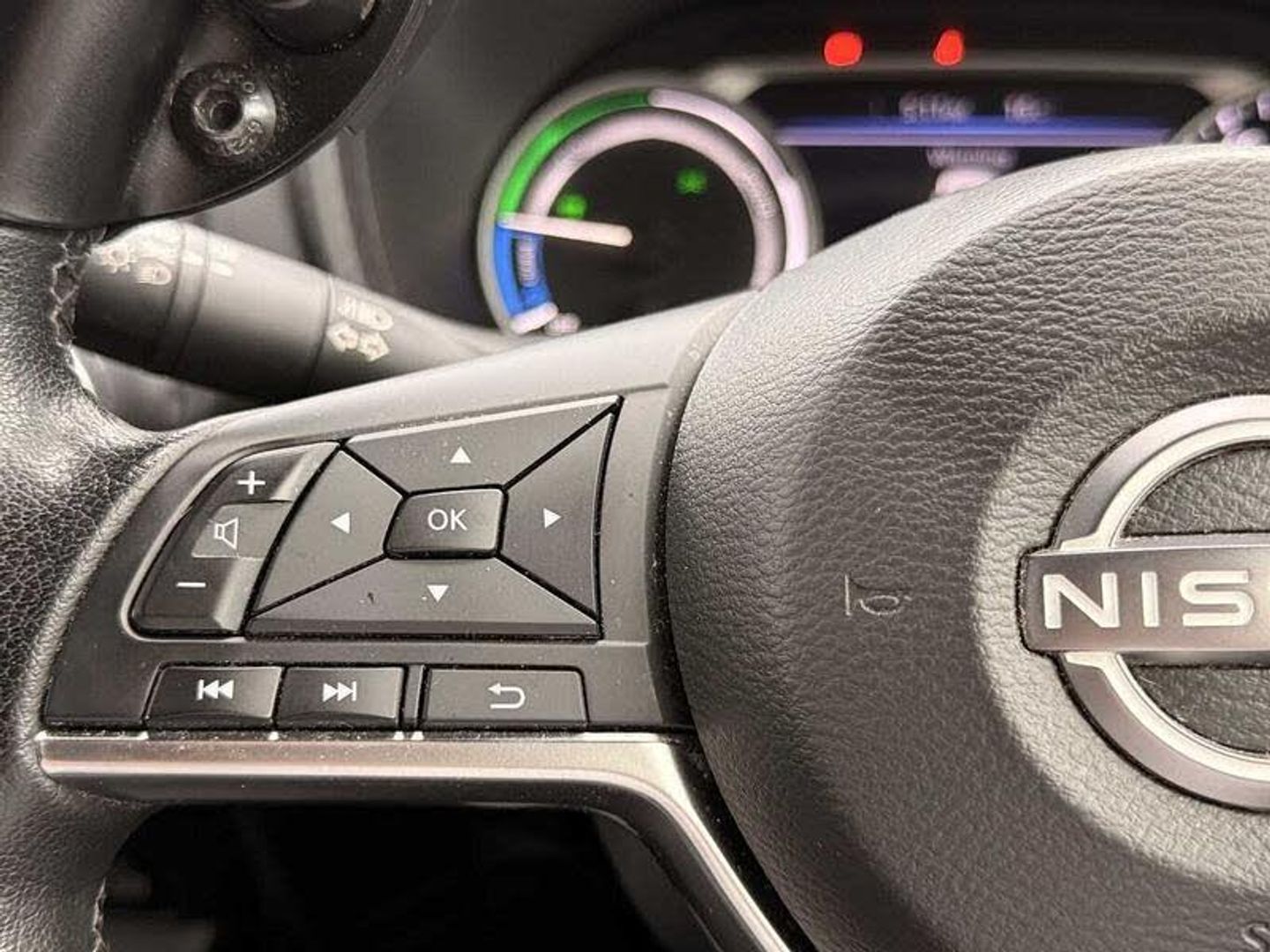 Exterior Features, Metallic paint, Safety, Cruise control + speed limiter, Rear view camera, Pearl black door mirrors, Paint - Metallic, Metallic - Gun Metallic grey, Trim - Cloth, Cloth - Black with black and metallic grey syntech leather inserts, Wheels, 17 inch Two tone alloy wheels, Tyre puncture repair kit, Exterior Features, Front and rear electric window with one touch driver window, Rain sensor windscreen wipers, Rear privacy glass, Rear wiper, Body colour bumpers, Body colour door handles, Rear side wing doors, Shark fin roof antenna in Pearl Black, Auto headlights, Automatic hazard signal with emergency stop signal, Follow me home headlights, High beam assist, LED daytime running lights, LED headlamps, LED rear fog lamp, LED rear lamps, Three blink turn signal, Safety, ABS with EBD and brake assist, Electric handbrake with auto hold function, Electronic Stability Programme (ESP), Hill start assist, Intelligent emergency braking with pedestrian and cyclist recognition, Traction control, VDC Dynamic Vehicle Control, Ventilated rear brake discs, Drive modes select (Eco, normal and sport), Front parking sensor, Intelligent lane intervention, Lane departure warning system, Power Steering, Rear parking sensor, Traffic sign recognition, Auto dimming interior rear view mirror, Electrically adjustable door mirrors with integrated indicators, Heated and auto folding door mirrors, Active ride control, Active Trace Control, Driver and passenger airbags, Driver and passenger side airbags, Front and rear curtain airbags, Height adjustable seatbelts, Rear door child safety locks, Seatbelt reminder for driver/front passenger and rear seats, Single tone horn, Three 3 point rear seatbelts, Tyre pressure monitoring system, Audio / Communications, Voice recognition, 6 speakers, Bluetooth system, USB, Aux-in and 12V socket, DAB Digital radio, Rear console USB port, Driver Convenience, EV mode selector, Miscellaneous, 7 inch full colour TFT screen combimeter, Apple CarPlay and Google Android auto, e-Pedal step, Emergency and breakdown call, Nissan connect 8 inch touch screen entertainment system, Nissan connect nav with TomTom traffic, Nissan connect services and Wifi connection, Outside temperature sensor, Trip computer, Gasoline particulate filter, Interior Features, Automatic climate control, Card holder on driver sunvisor, Cloth upholstery with black and metallic grey syntech leather inserts, Driver side rear coat hanger, Front armrest, Front door pockets with bottle holders, Front/rear passenger grab handles, Grey synthetic leather kneepad, Internal chrome door handles, Leather gearshift knob, Leather steering wheel, Luggage board, Multifunction steering wheel, Rear door bottle holders, Steering wheel mounted gearshift paddles, Telescopic steering wheel adjustment, Two cupholders in front centre console, Front and rear cabin lights, Luggage space lighting, Welcome light and console tray ambient lighting, Driver/passenger sunvisors and vanity mirrors, Trim, 3 height adjustable rear headrests, 3 seat bench in 2nd row, 60/40 split folding rear seat, Driver and passenger sliding and reclining seats, Front head restraints, Height adjustable driver's seat, Monoform sporty seats, Single front passenger seat, Two rear isofix child seat anchorage points with top tether, Security, Alarm, Immobiliser, Intelligent key and start push button with walk away lock and approach unlock functions, Remote central locking