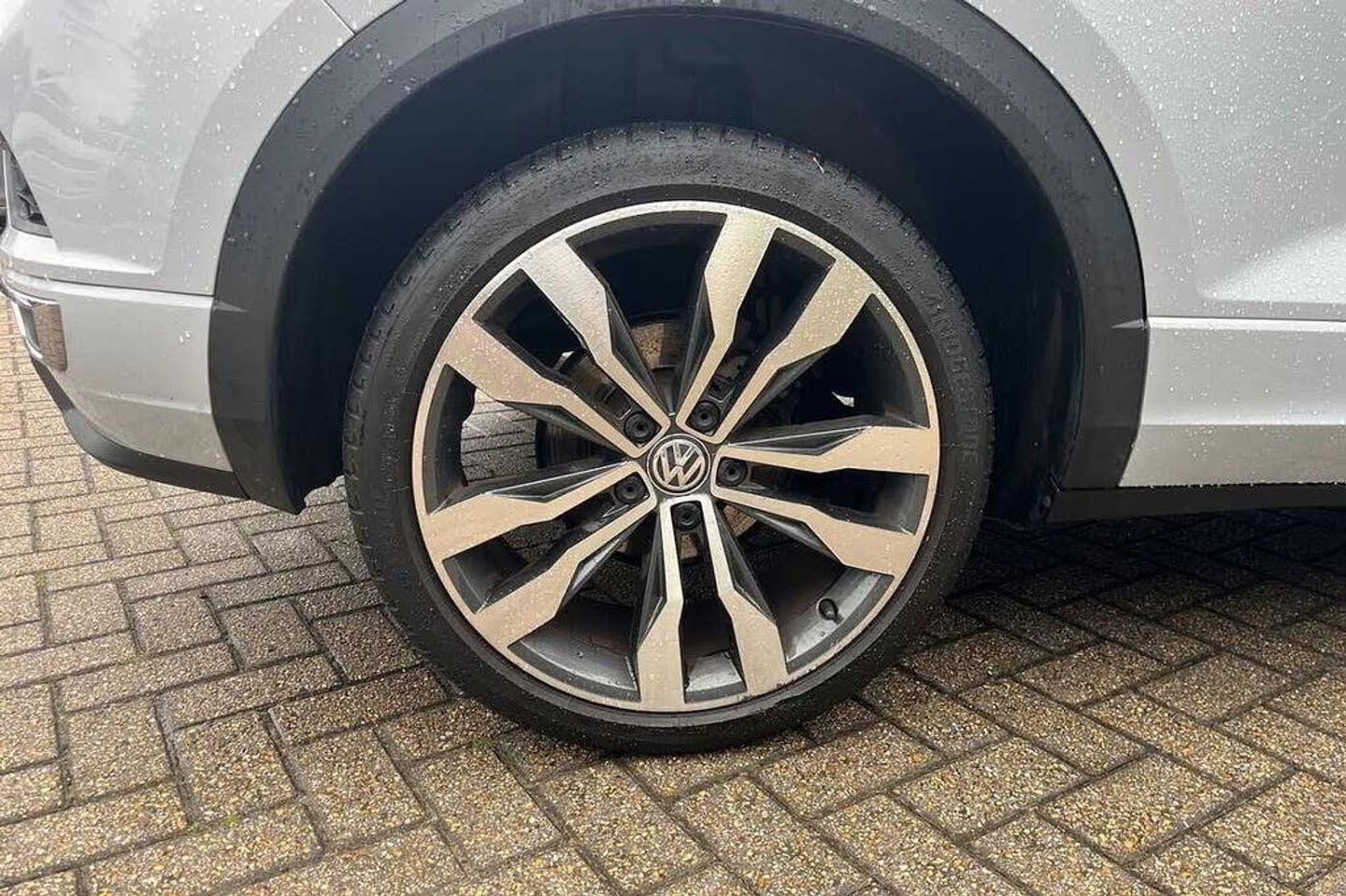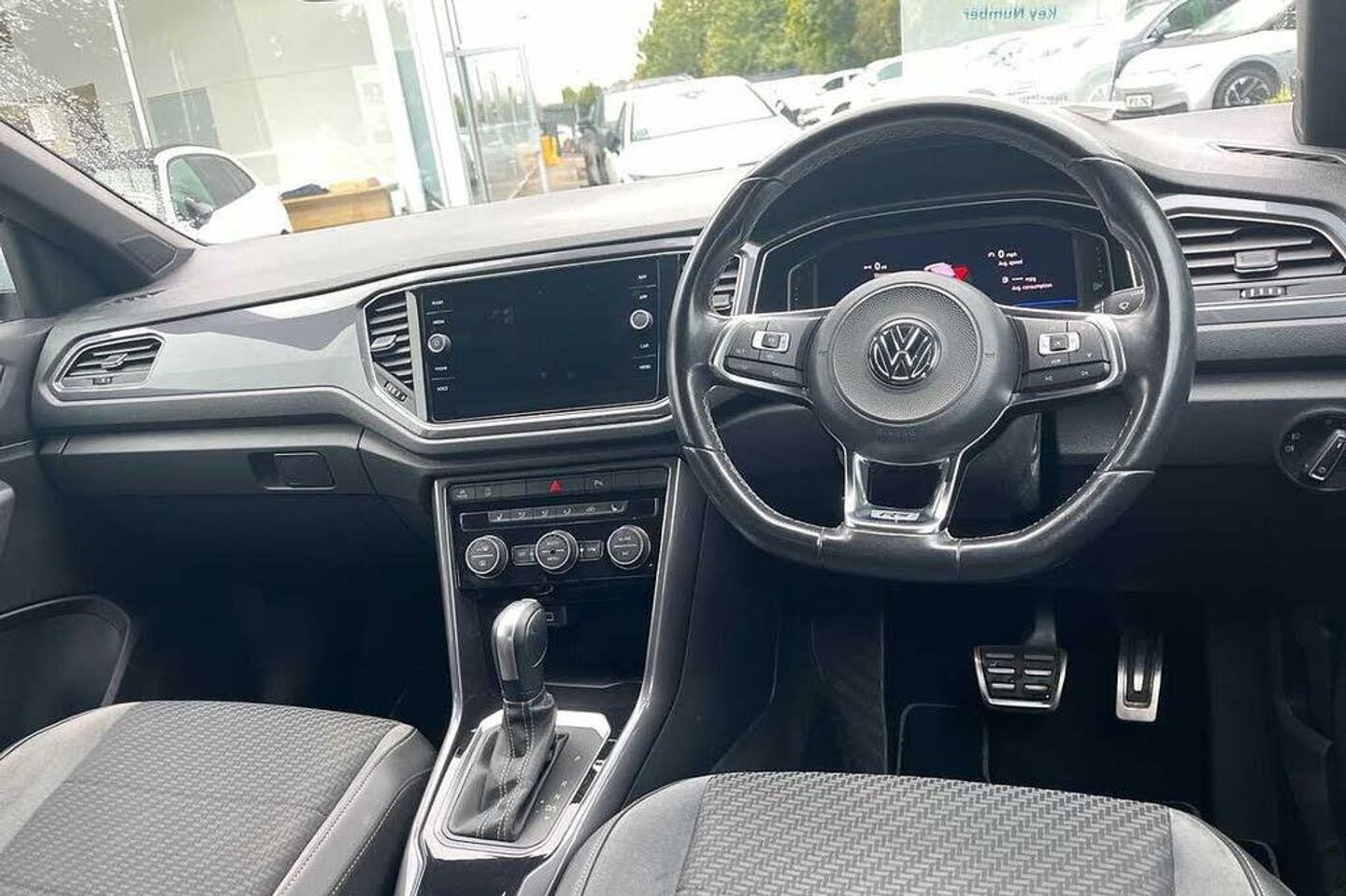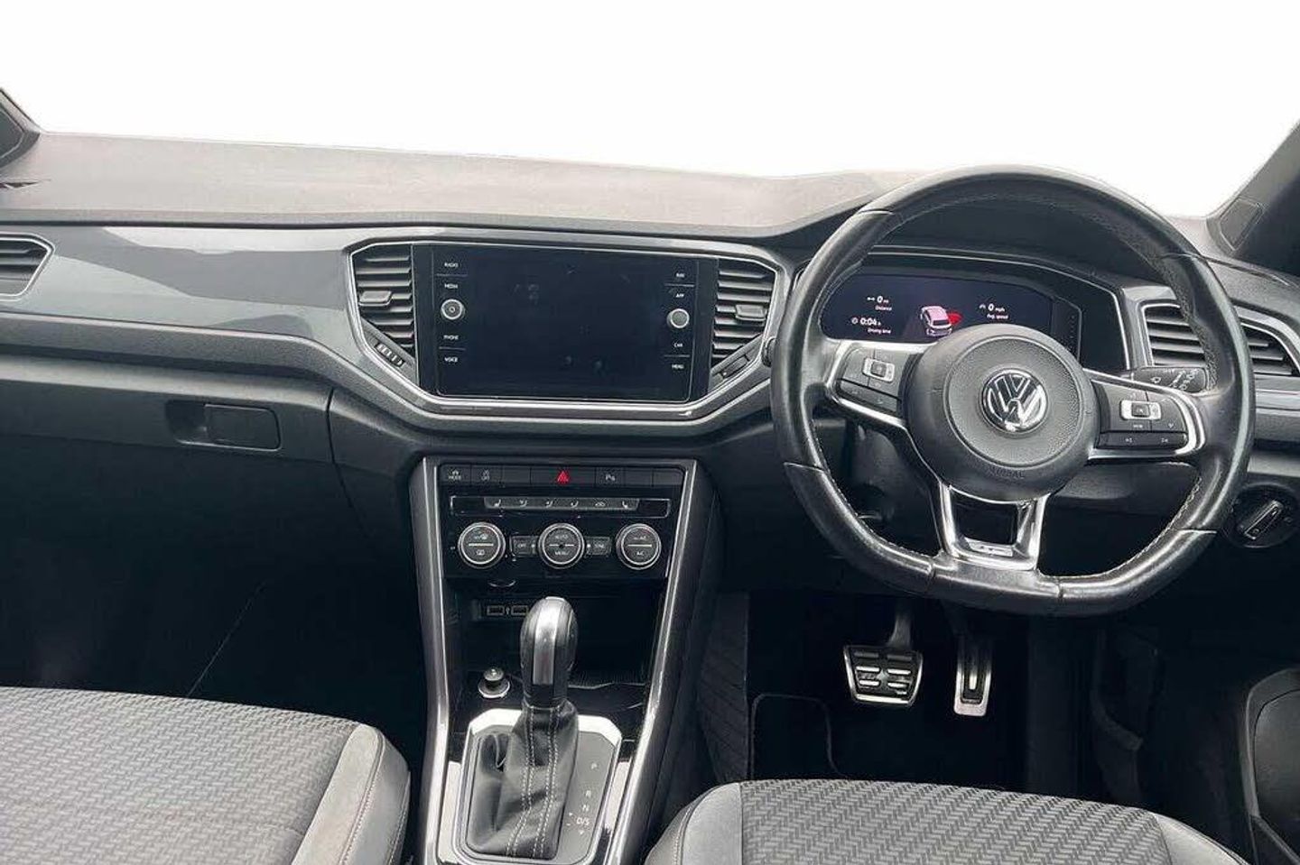 Metallic - White silver, Carbon flag cloth - Titan black/Flint grey, Front and rear electric windows, Front windscreen wiper with intermittent wipe and 4 position delay, Heated rear window, Rain sensor, Rear tinted glass from B-pillar backwards approx 65% tinted, Rear windscreen washer and wiper with interval delay, Black grained lower door protectors, Black grained wheel arches, Body colour door handles, Body colour rear roof spoiler, Chrome effect left and right trapezoid exhaust tailpipe fascia surround, Chrome trim on upper and lower radiator grille, Fully galvanised body, Automatic hazard lights activation under emergency braking, Dusk sensor, Front fog lights with static cornering function, High level 3rd brake light, LED darkened rear light clusters, LED rear number plate lights, Manual coming/automatic leaving home lighting function, ABS, Electronic parking brake with auto hold, ESC with EDL, ASR, EDTC and trailer stabilisation function, Ventilated front and rear disc brakes, Volkswagen roadside assistance, Adaptive cruise control, Driver alert system with audible and visual fatigue detection system, Driver profile selection, Front assist, radar sensor controlled distance monitor, city emergency braking + predictive pedestrian protection, Lane assist, Progressive power assisted steering, Auto dimming interior rear view mirror, Door mirror integrated indicators, Electrically foldable, adjustable and heated door mirrors with puddle lights and reverse activated kerb-view adjustment on passenger's door mirror, 3 rear three point seatbelts, Driver and front passenger safety-optimised head restraints, Front and rear curtain airbags, driver and front passenger airbags with passenger deactivation switch and front side impact airbags, Rigid safety cell with front and rear crumple zones, Three point height adjust front seatbelts + pretensioners, Tyre pressure loss indicator, Front + rear carpet mats, Climate control - 2 zone electronic air conditioning with automatic air recirculation and allergy filter, 12V socket in centre console storage area, 4 load lashing points in luggage compartment, Aluminium pedals, Black decorative sleeve on gear handles, Black roof lining and sun visors, Carbon flag cloth upholstery, Drawer under drivers seat, Front centre armrest with storage compartment, longitudinal and height adjustable and two rear air vents, Front cupholders x 2, Glovebox, Height/reach adjust steering wheel, Load through provision with single cup holder when folded down, Luggage compartment cover, removable, R Line badge, Storage compartment in left and right luggage area, Storage compartment in rear doors, Storage compartments in driver and front passenger doors, Three spoke multi function leather trimmed steering wheel and gear knob including paddle shift, Unique R Line door sill protectors, 2 LED front and rear reading lights, Ambient lighting in front footwell and light strips below trim in front doors, Front footwell illumination, Instrument lighting, white adjustable panel illumination, Interior light delay, Luggage compartment lighting, Illuminated vanity mirrors, App-Connect, Bluetooth telephone and audio connection for compatible devices, Car-Net Security and Service, Voice activation, Bluetooth - Simultaneous pairing of 2 compatible mobile devices, DAB Digital radio, Dynamic navigation based on TMC+, Multi device interface (MDI) with USB connection, Music playback - MP3, WMA and AAC files, Premium USB cable in choice of either Apple or Android smartphone compatibility, SD card slot, SMS functionality - read, compose and send SMS messages using touch-screen display, Three route options - Fast, Short, Eco, Title and cover art display, Automatic start/stop system, 2 USB connection charging sockets, Active Info Display, 10.3'' high resolution TFT dash display screen with customised information, Car information display, Discover navigation, 8'' touch screen navigation/infotainment system with Car-Net, European map, CD/radio