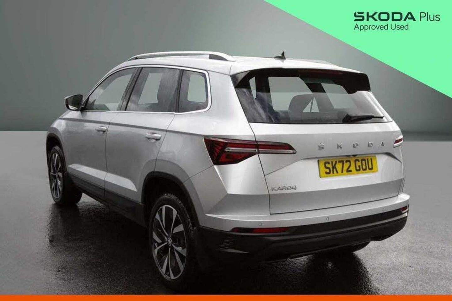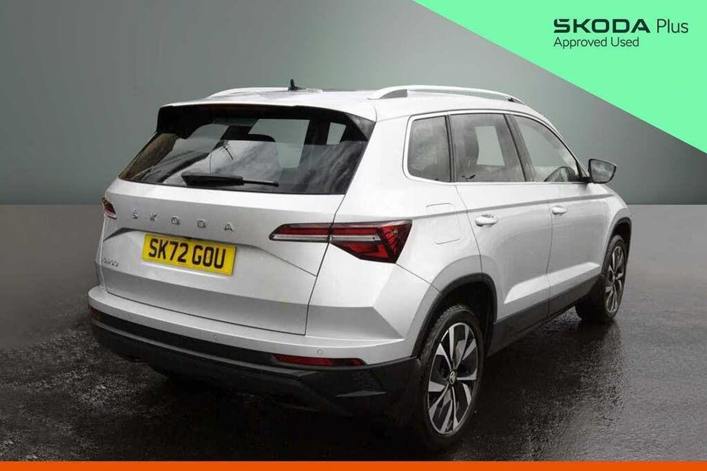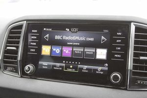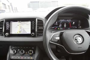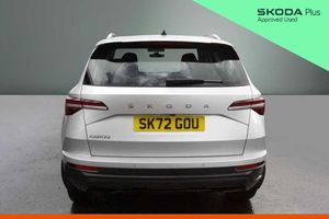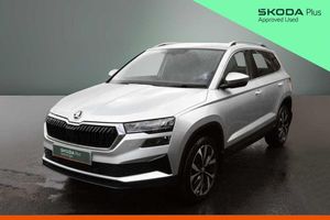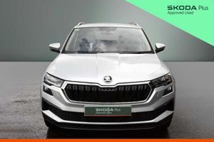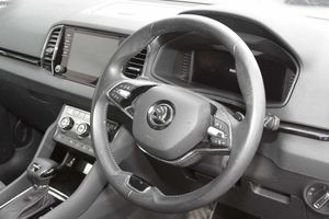 Exterior Features, Metallic paint, Front fog lights, LED Headlights, Safety, Front assist radar scanning of the space in front of the car with automatic braking, Electrically adjustable heated folding and auto dimming door mirrors, Cruise control + speed limiter, Interior Features, Dual zone climate control, Microsuede cloth/leather upholstery, Miscellaneous, Amundsen satellite navigation with 8" touchscreen display with maps Europe, WLAN and web radio, Trim, Heated front seats, Wheels, Temporary steel space saver spare wheel, 18" Miran alloy wheels in black, Paint - Metallic, Metallic - Brilliant silver, Trim - Part Leather, Microsuede cloth/leather - Black, Exterior Features, Acoustic glass, Aero front windscreen wipers with intermittent function, Privacy glass, Rear window wiper with washer system and intermittent control, Rear spoiler, Safety reflectors on front doors, Automatic headlight control system, LED daytime running lights, LED rear lights with high functionality welcome effect and dynamic indicators, Light assistant (coming/leaving home/tunnel light), Safety, Electronic parking brake with auto hold function, Emergency rear braking signal, ESC including ABS, MSR, ASR, EDS, HBA, DSR, RBS, MKB and traction control, Hill hold control, Auto dimming rear view mirror with light and rain sensors, Automatic door unlocking in case of crash, Automatic fuel cut off in case of crash, Driver airbag, Front side airbags, Knee airbags, Passenger airbag with switch-off function, Pedestrian monitor, Seatbelt reminder signalisation and pretensioner for all seats, Three point seatbelts rear, Tyre pressure display, Tyre pressure monitor, Interior Features, Black floor carpet, Textile floor mats, Pollen filter, 1.5 litre bottle holders in driver and front passenger door panels, 12V socket in boot, 12v socket in front centre armrest with storage compartment and rear air vents, 2 Folding hooks and nets in boot, 2 spoke leather heated multifunction steering wheel with DSG paddles, 2 x Tablet holder, 4 foldable roof handles with rear coat hooks, Chrome inner door handles, Decorative door sills with KAROQ badging, Double sided boot floor, Foldable hooks in the boot, Height/reach adjust steering wheel, Rear boot cover, Rubbish bin door, Storage box in upper central dashboard closed, Ticket holder, Illuminated glovebox, Illuminated luggage compartment, Rear reading lights, Safety vest holder, Sunvisors with illuminated vanity mirrors, Audio / Communications, Care connect, 8 Speakers, DAB radio with Bluetooth, USB connection, Driver Convenience, Emergency services call system, Start/stop system with regenerative braking, Miscellaneous, 8" Digital display, Colour multifunction trip computer, Driver fatigue sensor, Outside temperature gauge, Service interval indicator, SmartLink wireless for Apple and wired for Android, USB C Port x 2 in front centre console, Trim, Chrome framed air vents, 3 rear height adjustable headrests, 3 seat bench in 2nd row, Front head restraints, Height adjustable front three point seats belts with tensioners, Isofix child seat preparation for front passenger seat, Isofix child seat preparation outer rear, Manual lumbar support for front seats, VarioFlex seats with standard rear seat release, Packs, Chrome roof rails + chrome pack - Karoq, Parking pack - Karoq, Security, Alarm with interior monitoring, back up horn and tilt sensor with safe function, Electronic engine immobiliser, Keyless entry and start/stop, Remote central locking with 2 remote folding keys, Wheels, Anti-theft wheel bolts protection, Storage on wheel cover, Tool kit
