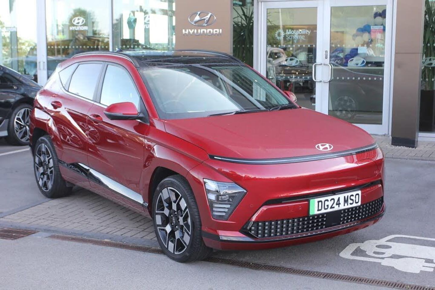 12.3" touchscreen centre console display satellite navigation with bluelink, live services and mapcare,Blind spot collision avoidance assist,Blind spot view monitor,Bluetooth connectivity with voice recognition,Driver status monitor (DSM),Driver supervision instrument cluster with 12.3" LCD display,eCall emergency call system,Feature on demand - Enabled,Forward collision avoidance assist (FCA 1.5) - Car,pededstrian,cycle and junction turning,Front parking sensor,HDA - Highway Drive Assist Level 1.5,Head up Display,Height adjustable power tailgate,Intelligent speed limit assist,Lane follow assist,Lane keep assist,Leading vehicle departure alert (LVDA),Parking Collision Avoidance Assist-Reverse (PCA-R),Parking distance warning - side,Parking system with rear camera and guidance system,PAS,Rear cross traffic collision avoidance (RCCA),Rear parking sensor,Roadside assistance,Safe exit warning (SEW),Smart cruise control with stop and go functionality,Surround view monitor,Wireless phone charging pad,Wireless Smartphone Integration includes Apple CarPlay and Android auto,Electric active sound design,Type 2 charging cable,2 front USB C and 2 rear USB C charging points,Bose Premium Audio system with 7 premium speakers + subwoofer,DAB Digital radio,Steering wheel audio,phone and cruise controls,Auto dimming rear view mirror,Automatic headlights with dusk sensor,Automatic windscreen wipers with rain sensor,Body colour exterior door handles,Body coloured door mirrors,Body coloured wheel arch inserts,Door mirror LED indicator lights,Electric front windows with anti-trap mechanism and one touch control,Electric rear windows,Electric sunroof,Electrically adjustable and heated door mirrors,Front and rear LED turning signals,Frunk - under the bonnet storage,Horizon centre LED DRL,LED projector headlights,LED upper and lower rear lights,N Line interior and exterior styling,Power folding door mirrors,Privacy glass - Rear windows and tailgate,Rear roof spoiler with integrated LED brake light,Rear side wing doors,Rear wiper,Roof rails,Satin finished beltline,Solar glass with front door glass and windscreen,Tinted glass in front and rear doors,V2L (Vehicle to Load) - Inside,Windscreen auto defog function,12V power outlet in front console,2 zone climate control,3 seat bench in 2nd row,40/20/40 split folding rear seat,Adjustable head restraints,Ambient lighting,Driver and passenger front seat pockets,Driver's seat electric adjustments,Driver's seat lumbar support,Driver/passenger sunvisors and illuminated vanity mirrors,Floor mats,Front cupholder,Front passenger's seat electric adjustments,Heat pump,Heated front seats,Heated rear seats,Heated steering wheel,Height/reach adjustable steering column,Isofix rear child seat fastenings,Leather upholstery,Leather wrapped steering wheel,LED centre interior light,LED front interior light,Luggage compartment LED lighting,Luggage net,Luggage shelf,Metal paint effect interior door handles,Rear centre armrest with cupholders,Shift by wire SBW,Single front passenger seat,Ventilated front seats,Vertical adjustment rear head restraints,Trailer wiring package - Kona,Airbag - front,front side,curtain and centre front airbag,Anti-lock brake system (ABS),Downhill brake control,Electric parking brake,Electronic stability control,Fixed 3 point for second row centre passenger seatbelt,Hill start assist control (HAC),Manual child lock in rear doors,Rear seat alert,Tyre pressure monitoring system,Alarm/immobiliser,Remote central locking,Smart key with keyless entry and start/stop button,Five year annual vehicle health checks,Temporary mobility kit (TMK)