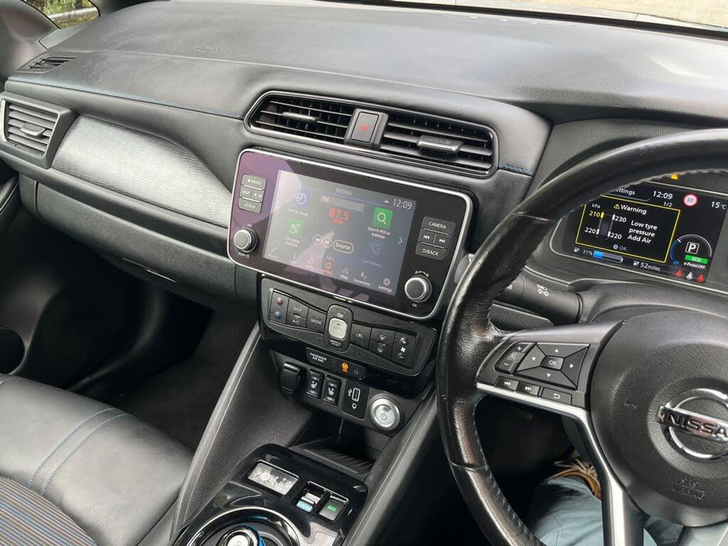 12V Socket, 17in Alloy Wheels, 3 Pin EVSE Charging Cable, 50kW CHAdeMO Rapid Charger, 6 Speakers, 6.6kW AC On Board Charger, 60-40 Split Folding Rear Seats, 7in TFT Screen Combimeter, ABS with EBD and Brake Assist, AM-FM-DAB Audio System, AUX Socket, Alarm - Thatcham, Android Auto and Apple CarPlay, Auto Dimming Rear View Mirror, Auto Wipers, Automatic Air Conditioning, Blind Spot Warning, Body Coloured Door Mirrors with Integrated LED Indicators, Door Handles - Chrome, Driver - Passenger - Side - Curtain Airbags, E-Pedal, ESP - Electronic Stability Programme, EV Connect Telematics System, Electric Folding Door Mirrors, Electric Power Steering, Front Centre Console and Armrest, Front Fog Lights, Front Seat Back Pockets, Front and Rear Electric Windows, Gloss Black B-pillar, Halogen Headlamps with LED Signature, Headlights - High Beam Assist, Heat Pack, Heat Pump, Hill Start Assist, ISOFIX Child Seat Anchoring Points - Front and Rear, Illuminated Charge Port, Intelligent Auto Headlights with Follow Me-Home Functionality and Auto Hazard Lights, Intelligent Cruise Control, Intelligent Emergency Braking with Pedestrian Recognition, Intelligent Lane Intervention, Intelligent Trace Control, LED Signature Daytime Running Lights, LED Signature Tail Lights, Lane Departure Warning, Leather D Shaped Steering Wheel, Manually Adjustable Drivers Seat - Slide - Recline and Lifter, Manually Adjustable Passenger Seat - Slide and Recline, Metallic Blue Rear Finisher, Mode 3 Type 2 Charging Cable, Nissan Connect EVO 8in Touchscreen Navigation and Entertainment System, Nissan i-Key, Rear Cross Traffic Alert, Rear Privacy Glass, Rear USB Ports x2, Rear View Camera, Remote Audio Control, Speed Limiter, Start Push Button, Tech Pack, Tilt Adjustable Steering Wheel, Traction Control, Zero Emission Badging - Boot Lid