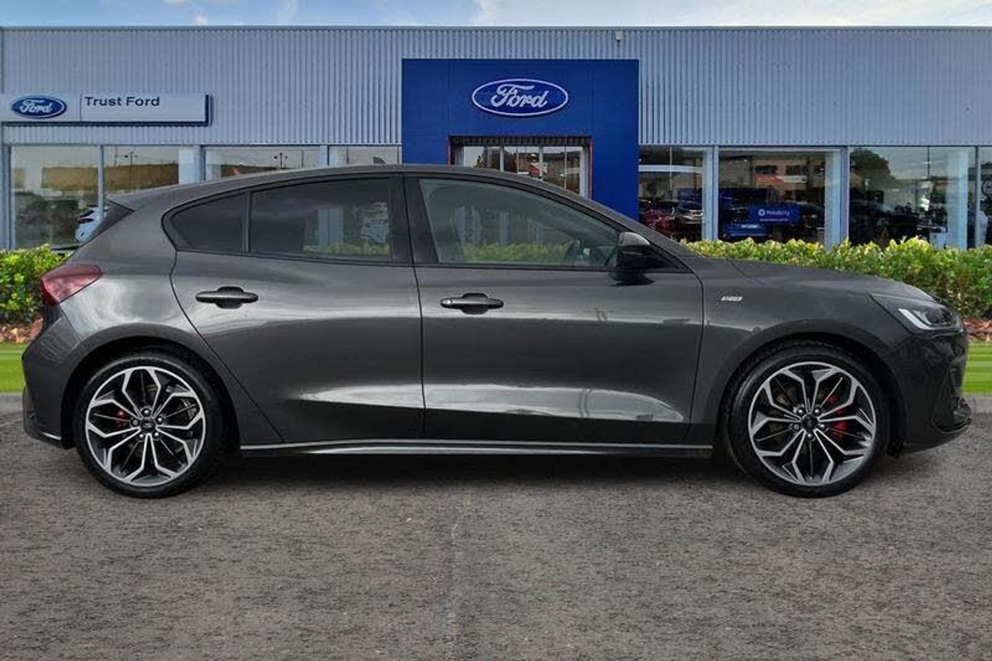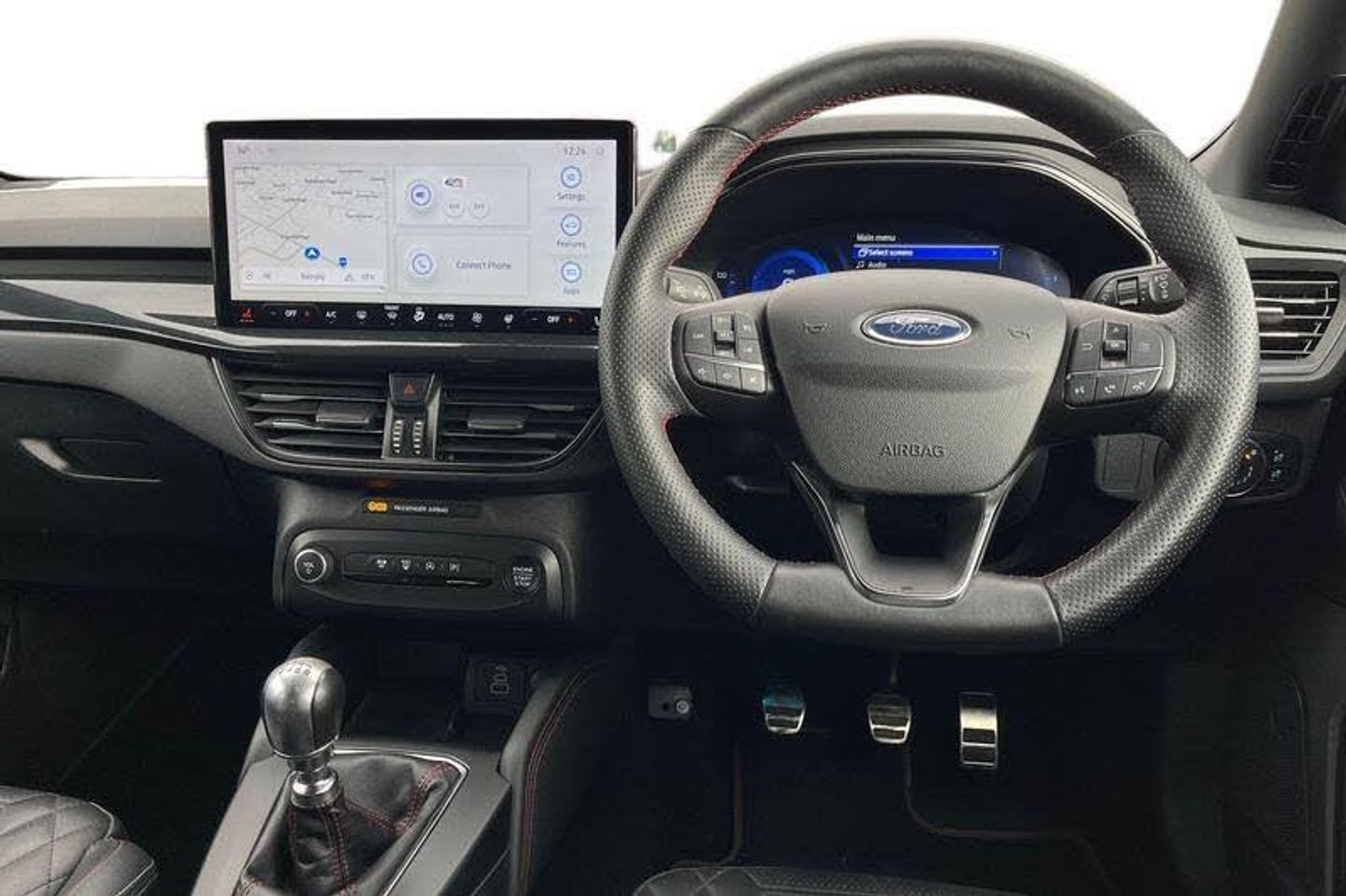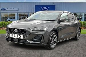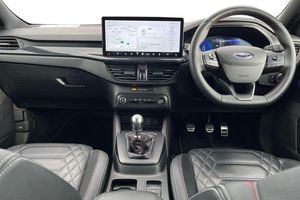 4.2 Colour TFT Ice blue illumination analogue cluster with trip computer, Bluetooth system, Digital clock, Easy fuel capless refuelling system, Eco mode, Ford SYNC 4 Navigation with 13.2'' touchscreen, DAB radio, Emergency Assistance, Apple Carplay & Android Auto, 6 speakers & FordPass Connect, Lane keeping system - lane keeping alert and lane keeping aid, PAS, Rev counter, Selectable drive mode, Service interval indicator, Auto headlamps (on/off), Body coloured door handles, Electrically operated front and rear windows with one touch opening and closing, Electrically operated heated power fold door mirrors with puddle lamp with side indicators, Front variable intermittent wipers with electric wash, Full fixed LED headlamps, Heated rear window, LED daytime running lamp, LED rear lamps, LED third brake light, Polished twin tailpipe, Privacy glass, Quickclear heated windscreen, Rain sensor, Rear side wing doors, Tailgate wash/wipe, Unique ST-Line grille, full bodystyling kit, and large body coloured rear roof spoiler, 3 rear headrests, 3 seat bench in 2nd row, Cloth upholstery, Dual zone electronic air temperature control, Height adjustable front headrests, Isofix child seat preparation, Manual 2-way passenger seat adjust, Manual 4-way driver seat adjust, with manual lumbar adjust, Reach + rake adjustable steering column, Single front passenger seat, 3x3 point rear seatbelts, ABS+Electronic Brake force Distribution, Auto hold function, Driver airbag, EDL traction control, Electronic parking brake, Electronic stability control, Front and rear seatbelt reminder, Front inertia reel height adjustable seatbelts with pre-tensioners, Front passenger airbag, Front side airbags, Passenger airbag deactivate switch, Post collision braking, Pre collision assist with autonomous emergency braking and pedestrian/cyclist detection, Remote/power child rear door locks, Side curtain airbags, Three rear inertia reel lap/diagonal seatbelts, Tyre pressure monitoring system