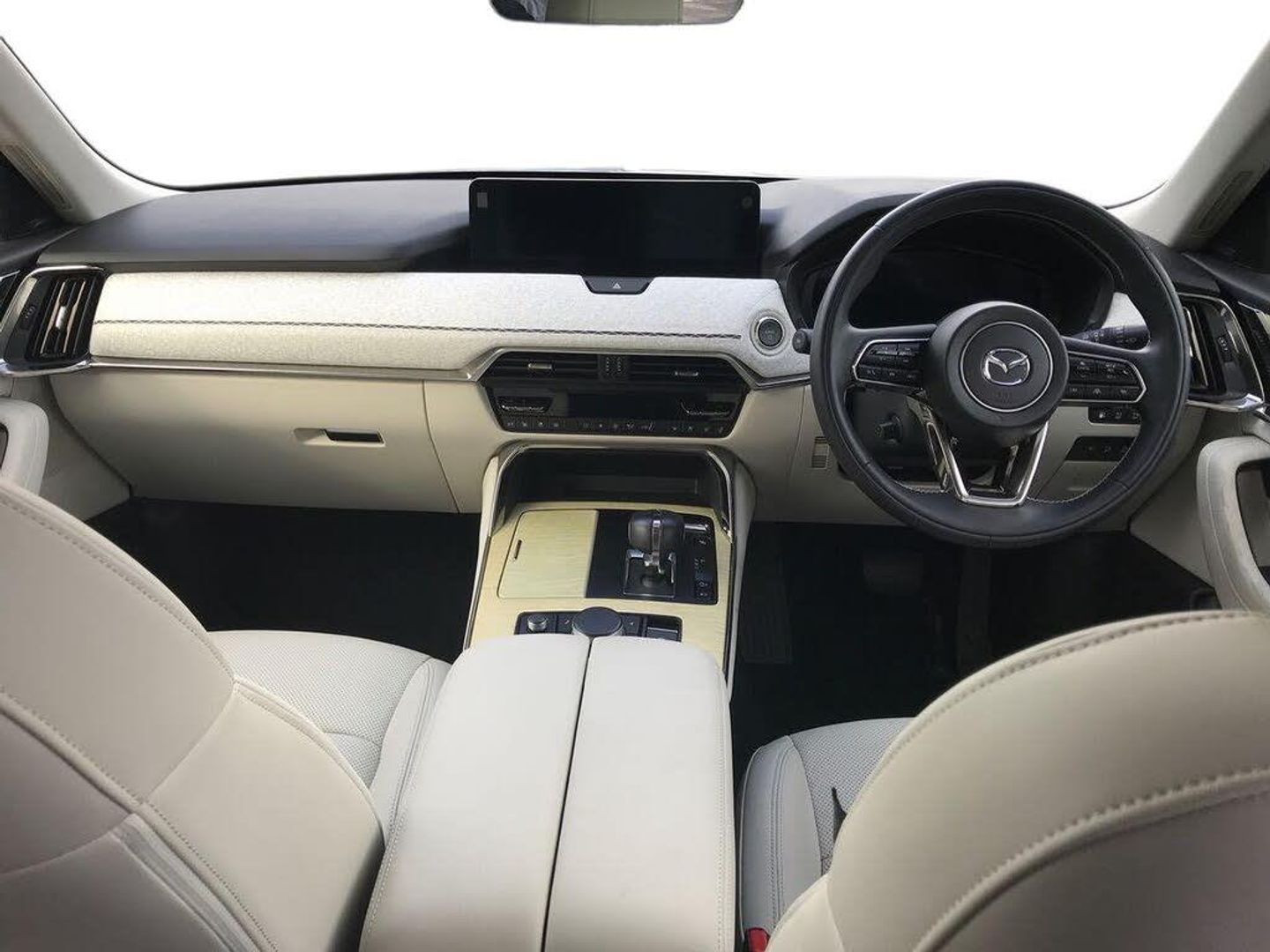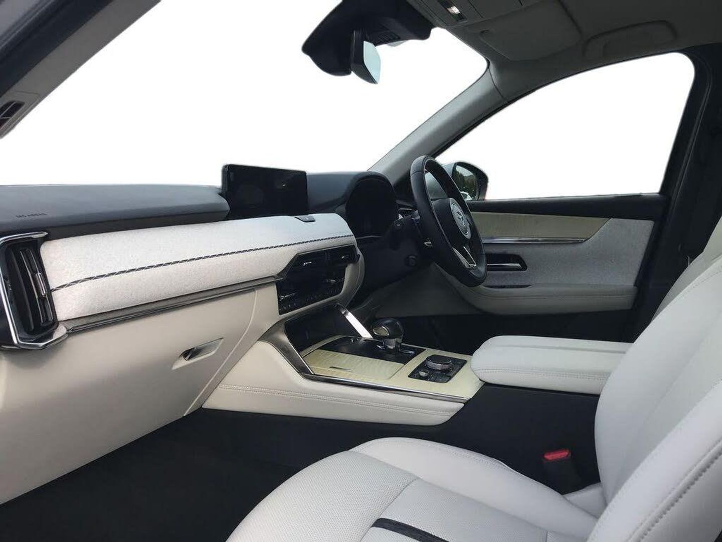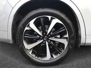 Emergency lane keeping with blind spot assist, Low washer fluid warning light, 12.3" Colour entertainment centre display with mazda connect infotainment, 12.3" TFT Colour display, Adjustable speed limiter, Blind spot assist, Blind spot monitoring with rear cross traffic alert, Dashboard leather with feature stitching, Distance alert system, Driver attention alert system, Driver Monitoring with personal identification, E-call with GPS, Emergency stop signalling system, Exit warning function, Front and rear parking sensors, Ingress / Egress support and automatic driver position guide, Integrated bluetooth, Intelligent speed assist, Kinematic posture control, Lane keep assist system (LAS) with Lane departure warning system (LDWS), Mazda Driver Personalisation System, Mazda Navigation System with european mapping, Multimedia Commander, PAS, Power lift gate with handsfree function, Power start/stop button, Reversing camera with static guide lines, Speed alert, Traffic sign recognition, Trip computer, Windscreen projected colour active driving display, Wireless apple car play/android Auto, Type 2 Mode 2 cable for AC charging via UK 3-pin plug, 7.2 kw On board Charger, Mi-Drive (Normal, Sport, Off-road, Towing and EV mode), Type 2 Mode 3 cable for AC charging via home or public charge points, AM/FM and DAB radio, Bose surround sound system with 12 Speaker, Bose center point, Bass match and audio pilot technology, Steering wheel mounted audio/bluetooth controls, USB-C inputs (x2 front and x2 rear), Auto dimming driver's door mirror, Automatic headlight levelling, B-pillar and C-pillar garnishes in gloss black finish, Body colour roof spoiler, Body coloured bumpers, Body coloured door mirrors, Body coloured wheel arch and side mouldings, Bright decoration panel, Chrome finish signature wing in front grille, Chrome front side garish, Chrome headlight lense, Chrome side window surrounds, Coming/leaving home lighting function, Dusk sensing headlights, Electric front/rear windows with one touch auto up/down, Electrically adjustable, heated auto power folding door mirrors with memory, Frameless auto dimming interior rear view mirror, Front kodo turn signal, Front wiper de-icer, Gloss black bar type front grille, Headlight washers, High beam control, LED 3rd brake light, LED rear signature combination lamps, Rain sensing front wipers with adjustable sensitivity and speed, Rear side wing doors, Rear wiper, Signature LED daytime running lights, 12v power outlet - front, 12V socket in boot, 3 height adjustable rear headrests, 3 seat bench in 2nd row, 40/20/40 split folding rear seats with quick levers in the boot, Ambient lighting, Cargo net, Chrome interior trim accents with steering wheel centre bezel, surround of engine start / stop button and glove box handle, Door panel trim vinyl leather with armrest, Driver and front passenger two rear grab handles with rear coat hooks, Driver and front passenger visors with covered vanity mirror and driver ticket holder, Driver seat electric tilt, slide, recline, height and lumbar adjustment, Driver, front passenger and two rear door pockets, Driver/passenger front seatback pockets, Dual zone climate control air conditioning with rear air vents, Electric telescopic and tilt adjustment steering wheel, Folding rear centre armrest with two cup holders, Front centre storage with two cupholders, Front down lamp with front and rear foot lamps, Front headrests, Front passengers seat electric slide, recline, height and lumbar adjustment, Front seat ventilation with 3-stage setting, Glovebox illumination, Heated front seats with 3 stage setting, Heated leather wrapped steering wheel, Heated outer rear seats with 3-stage setting, ISOFIX child seat anchorage points attached on outer rear seats, Karakuri tonneau cover, Leather wrapped gear shift knob, LED illumination luggage compartment, Nappa leather upholstery, Paddle shift, Practical and spacious front centre armrest storage, Rear seat recline function for rear passenger comfort, Remote fold down rear seats, Roof mounted sunglasses holder, Single front passenger seat, 3 point ELR front seat belts x2 with pretensioners, 3 point ELR rear seat belts, Active bonnet, Anti-lock braking system (ABS), Drivers knee airbag, DSC - Dynamic Stability Control, Electronic parking brake with auto disengage function and auto hold function, Front and rear curtain airbags, Front dual stage driver and single stage front passenger airbags, Front passenger airbag cut-off switch, Front side airbags, Front smart city brake support, Hill decent control, Hill launch assist, Manual rear child locks, Seatbelt reminder for driver/front passenger and rear seats, Traction control, Tyre pressure monitoring system (TPMS), Remote central locking with deadlocking and automatic door lock when driving, Smart keyless entry, Thatcham accredited alarm and immobiliser, Cloth with "X" stitch dashboard panel, White maple wood centre console panel, 20" Black metallic mechined alloy wheels, Emergency tyre repair kit