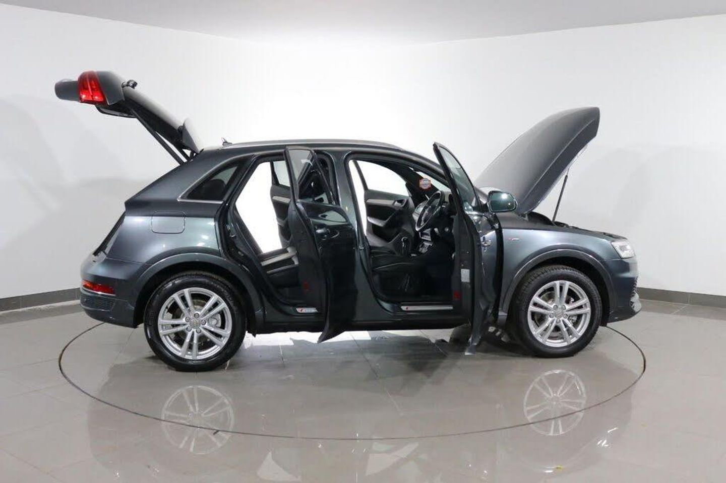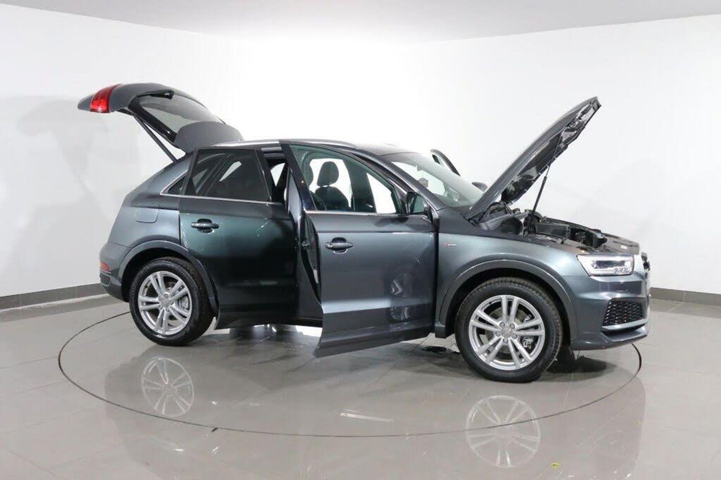 AWB Motors are pleased to present this stunning Audi Q3 finished in Monsoon Grey complemented by 18in ALLOY WHEELS and Front Fog Lights. Sit in luxury with HEATED HALF LEATHER Interior. At the heart of the dash is a Colour Display showing functions such as SATNAV. Make your calls handsfree using the BLUETOOTH Interface. Perfect for listening to your favourite music either from your phone through the MP3 Plugin or simply using the DAB Radio. These alongside all other radio functions can be controlled using the Multifunction Steering Wheel. Park with ease thanks to FRONT AND REAR PARKING SENSORS Fitted. Drive in comfort whatever the journey with both CRUISE CONTROL and CLIMATE CONTROL with AIR CONDITIONING. Safe for your children with ISOFIX Anchorage Points. Other useful ancillaries include Auto Lights and Wipers, POWER FOLD Electric Mirrors, 4 Way Electric Windows and Remote Central Locking. Cheap to run thanks to its Fuel Efficient Engine Engine achieving 50+MPG. Buy with confidence as it has had just 2 OWNERS From New. Maintained very well with 4 Stamp SERVICE HISTORY. Here at AWB Motors, we pride ourselves on the quality of the cars we sell and the service we provide. We are based in Greater Manchester and have sites located in: Ashton-Under-Lyne, Denton, Dukinfield and Hyde. The prices of our cars are checked daily to ensure we are competitive in the market and ensure you get the best deal. Our sales executives are always on hand to tailor the perfect FINANCE PACKAGE for you. AWB Motors are partners with RAC, we offer up to 3 years nationwide WARRANTY and include 12 months Roadside Assistance with every vehicle. Every car is HPI checked and mechanically inspected prior to sale. You can even purchase from the comfort of your own home as we offer DELIVERY throughout the UK. Service Plans, Supagard paint protection and Parking Sensor Fitment are also available. We encourage customers to RESERVE their chosen car to avoid missing out, please visit our website www.awbmotors.co.uk to do this.