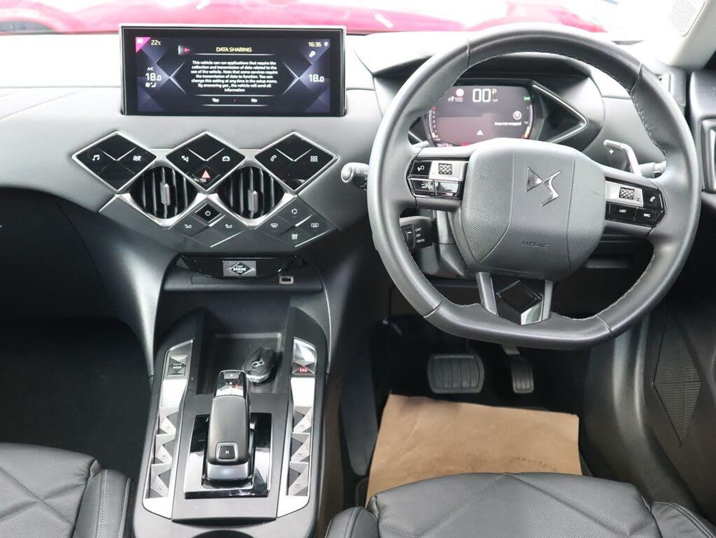 7 inch digital instrument cluster display,Cruise control with speed limiter,DS Connect Box emergency and assistance system,DS Connect Nav - Connected 3D navigation, 10 inch HD touchscreen, automatic air conditioning,eCall emergency call system,Front parking sensors,Mirror Screen with Apple car play/Android Auto,Multi function on board trip computer,PAS,Rear parking sensors,Reversing camera,Service indicator,Voice recognition,2x USB sockets in front,Bluetooth handsfree and media streaming,DAB Digital radio,Acoustic and tinted front and rear windscreens,Automatic front windscreen wipers,Automatic lights,Automatic triggered rear windscreen wiper in reverse gear,Body coloured bumpers,Chrome door handles,Chrome DS wings,Chrome front door sill trim,Dark tinted rear windows,DS LED rear lights,DS Matrix LED headlights with low and high beam assist,DS monogram on rear tailgate,Electrically adjustable door mirrors,Electrically folding door mirrors with DS LED spotlights,Flush fitting exterior do