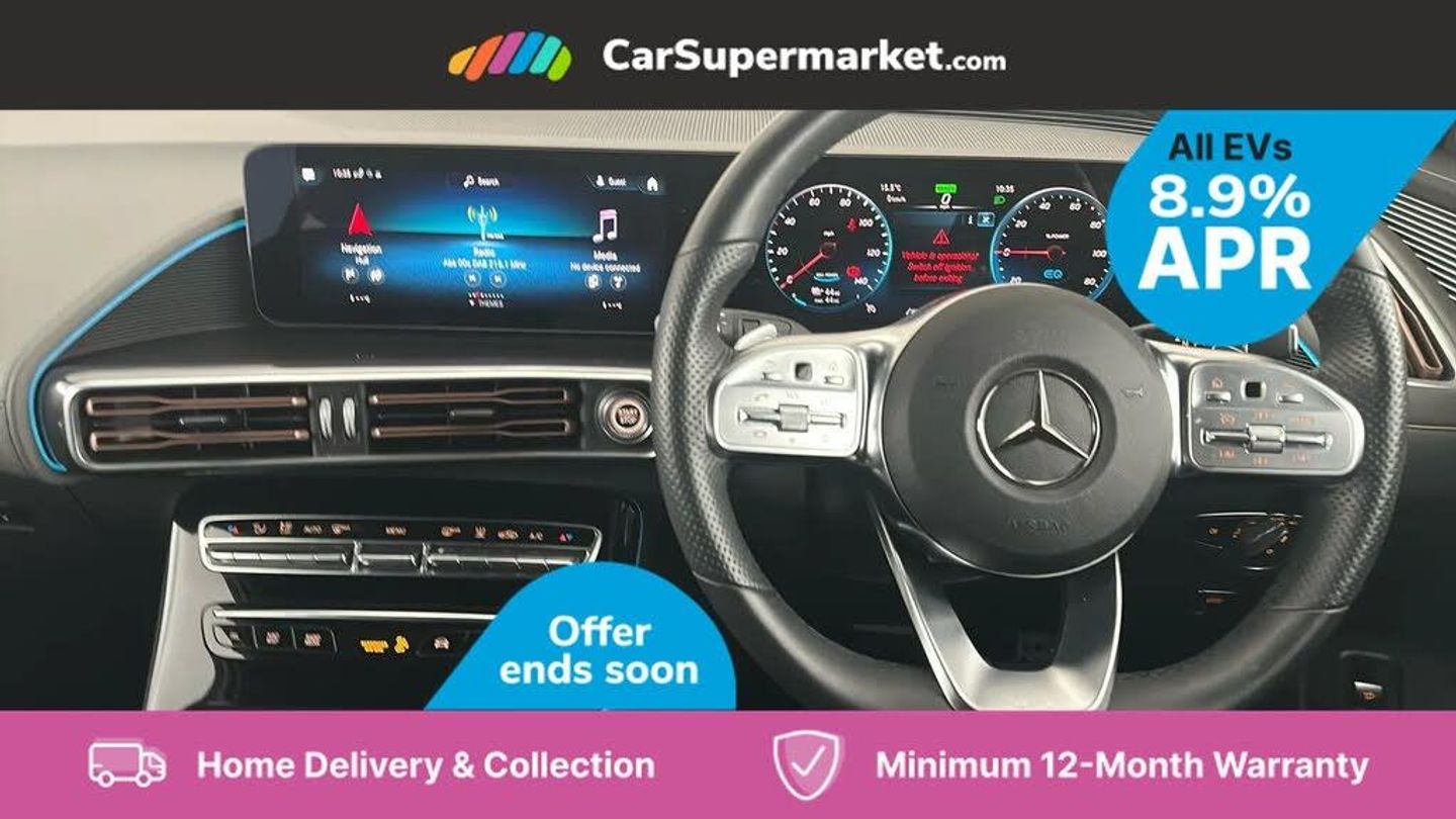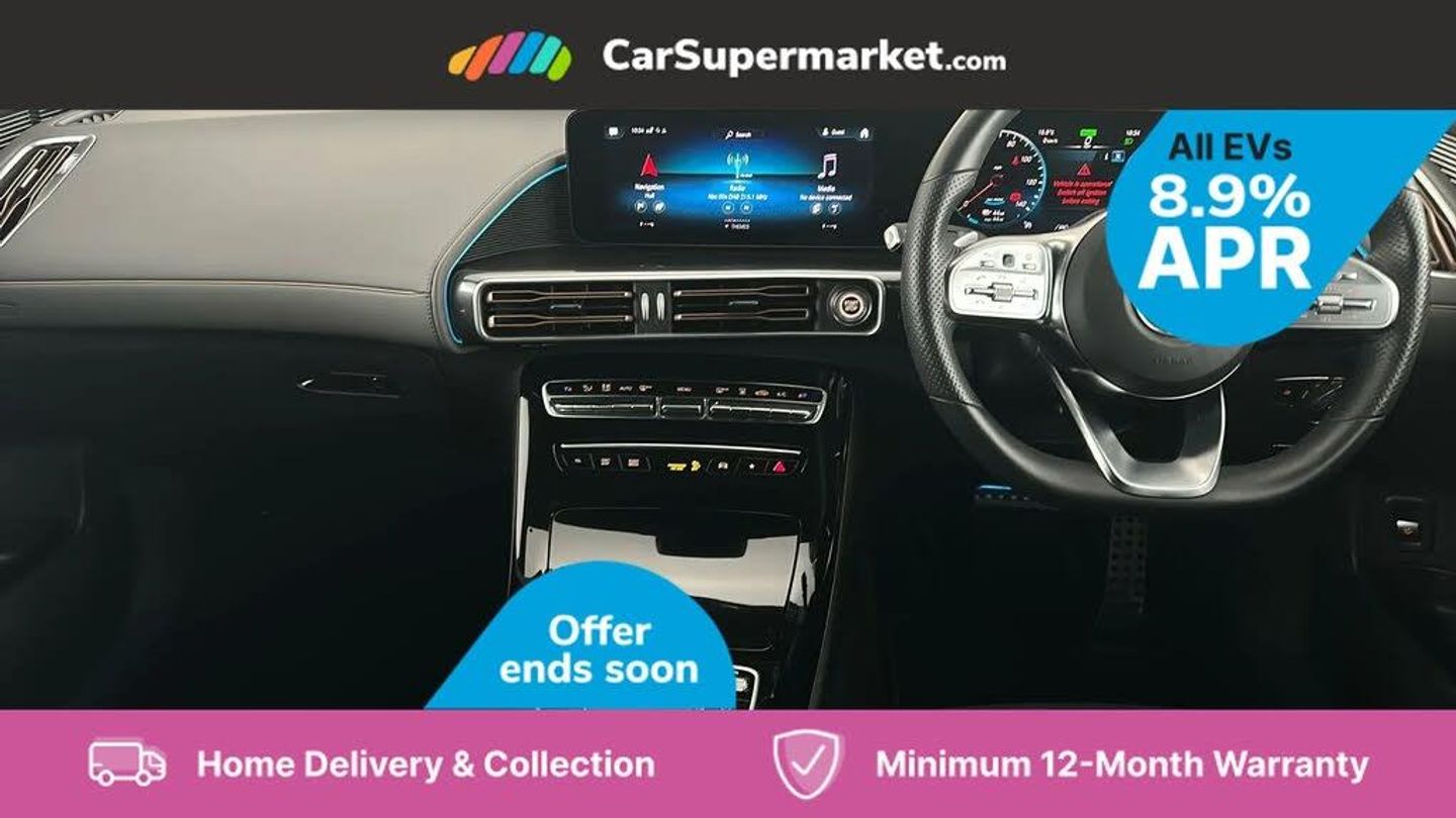 Acoustic ambient protection,Active lane departure warning system,Blind spot assist,Cruise control,DYNAMIC SELECT with a choice of driving modes (max range, ECO, comfort and sport),Easy-pack tailgate,Electronic Power Steering (EPS),EQ navigation services - map (range display), display charging stations, programming of charging settings and pre entry climate control,Hard-disk navigation,Mercedes Benz emergency call system,Mercedes me connect,Traffic sign assist,11KW onboard charger,4MATIC all wheel drive,Charging cable for wall box and public charging station - 4m - Type 2 (mode 3),Charging system - AC charging system rated at 7.4kW and 110kW DC charging system,Combined charging system CCS-2 connector,Comfort suspension with self levelling rear air suspension,DAB Digital radio,MBUX multimedia system with 10.25" instrument and 10.25" media display with touchscreen,Mercedes Benz sound system with 4 mid range speakers, 2 tweeters, 2 Frontbass speakers, 1 centre speaker and 225 W amplifier output,3rd brake light,Aluminium running boards,AMG specific black panel radiator grille with twin blade design and high gloss black surround,AMG specific front apron with jet wing design, visible air intakes with chrome trim parts and high gloss black inserts and air curtains,AMG specific rear apron with visible air outlets, black diffuser insert and chrome trim elements,Badge on the wing in high gloss black with chrome stripes and blue EQC lettering,Daytime running lights,Front and rear LED light band,Heat and noise insulating acoustic glass,High gloss black exterior mirror housing,Multibeam LED headlights with inner housing and high gloss black tubes/blue stripes, adaptive highbeam assist +, cornering and cross traffic functions,Privacy glass,Rear side wing doors,Rear wiper,Vehicle Monitoring,Vehicle Setup,12V Accessory socket in the load area,3 seat bench in 2nd row,3 spoke AMG multifunction sports steering wheel in nappa leather with chrome control panels and flattened bottom section with perforated grip area,40:20:40 split folding rear seats,AMG brushed stainless steel sports pedals with black rubber studs,AMG sports seats,Black fabric roof liner,Charging socket,Dashboard in ARTICO man-made leather with metallised look finish and rose gold piping,Front and rear head restraints,Heated front seats,Interior lighting - 64 colour Ambient lighting,Leather upholstery,Single front passenger seat,Interior light package - EQC,Keyless go comfort package - EQC,Mirror package with heated door mirror - EQC,Parking package with active park assist with reversing camera - EQC,Seat comfort pack - EQC,Stowage package - EQC,3 rear seatbelts,6 airbags - Driver, front passenger, curtain and side airbags,ABS,Active brake assist,Child locks on rear doors,Radar-based recuperation,Urban guard vehicle protection,Anthracite carbon fibre look trim with high gloss centre console,20" AMG multispoke wheels painted black with high sheen finish,Summer tyres,Tirefit