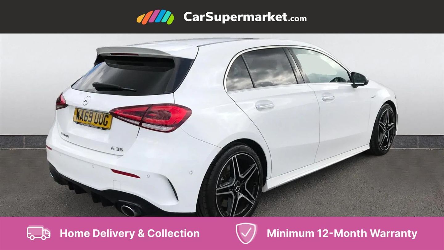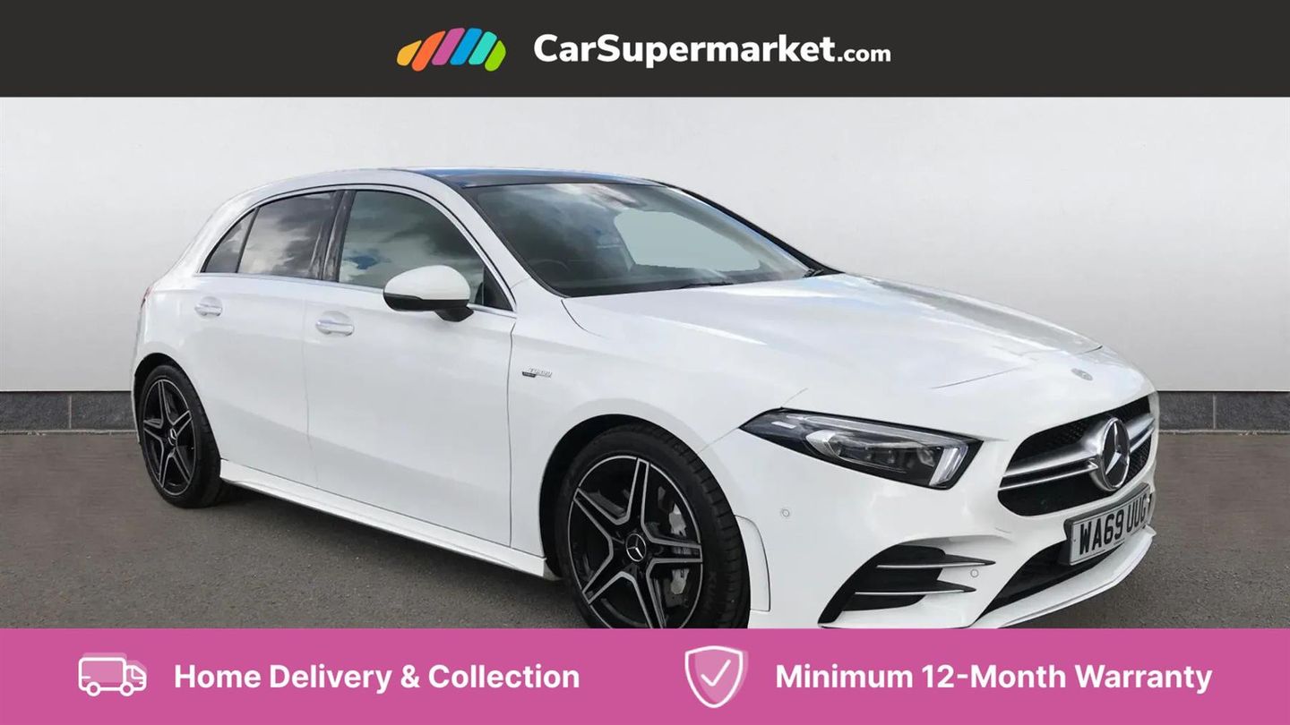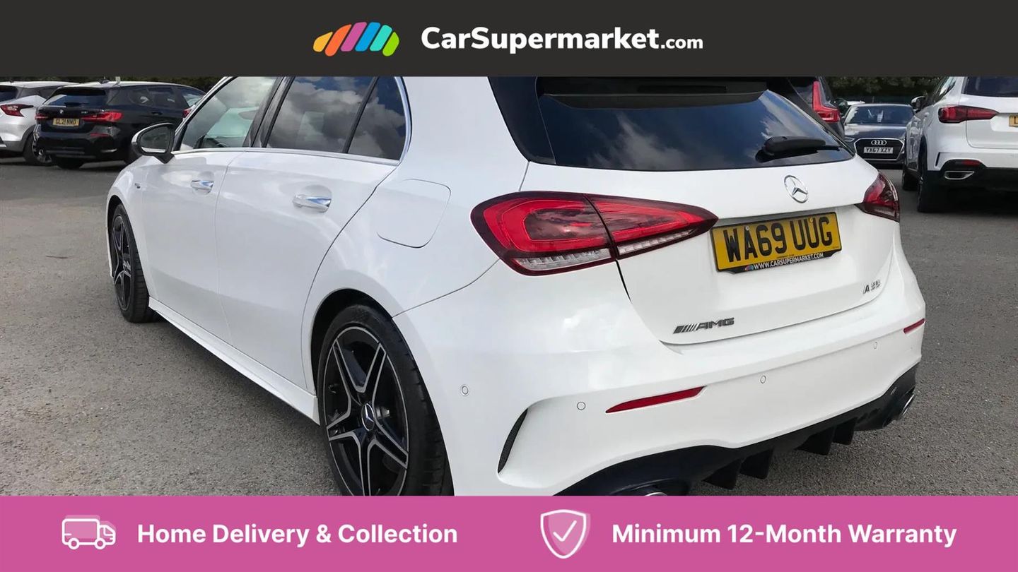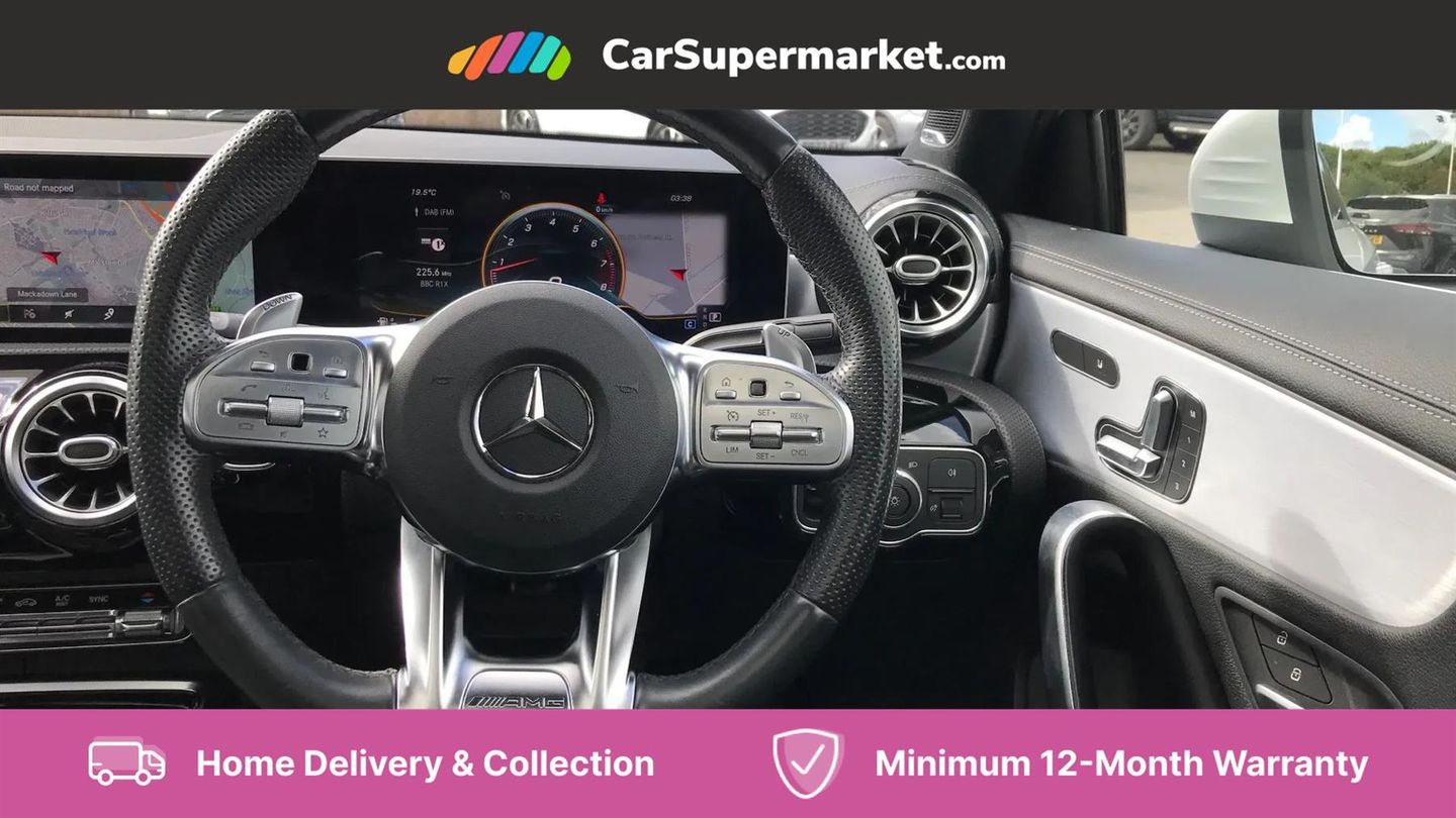 Sat Nav, Digital Radio, Privacy Glass, Automatic Climate Control, Keyless Entry, Parking Sensors, Bluetooth;This 2019 Mercedes Benz A Class A35 AMG Premium Plus boasts an exceptionally low mileage for its age, having covered just 32,899 miles. It is powered by a potent 2.0 litre petrol engine, paired with a four wheel drive drivetrain, and meets Euro 6 emissions standards. The vehicle's provenance is further enhanced by its recent service on 20th June 2025, with the last service recorded at 31,877 miles. Inside, you can enjoy the premium experience offered by the Burmester Surround Sound System, complete with branded sound elements. The A35 AMG variant is designed for performance, evident in its impressive 0-62mph acceleration time of just 4.7 seconds, a figure that sets it apart from many other vehicles in its class. This exceptional acceleration highlights the dynamic capabilities of this AMG model. Furthermore, the spacious boot offers practical versatility, making it a well rounded choice for both spirited driving and everyday needs.