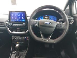 Full digital 12.3" instrument cluster, Ford SYNC 3 navigation pack - Puma, Rear parking sensor, Lane keeping aid with lane departure warning, Sport suspension, Quickclear heated windscreen, ST-Line body styling kit with unique grille and large body colour rear spoiler, Automatic rain sensing wipers, Automatic headlights with auto high beam