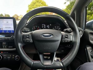 17in Alloy Wheels - ST-Line 5-spoke - Rock Metallic, Air Conditioning - Manual, Airbags - Driver and Front Passenger, Airbags - Front Side Impact, Airbags - Front and Rear Side Curtain, Anti-Lock Braking System - ABS with Electronic Brake Force Distribution - EBD, Automatic Rain Sensing Wipers and Auto-Dimming Rear View Mirror, Black Interior Headlining, Body Colour Bumpers, Centre Console with Armrest and Illuminated Cupholders, Courtesy Light - Front Map Light and Rear - Overhead LED, Cruise Control, Door Handles - Body Colour, Door Lever - Chrome Finish, Door Mirrors - Electrically-Operated and Heated - Power-Foldable with Integrated Side Indicators - Body Colour Housings and Puddle Lights, Driver Seat with Manual Height Adjust, Dual Tone Horn, EPAS - Electric Power Assisted Steering, Electric Windows - Front, Electric Windows - Rear, Electronic Stability Programme - ESP with Hill Start Assist, Emergency Brake Warning - Automatic Hazard Warning Lights, Floor Mats - Front and Rear, Ford Easy-Fuel Capless Refuelling System, Ford Navigation System with Ford SYNC 3 - Apple CarPlay and Android Auto and FordPass Connect - Embedded Modem, Front Seats - Sports Style, Glovebox - Illuminated, Halogen Projector Headlights with LED Daytime Running Lights, IPS - Intelligent Protection System, Keyless Start with Ford Power Start Button, Large Body Coloured Rear Spoiler, MyKey, NCAP Pack, Overhead Console - Sunglasses Holder, Parking Distance Sensors - Rear, Quickclear Heated Windscreen, Rear Fog Lamps, Rear Lights - LED Night Signature, Rear Privacy Glass, Rear Seat - 60-40 Split Back and Cushion, Remote Central-Double Locking, ST-Line Front Fog Lamps with Cornering Lights, ST-Line Side Skirt Body Mouldings - Body Colour, Seats - ISOFIX Mounting Provision for Child Seats, Selectable Drive Modes, Sensico Wrapped Handbrake and Gear Knob, Sensico Wrapped ST-Line Flat-Bottom Steering Wheel, Sports Pedals, Sports Tuned Suspension, Steering Column - Rake and Reach Adjustment, Tailgate Wash-Wipe, Thatcham Category 1 Alarm, Trip Computer, Tyre Pressure Monitoring System - TPMS, Tyre Repair Kit, USB Connection x2, Ultra Low Rolling Resistance Tyres, Unique ST-Line Upper Grille and Full Bodystyling Kit with ST-Line Wing Badges, Warning Triangle Storage, Court Cloth - Ebony, Chrome Blue