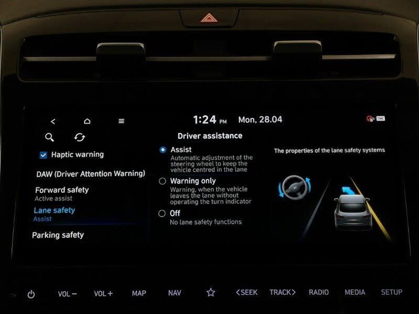 10.25" touchscreen satellite navigation with mapcare and live services, Bluetooth system, Voice recognition, DAB Digital radio, Apple CarPlay, Android Auto, USB connections in front and rear, Reversing camera, Rear parking sensors, Forward Collision Avoidance Assist (FCA) - Car, Pedestrian and Cycle, Multi-Collision braking, Lane keep assist, Driver attention warning, Drive mode selector, Dual zone climate control, Hill start assist control (HAC), Cruise control, Intelligent speed limit assist, Auto dimming rear view mirror, Automatic headlights with dusk sensor, Automatic windscreen wipers with rain sensor, Tyre pressure monitoring system with individual tyre pressure display - TPMS