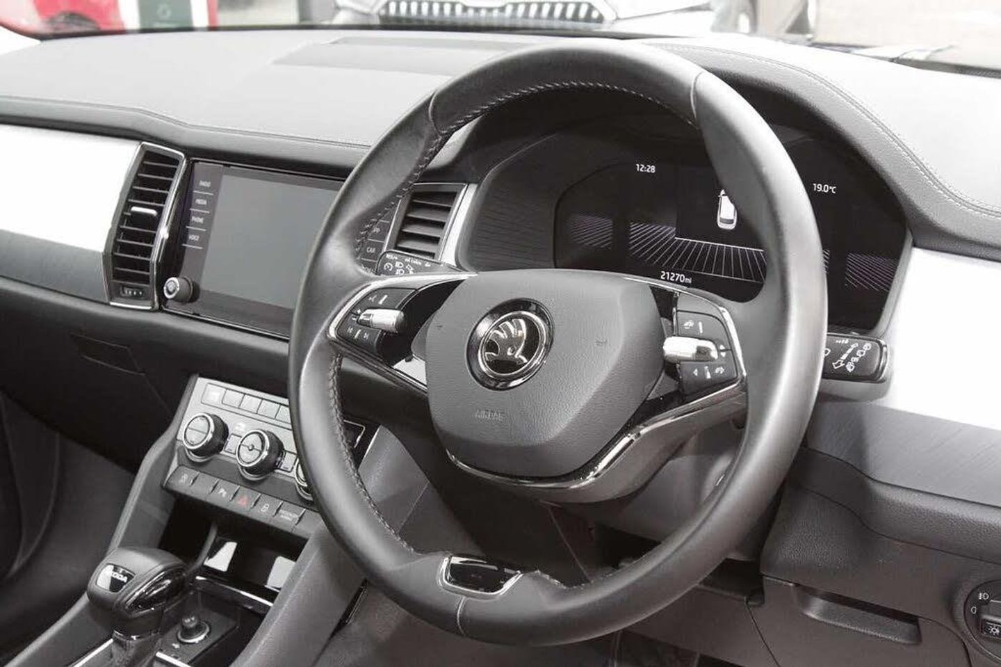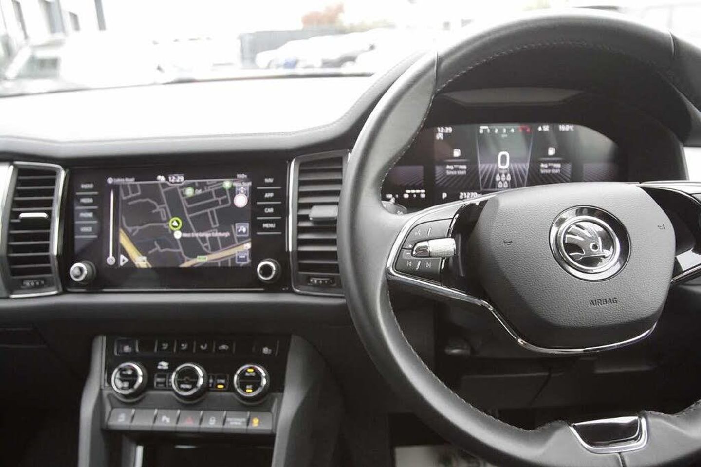 Paint - Metallic, Metallic - Petrol blue, Trim - Cloth, Cloth - Black/grey, Exterior Features, Aero front windscreen wipers with intermittent function, Aero rear window wiper, Electric front and rear windows, Heated rear window, Privacy glass, Rain and light sensors, Black wheel arch surrounds, Body colour bumpers, Body colour door mirrors and handles, Extended rear spoiler with finlets in gloss black, Invisible tailpipe, Off-road style lower front bumper element, Radiator grille frame in matt black with chrome strip, Rear side wing doors, Safety reflectors on front and rear doors, Window control switches with black trim, Front fog lights, Headlight washers, LED rear fog light, LED third brake light in rear spoiler, Light assistant (coming/leaving home/tunnel light), Rear LED lights (high functionality) with welcome effect and dynamic indicators, Safety, Electronic parking brake with hill start assist, Emergency rear braking signal, ESC (incl. ABS+MSR+ASR+EDS+HBA+DSR+RBS+MKB), Front assist with autonomous emergency braking, Hill hold control, Rear disc brakes, Power assist steering, Rear view camera, Speed limiter, Auto dimming rear view mirror, Auto door release and activation of warning lights in the event of an accident, Child locks on rear doors, Driver and front passenger airbag with knee airbag and front passenger airbag deactivation, Front side airbags with curtain airbags, Fuel cut off safety device, Height adjustable front 3 point seatbelts + pretensioners, Safety vest holder in door, Seat belt reminder for all seats, Three point rear seat belts, Two tone horn, Tyre pressure monitor, Audio / Communications, Bluetooth system, E-call, Smartlink wireless for apple carplay and wired for android auto, 8 Speakers, DAB Digital radio, Driver Convenience, ECO Stop/start function, Tailgate unlocking from outside, Miscellaneous, 8" Digital display, Amundsen satellite navigation with 8" touchscreen, integrated Wi-Fi, web radio, Digital voice enhancement, Exterior temperature indicator, USB C Port x 2 in front centre console, Trim, Grey stitching in dashboard, 2 seat bench in 3rd row, 3 seat bench in 2nd row, 60:40 foldable rear seat with sliding adjustment and backrest angle adjustment, Height adjustable front headrests, Height adjustable front seats, Isofix child seat fittings in outer rear seats with top tether, Single front passenger seat, Three rear height adjustable headrests, Interior Features, Dual zone automatic air conditioning with humidity sensor and control, Pollen filter, 12V socket in boot, 2 rails with 2 hooks, 4 foldable roof handles with rear coat hooks, Bottle holders in door panel in the 1.5 litre front and 1 litre rear, Cargo storage compartments, Chrome interior door handles, Cloth upholstery, Coat hooks on B pillar, Covered storage compartment on driver side, Front centre armrest with storage compartment, cup holder and 12V socket, Gear shift lever with chrome frame and black gloss insert, Grey headlining, Grey stitching in front and rear armrests and door armrests + door inserts, Illuminated and cooled glovebox, Manually adjustable steering column, Net programme in boot (1x horizontal Net, 2x vertical Nets), Overhead glasses storage compartment, Rear centre armrest with cupholders, Sliding trunk cover, Small Bags on the inner sides of the front backrests, Ticket holder on A Pillar, Umbrella in door panel, Variable boot floor, Illuminated luggage compartment, Sunvisors with illuminated vanity mirrors, Security, Alarm with interior monitoring and tilt sensor with safe function, Anti-theft wheel bolts, Immobiliser, Keyless entry and start system (KESSY), Remote central locking with 2 keys, Wheels, Temporary spare wheel (space saver)