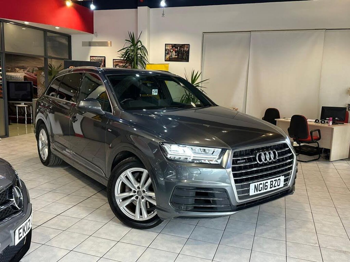 The 2016 Audi Q7 3.0 TDI V6 S line is a luxurious and powerful full-size SUV, finished in an elegant grey exterior that enhances its premium and commanding presence on the , road. Powered by a 3.0-litre V6 TDI diesel engine paired with a smooth automatic transmission, it delivers strong performance, excellent towing capability, and impressive fuel efficiency for a vehicle of its size. Audis renowned quattro all-wheel-drive system provides superb traction, stability, and confident handling in all driving conditions. The S line trim adds sporty styling and premium features, including large alloy wheels, S line body styling, LED headlights, privacy glass, and distinctive interior detailing. Inside, the cabin is spacious and refined with high-quality materials, offering leather upholstery, heated front seats, dual-zone climate control, Audis MMI infotainment system , with navigation, Bluetooth connectivity, and a premium sound system. The Q7 also provides flexible seating with up to seven seats and a large luggage capacity, making it ideal for families or long journeys. With 4 previous owners, this diesel automatic SUV offers a strong combination of luxury, performance, advanced technology, and practicality, making it a comfortable and capable vehicle for both everyday driving and long-distance travel. The specification and technical details in this advert are pulled through from a third-party source. MB Motor Group therefore cannot guarantee or warrant the accuracy of this information. We therefore kindly ask customers to check the specification of their chosen car to ensure it meets all of their requirements prior to purchase.