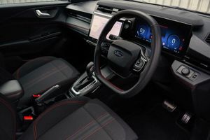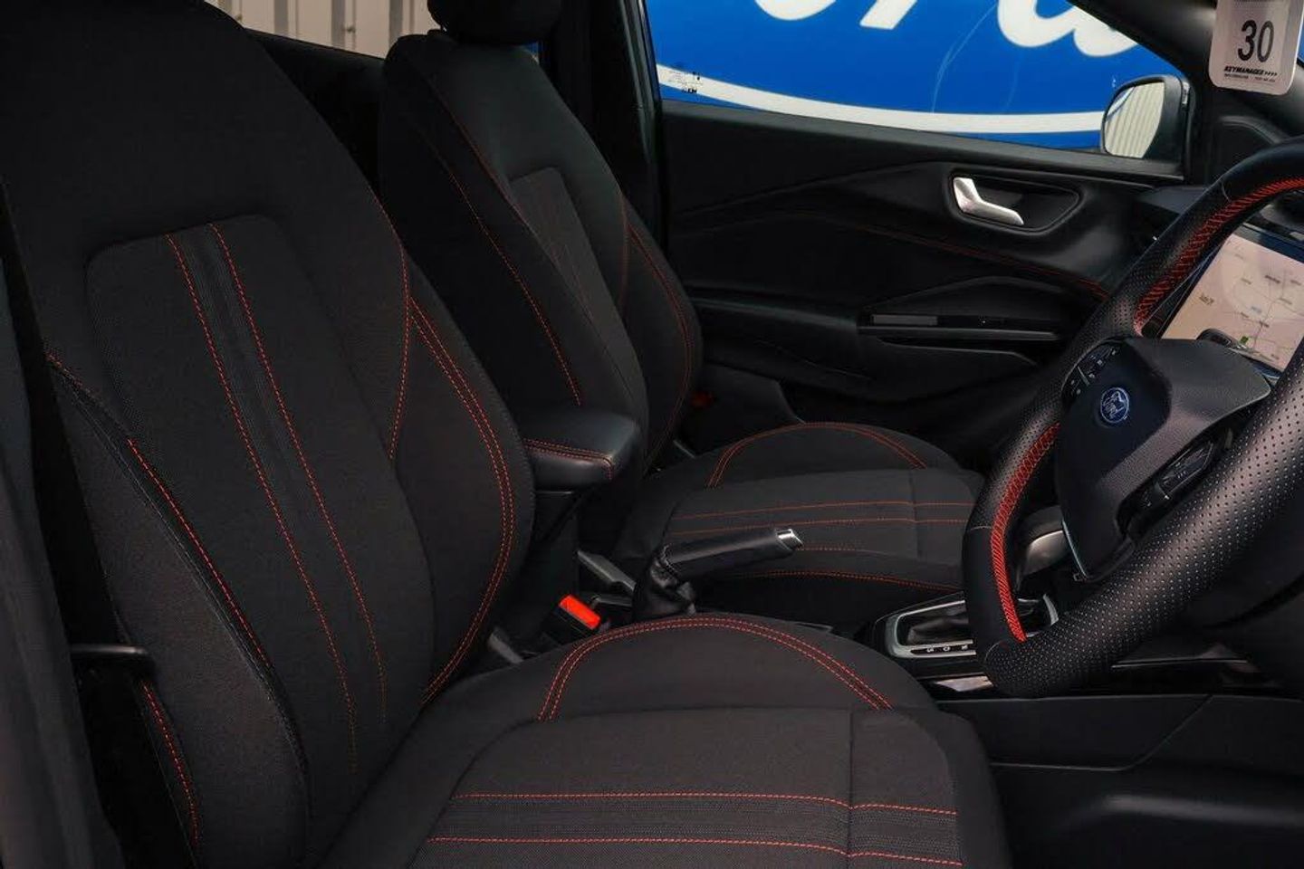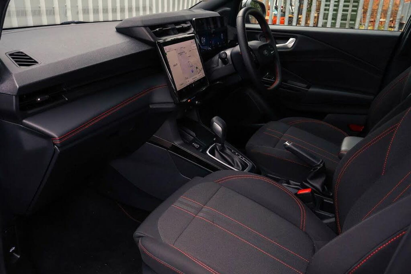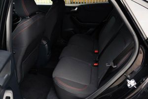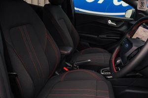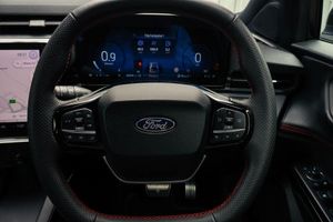 Driver impairment monitor, Emergency call service, Ford easy fuel, Full digital 12.8" instrument cluster, Lane keeping aid with lane departure warning, Power assist steering, Selectable drive modes(Normal, sport, Eco, trail, slippery), Speed sign recognition, 12" landscape touchscreen display with wireless apple car play and android auto 6 speaker audio system, Ford pass connect and emergency assistance, Ford SYNC4 with connected navigation, Automatic headlights with rain sensing wipers and auto high beam, Front fog lamps, LED daytime running lights, LED rear lamps, LED third brake light, Power foldable heated door mirrors with puddle lamps and puma logo protection, Quickclear heated windscreen, Rear privacy glass, Rear side wing doors, Rear wiper, ST-Line body styling kit with unique grille, 3 seat bench in 2nd row, Centre console with armrest and stowage, Electronic automatic temperature control (EATC), Ford megabox extended bootspace, Front and rear head restraints, Front floor mats, Manual 4 way driver seat adjust with lumbar adjustment, Single front passenger seat, ST- Line cloth trim with red stitching, Thatcham alarm
