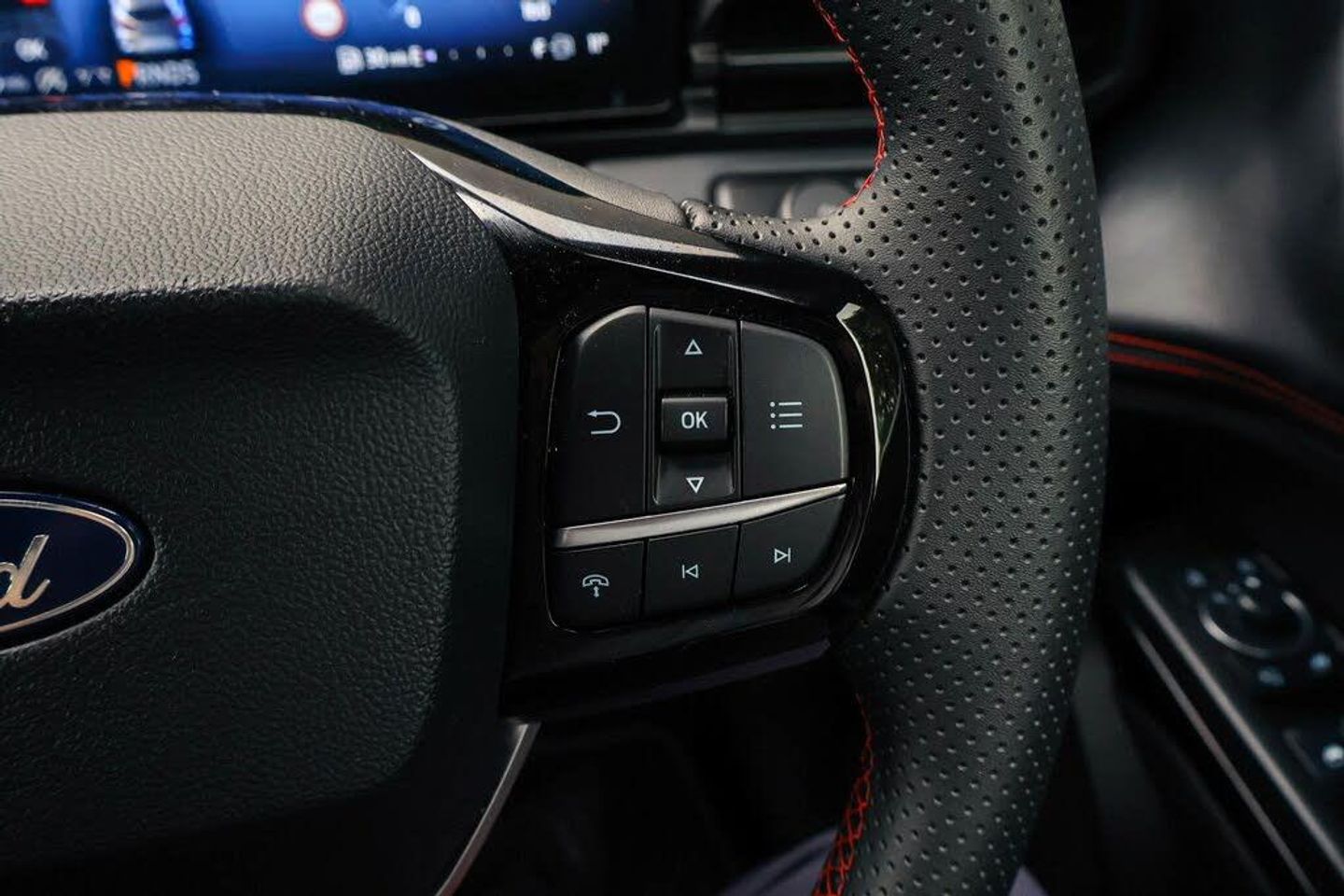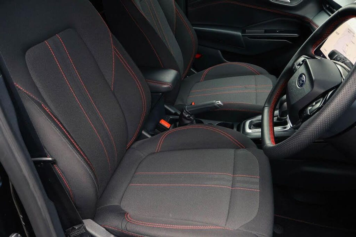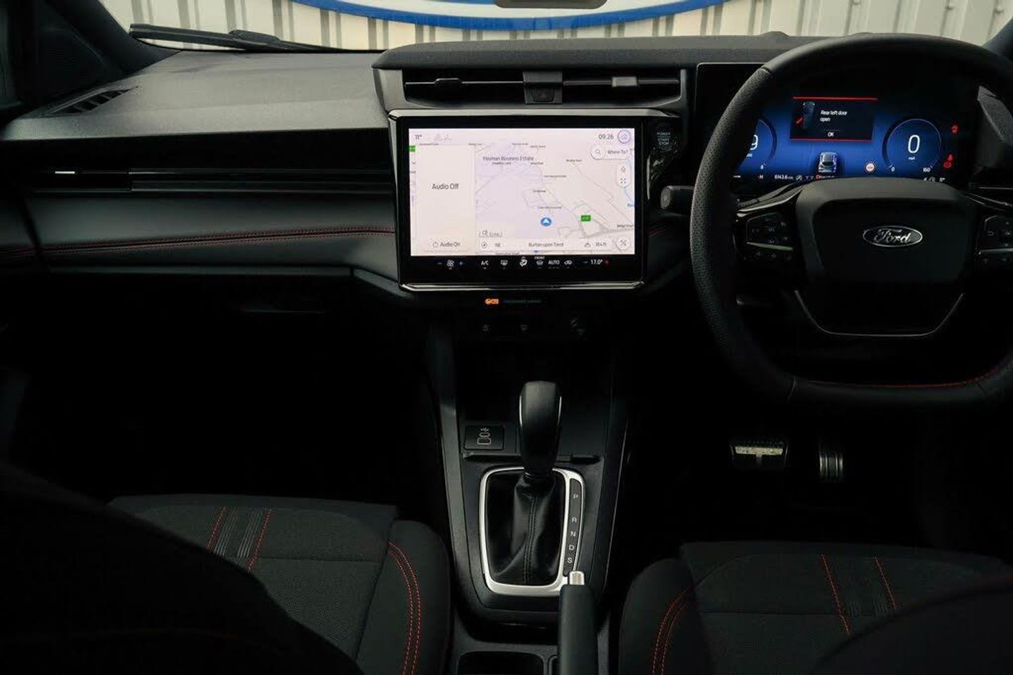 Driver impairment monitor, Emergency call service, Ford easy fuel, Full digital 12.8" instrument cluster, Lane keeping aid with lane departure warning, Power assist steering, Selectable drive modes(Normal, sport, Eco, trail, slippery), Speed sign recognition, 12" landscape touchscreen display with wireless apple car play and android auto 6 speaker audio system, Ford pass connect and emergency assistance, Ford SYNC4 with connected navigation, Automatic headlights with rain sensing wipers and auto high beam, Front fog lamps, LED daytime running lights, LED rear lamps, LED third brake light, Power foldable heated door mirrors with puddle lamps and puma logo protection, Quickclear heated windscreen, Rear privacy glass, Rear side wing doors, Rear wiper, ST-Line body styling kit with unique grille, 3 seat bench in 2nd row, Centre console with armrest and stowage, Electronic automatic temperature control (EATC), Ford megabox extended bootspace, Front and rear head restraints, Front floor mats, Manual 4 way driver seat adjust with lumbar adjustment, Single front passenger seat, ST- Line cloth trim with red stitching, Thatcham alarm