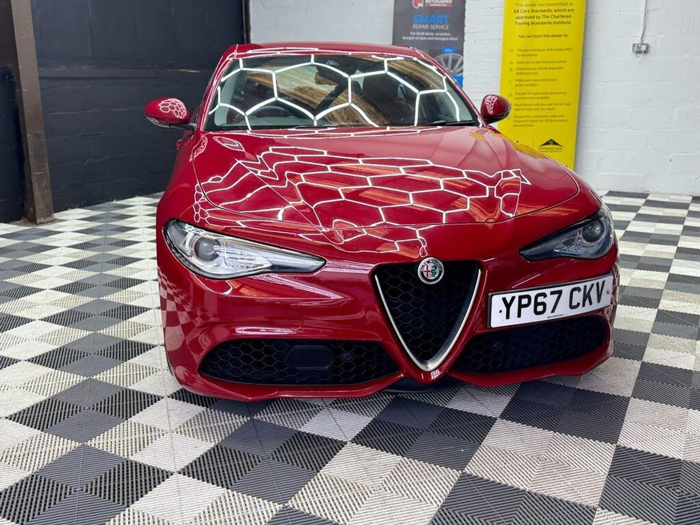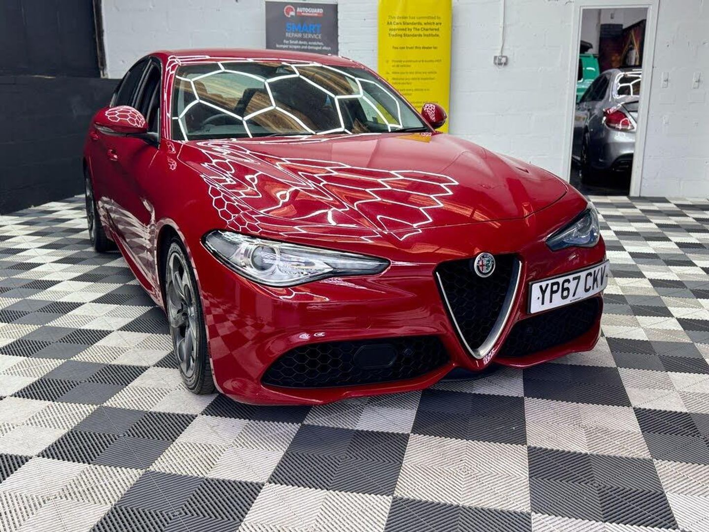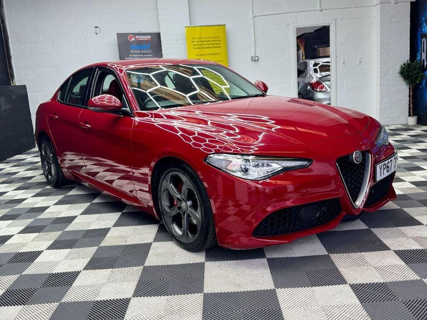 18in Alloy Wheels - 5 Hole Design - Dark Finish, 40-20-40 Split Folding Rear Seats, 6-Way Power Adjustable Front Seats, 8 Speaker Audio System, ABS - Anti Lock Braking System, Airbags - Driver, Airbags - Front Side, Airbags - Passenger, Airbags - Passenger Deactivation, Alfa Connect 3D Nav 8.8in Infotainment System, Alfa DNA Driving Mode Selector, Alfa Rotary Pad, Aluminium Sports Pedals - Central Tunnel Cover and Front Door Mouldings, Auto Headlights, Auto Windscreen Wipers, Autonomous Emergency Braking - AEB, Bi-Xenon Headlamps - 25W LED DRL, Black Painted Interior Bezels, Brake Calipers - Red, Climate Control - Dual Zone, Cruise Control, DAB Radio, ESC - Electronic Stability Control, Electric Parking Brake, Electric Windows - Front and Rear, Electrical Side Bolster Support, Electrochromic Rear View Mirror, Engine Start Button on Steering Wheel, Fix and Go Puncture Repair Kit, Forward Collision Warning - FCW, Front Passenger Sun Visor with Mirror, Gloss Black Window Surrounds, Head Restraints - Third Rear, Heated Steering Wheel, Heated Washer Nozzles, Integrated Braking System - IBS, LED Tail and Brake Lamps, Lane Departure Warning - LDW, Parking Sensors - Rear, Perimeter and Volumetric Alarm System, Power Folding Mirrors, Power Steering, Remote Central Locking, Run Flat Tyres, Seats - Heated Front, Sport Pack, Sports Diffuser and Dual Chrome Exhaust, Sports Front and Rear Bumpers, Sports Leather Multi-Function Steering Wheel, TPMS - Tyre Pressure Monitoring System, Tyre Repair Kit, Veloce Interior Pack, Driver Assistance Pack, Aluminium Door Sills, Leather Sports Seats - Red, Mid-Level Audio Sound Theatre, Smokers Kit, Climate Pack