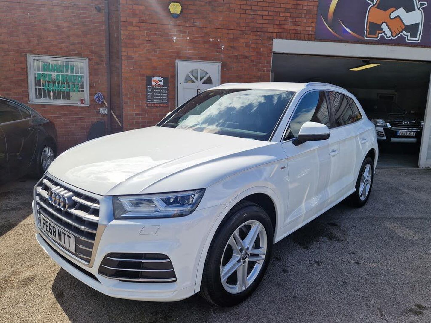 Direct part exchange from a main Audi Dealership is This 2018 Audi Q5 TDI S line offers a compelling blend of performance and refinement, boasting a powerful 2.0 litre diesel engine and Audi's renowned Four Wheel Drive system for confident handling in all conditions. As a Euro 6 compliant vehicle, it benefits from lower CO2 emissions, making it a more environmentally conscious choice. This S line model comes equipped with a host of desirable features, including heated front seats for enhanced comfort, a Bluetooth interface for seamless connectivity, and a light and rain sensor that automatically adjusts headlights. Parking is made effortless with the Audi Parking System Plus, featuring front and rear sensors, while the Deluxe 3-Zone Climate Control ensures a pleasant cabin temperature for all occupants. With a substantial towing weight of 2400 kg, this Q5 is also a capable companion for leisure activities.