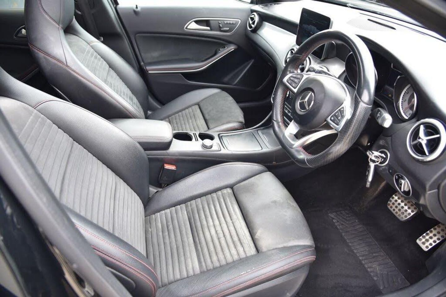 Artico Leather-Dinamica Microfibre - Black with Red Contrast Stitching, Panoramic Sunroof, 19in Alloy Wheels - AMG 5-Spoke Design in Titanium Grey with High Sheen Finish, ABS - Anti-Lock Braking System with BAS - Brake Assist, AMG Bodystyling - Front and Rear Apron - Side Skirts, ATTENTION Assist, Active Bonnet - Pedestrian Safety Measure which Detects an Impact and Raises Bonnet by 65mm, Active Braking Assist, Adaptive Brake Assist with Hold Function and Hill Start Assist, Adaptive Brake Lights, Air Vents with Chrome Surround and Cruciform Nozzle, Airbags - Automatic Child Seat Recognition Sensor, Airbags - Dual Stage - Driver and Front Passenger, Airbags - Sidebags for Driver and Front Passenger, Airbags - Windowbags for Driver and Front Passenger, Ambient Lighting - Single Colour in Headrests, Anti-Theft Protection Package, Audio 20 Radio-CD, Beltline Strips - Chrome, Brake Calipers with Mercedes-Benz Lettering, Brushed Stainless Steel Sports Pedals with Rubber Studs, Bumpers - Front and Rear Apron Trim - Matt Titanium Grey, Childproof Locks - Manually Operated for Rear Doors and Electrically Operated for Rear Power Windows, Crash-Responsive Emergency Lighting, DIRECT SELECT Gearshift Lever - Steering Wheel Gearshift Paddles and Cruise Control with SPEEDTRONIC Variable Speed Limiter, Door Handles - Body Coloured, Door Mirrors - Body-Coloured with Integrated LED Indicators and Aspherically Curved Mirror Glass, Door Mirrors - Electrically Adjustable and Heated, Double Cup Holder in Centre Console, Drivers Kneebag, Dynamic Select with a Choice of Driving Modes - ECO-Comfort-Sport and Individual, EASY-PACK Powered Tailgate, ESP - Electronic Stability Programme with ASR - Acceleration Skid Control, Electric Parking Brake, Electric Windows - 4, Electronic Key - Chrome Surround, Exhaust System - Visible Two-Pipe with Chrome Tailpipe Tips, First Aid Kit and Warning Triangle, Floor Mats - Red Stitched Edging - AMG Lettering, Footwell Lighting - Front and Rear, Front Centre Armrest with Stowage Compartment, Front and Rear Bumpers in Vehicle Body Colour, Glass - Rear Windscreen - Heated with Timer Control, Headlight Assist - Automatic Headlight Activation, Headlights - Halogen, ISOFIX and Top-Tether Child Seat Fixing Points in Rear, Illuminated Front Door Sills with Mercedes-Benz Lettering, Illuminated Glove Compartment, Instrument Cluster - Fluid Level Warning Indicator for Fuel - Oil - Coolant and Washer Fluid, Instrument Cluster - Outside Temperature Display, Instrument Cluster - Trip Computer in Multi-Function Display Showing Current Fuel Consumption, Instrument Cluster with 4 Analogue Dials and Needles Suspended in Six-o-Clock Position, Interior Lighting - Courtesy White and Warning Red Lights in the Front Doors and Boot Lid, Interior Lighting - Sun Visor with Illuminated Vanity Mirror for Driver and Front Passenger, Interior Lighting in Rear with Integrated Reading Lights and Locator Lighting, Lighting in Storage Compartment and Sun Visors with Illuminated Vanity Mirrors, Load Securing Rings in Luggage Compartment, Luggage Compartment Cover, Luggage Nets on the Rear of Front Seats, Media Display - 8in, Media Interface, Mercedes Me Connect, Net in Passenger Footwell, Off Road Comfort Suspension, Part LED Tail Lights, Power Steering - Sports Direct Steer System with Speed Sensitive Servo Assistance, Privacy Glass - From B-Pillar Backwards, Radiator Grille - Two Louvres in Silver with Chrome Highlights, Radio Aerial Roof Spoiler, Rear Armrest with Twin Cup Holder and Through-Loading Facility, Rear Seats - Split Folding 1-3 2-3, Rear Windscreen Wiper with Intermittent Wipe and Automatic Activation When Reversing, Remote Central Locking, Reversing Camera with 180 Degree View, Roof Lining - Black, Roof Rails - Aluminium Finish, Run Flat Tyres, Seat Belt Reminder - Front and Rear, Seat Belts - Black, Seat Belts - Rear Three-Point - 3, Seat Comfort Package, Seat Occupancy Sensor - Front Passenger Seat, Seats - Front Cushion Length Adjustment, Seats - Front Manually Adjustable, Service Indicator ASSYST, Single Colour Ambient Lighting in Interior Door Handles, Smartphone Integration, Spectacles Compartment in Overhead Control Panel, Sports Seats with Integrated Head Restraints, Steering Column - Manually Adjustable for Height and Reach, Steering Wheel - 3-Spoke - 12 Button Multi-Function - Trimmed in Nappa Leather with Perforated Leather in Grip Area - Flattened Bottom Section, Storage Boxes Under Front Seats, Storage Compartment Beneath Load Compartment Floor, THERMOTRONIC Luxury Automatic Climate Control - Two-Zone with Display, Third Brake Light in LED Technology, Trim - Light Aluminium with Longitudinal Grain, Tyre Pressure Monitoring System, Wiper System - Heated front Windscreen with Washer System, Wiper System - Windscreen Wipers Including Rain Sensor with Two Sensitivity Stages