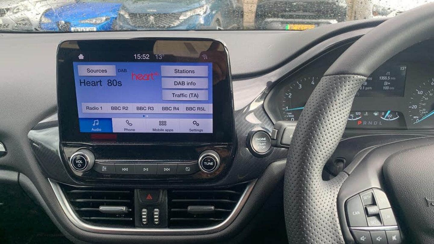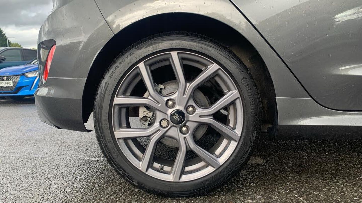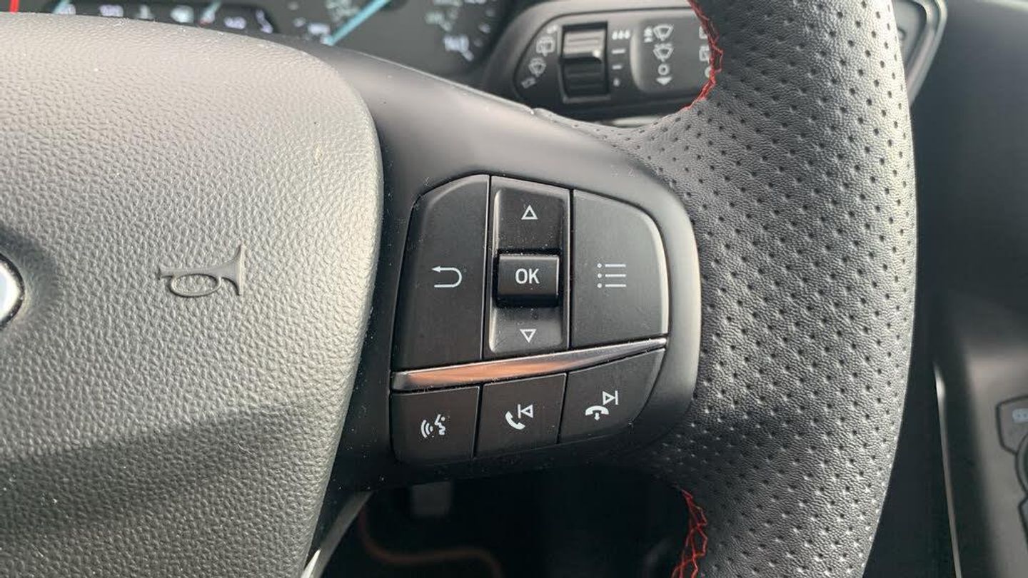 Ford SYNC2.5 without Navigation or Embedded Voice Control and Embedded Modem, 4.2in TFT Ice Blue Illumination Analogue Cluster with Trip Computer, Cruise Control includes Speed Limiter and Intelligent Speed Assistance, Parking Distance Sensors - Rear, Selectable Drive Modes, Traffic Sign Recognition, Auto High Beam and Driver Alert, Trip Computer, Tyre Pressure Monitoring System - TPMS, 17in Alloy Wheels - 5x2-Spoke - Rock Metallic, Active Grille Shutter, Chrome Exhaust Trim, Door Handles - Body Colour, Door Mirrors - Heated - Electric - Integrated Side Indicators - Body Coloured, Electric Windows - Rear, Front Bumper - Unique ST-Line, Front Upper Grille - Unique ST-Line - Body Coloured, Locking Wheel Nuts, Quickclear Heated Windscreen, Rear Bumper - Unique ST-Line, Rear Privacy Glass, ST-Line Badge, Tailgate Handle - Body Colour, Tyre Repair Kit, Unique ST-Line Grille - Full Bodystyling Kit, and Large Body Coloured Rear Spoiler, Windows - Electrically-Operated Front with One-Touch Lowering-Closing on Drivers Side, LED Headlights with Daytime Running Lights and Integrated Fog Lights, Rear Lights - Non-LED - Splite, Air Conditioning - Manual, Auto Dimming Rear View Mirror, Black Interior Headlining, Cargo Area Cover, Centre Console - Premium with Openable Stowage Area with USB Connectivity - 2 Cupholders and 12v Power Point, Courtesy Light - Front LED with Map-reading Light, Door Lever - Chrome Finish, Floor Mats - Front Deluxe Carpet, Front Seat - Driver 4-Way Manual Adjust, Front Seat - Passengers Manual Fore-Aft Adjustment, Front Seats - Drivers and Passengers Seatback Map Pockets, Gearshift Knob - Leather-Trimmed, Handbrake - Black, Keyless Start, MyKey, Rear Fog Lamps, Rear Seat - 60-40 Split Back and Cushion, Rear Seat Centre Headrest, Seats - Front Passenger 2-Way Adjustment, Sports Seats, Steering Column - Rake and Reach Adjustment, Steering Wheel - ST-Line 3-Spoke Sensico-trimmed Flat-bottomed with Red Stitching, Wipers - Automatic with Rain Sensor, EPAS - Electric Power Assisted Steering, Sports Tuned Suspension, Airbags - Driver and Front Passenger, Airbags - Front Side Impact, Airbags - Side Curtain, Anti-Lock Braking System - ABS with Electronic Brake Force Distribution - EBD, Emergency Brake Warning - Automatic Flashing of Brake Lights Under Heavy Braking, Enhanced Electronic Stability Control - ESC with Traction Control - Emergency Brake Assist - EBA - Hill Start Assist - HSA, Ford Easy-Fuel Capless Refuelling System, IPS - Intelligent Protection System, Lane-Keeping Aid with Lane-Keeping Assist, Remote Central-Double Locking, Seats - ISOFIX Mounting Provision for Child Seats, Tailgate Wash-Wipe, Thatcham Category Alarm with Power Door Deadlocks