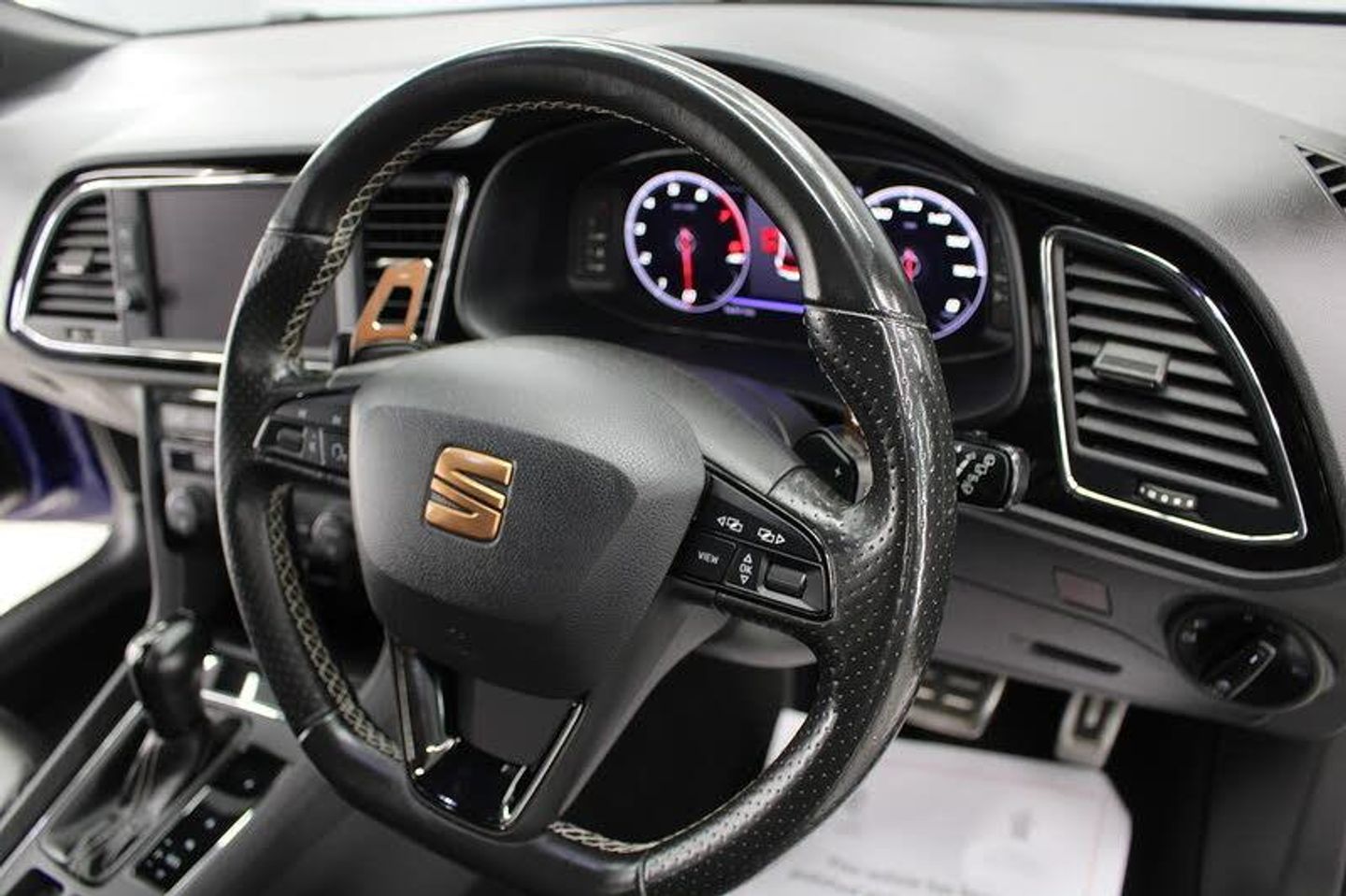 Mystery Blue, 12V Power Supply in Centre Console, Media System Plus, Navigation System, SEAT Full Link Smartphone Integration - Mirror Link - Apple CarPlay - Google Android Auto, Adaptive Cruise Control - ACC, Digital Clock, Front and Rear Parking Sensors, Gearshift Indicator, Low Fuel Warning Light, Outside Temperature Gauge, RPM Counter, SEAT Drive Profile, Trip Computer, Tyre Pressure Monitoring System, 19in Alloy Wheels - CUPRA Machined, Black Brake Calipers - Front and Rear with Cupra Logo, Bumpers - Exclusive Cupra Front and Rear, Dark Tinted Rear Windows, Electrically Adjustable Folding and Heated Door Mirrors, Front and Rear Electric Windows, Gloss Black Door Mirrors with Integrated LED Indicators, Radiator Grille Frame in Glossy Black, Radiator Grille in Black, Space-Saving Spare Wheel, Visual Dual Exhaust Pipes, Full LED Headlights, Lights Left On Warning Buzzer, Armrest - Front with Storage Compartment, Black Interior Roof Lining, Convenience Pack Plus, Digital Cockpit, Driver and Passenger Seat Height Adjustment, Driver and Passenger Sunvisor with Covered and Illuminated Mirrors, Dual Zone Climate Control, Flat Bottomed-Perforated Leather Steering Wheel with White Stitching and CUPRA Logo, Illuminated Aluminium Front Door Sill with Trim Logo, Instrument Lighting with Brightness Control, Leather Gear Knob, LED Interior Illumination Pack, Multi Coloured Ambient Lighting, Pedals in Aluminium, Split Folding Rear Seats 60-40 with Armrest, Steering Wheel-Mounted Gearshift Paddles, Storage Box Under Driver and Front Passenger Seat, Two Height-Adjustable Front and Rear Headrests, Electro-Mechanical Progressive Power Steering, ESC Switch-Off Key, Sports Suspension, 7 Airbags, ABS and Traction Control System - TCS - Electronic Stability Control - ESC - and Front Differential Lock System - XDS, Alarm - Volumetric, Electric Parking Brake Including Autohold Function, Front Assist with Pedestrian Protection, ISOFIX Points in Outer Rear Seats with Top Tether Anchorage Points, Keyless Entry and Go - KESSY and Wireless Phone Charger, Multi-Collision Braking System, Safety Pack, Seatbelt Reminder - Front