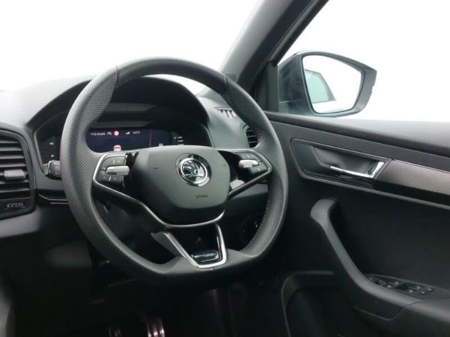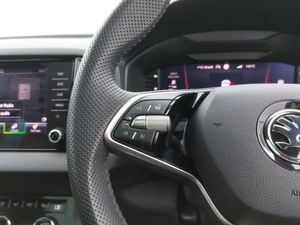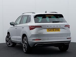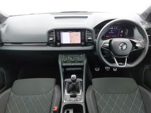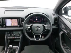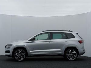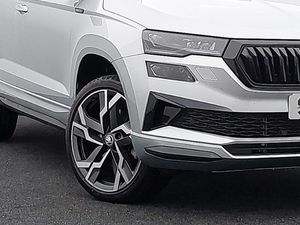 Android Auto, Apple CarPlay, Heated steering wheel, LED daytime running lights, 8" Digital display, Advanced driver attention and drowsiness monitor, Sensor for driver assistance systems, SmartLink wireless for Apple and wired for Android, Start/stop system with regenerative braking, USB C Port x 2 in front centre console, Virtual Cockpit - 10.25" digital display, Virtual pedal with electrically operated boot door, DAB radio with Bluetooth, LED rear lights with high functionality welcome effect and dynamic indicators, Light assistant (coming/leaving home/tunnel light), Panoramic sliding sunroof, Privacy glass, Sports front and rear bumpers, Sportline decorative inserts with badging, Acoustic glass, Aero front windscreen wipers with intermittent function, Black electric window control buttons, 3 rear height adjustable headrests, 3 seat bench in 2nd row, 3 spoke sports leather heated multifunction steering wheel, Height adjustable front three point seats belts with tensioners, Height/reach adjust steering wheel, Isofix child seat preparation for front passenger seat, Isofix child seat preparation outer rear, LED Interior lighting pack with Skoda welcome logo - Karoq, Light Pack - Karoq