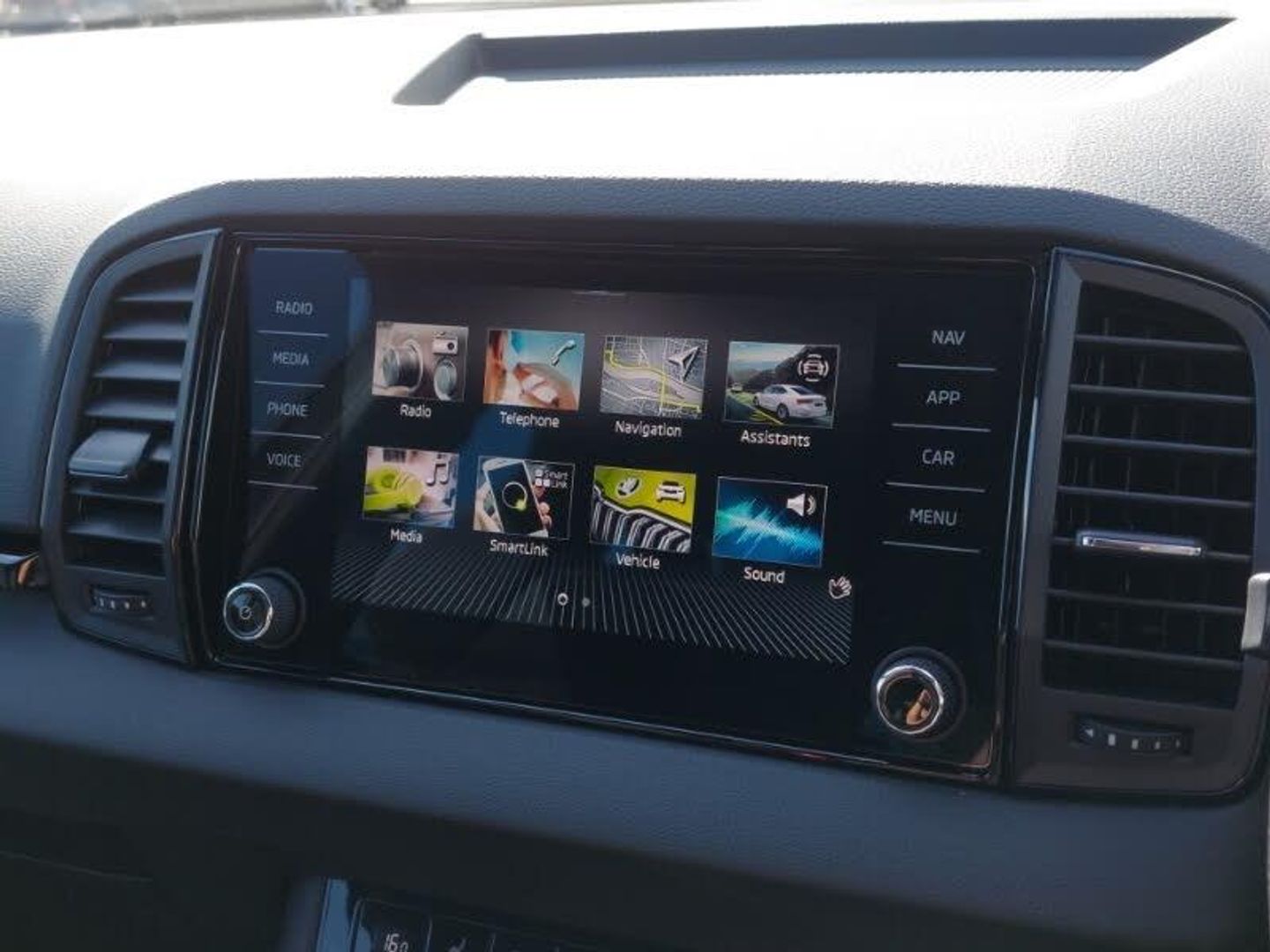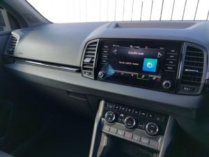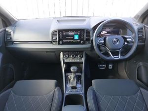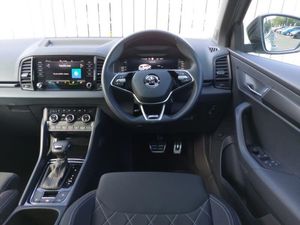 LED Interior lighting pack with Skoda welcome logo - Karoq, Virtual Cockpit - 10.25" digital display, Wireless smartphone charging, SmartLink wireless for Apple and wired for Android, Heated steering wheel, Start/stop system with regenerative braking, Panoramic sliding sunroof, Privacy glass, Acoustic glass, Auto dimming rear view mirror with light and rain sensors, 3 spoke sports leather heated multifunction steering wheel with DSG paddles, Electronic parking brake with auto hold function, Hill hold control, Keyless entry and start/stop, 19" Sagittarius anthracite alloy wheels