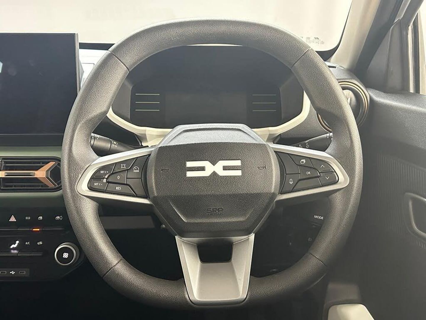 1 Piece Folding Rear Bench Seat Back, 15in Steel Wheels - Danube, 2 x 3-Point Rear Seatbelts, 3-Speed Front Windscreen Wipers, 6 Airbags - Front and Side Driver and Passengers including Curtain Airbags, Alcohol Immobiliser Predisposition, Anti-lock Braking System - ABS and Emergency Brake Assist - EBA, Auto Lighting System, Automatic Emergency Braking System - AEBS, Automatic Wiper, Child Locks in Rear Doors, Configurable 7in Digital Instrument Panel and 13-Function On-Board Computer, Cruise Control and Speed Limiter, DC Charger, Dacia Lettering on Boot Lid - Copper Brown, Dashboard Decopart - Khaki, Dedicated Regenerative Braking Mode, Door Handles - Body Coloured, Door Mirrors - Copper, Door Mirrors - Electric, Door Open - Visual and Audible Warning, Door Sill Protection with Topographic pattern, Driver Attention Warning, Driver and Passenger Seatbelt Not Fastened Warning, ECO Mode, ESC - Electronic Stability Control with HSA - Hill Start Assist, ESS - Emergency Stop Signal, Electric Power-Assisted Steering, Electric Windows - Front and Rear, Emergency Call - E-Call, Engine Immobiliser, Event Data Recoder, Front - Rear Bumper - Body Coloured - Black Elements with Decorative Inserts, Front 12v Plug, Front and Rear Parking Sensors and Rear-View Camera, Front and Rear Seat Belts with Pyrotechnic Pretensioners, Heated Rear Window, Height adjustable Steering Wheel, High Level Third Brake Light, ISOFIX Attachment System for Child Seats - Rear Seats, Interior Door Handles - Steel Grey, Interior Lighting - Front Reading Spotlights, LED Automatic Daytime Running Lights, LED Y Shape Dacia Lighting Signature, Lane Departure Warning and Lane Keep Assist, Manual Air Conditioning, Manual Parking Brake, Media Nav Live, Mode 3 Cable, My Safety Button, Rear Fog Lights, Rear Washer-Wiper, Rear Window Demisting, Remote Central Locking and with Key, Rescue Code, Rubber Floor Mats with Topographic Pattern, Seat Coverings - Plastic Coated Fabric with Dacia Embossing and Copper Brown Top Stitching, Seatbelt not Fastened - Visual and Audible Warning, Side Air Vent Surrounds - Copper Brown, Side Decal on Door, Side Decal on Quarter Panel with Spring Wording, Side Impact Protection, Soft Feel Steering Wheel, Tinted Windows, Traffic Sign Recognition with Speed Alert Intelligent Speed Assist ISA, Tyre Inflation Kit, Tyre Pressure Monitor, USB Socket, YouClip 3 Fixation Points