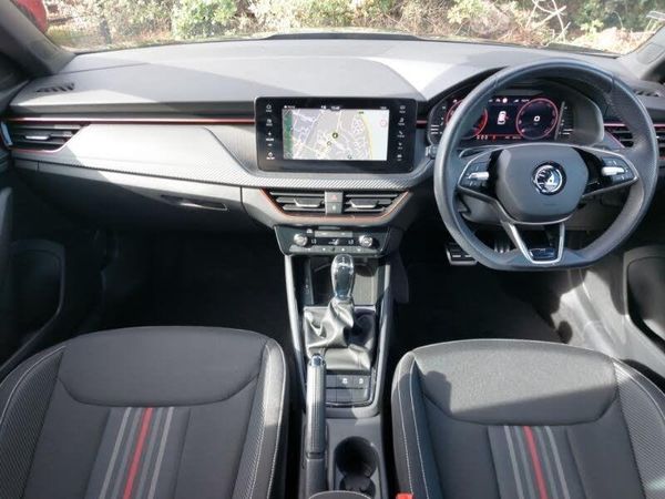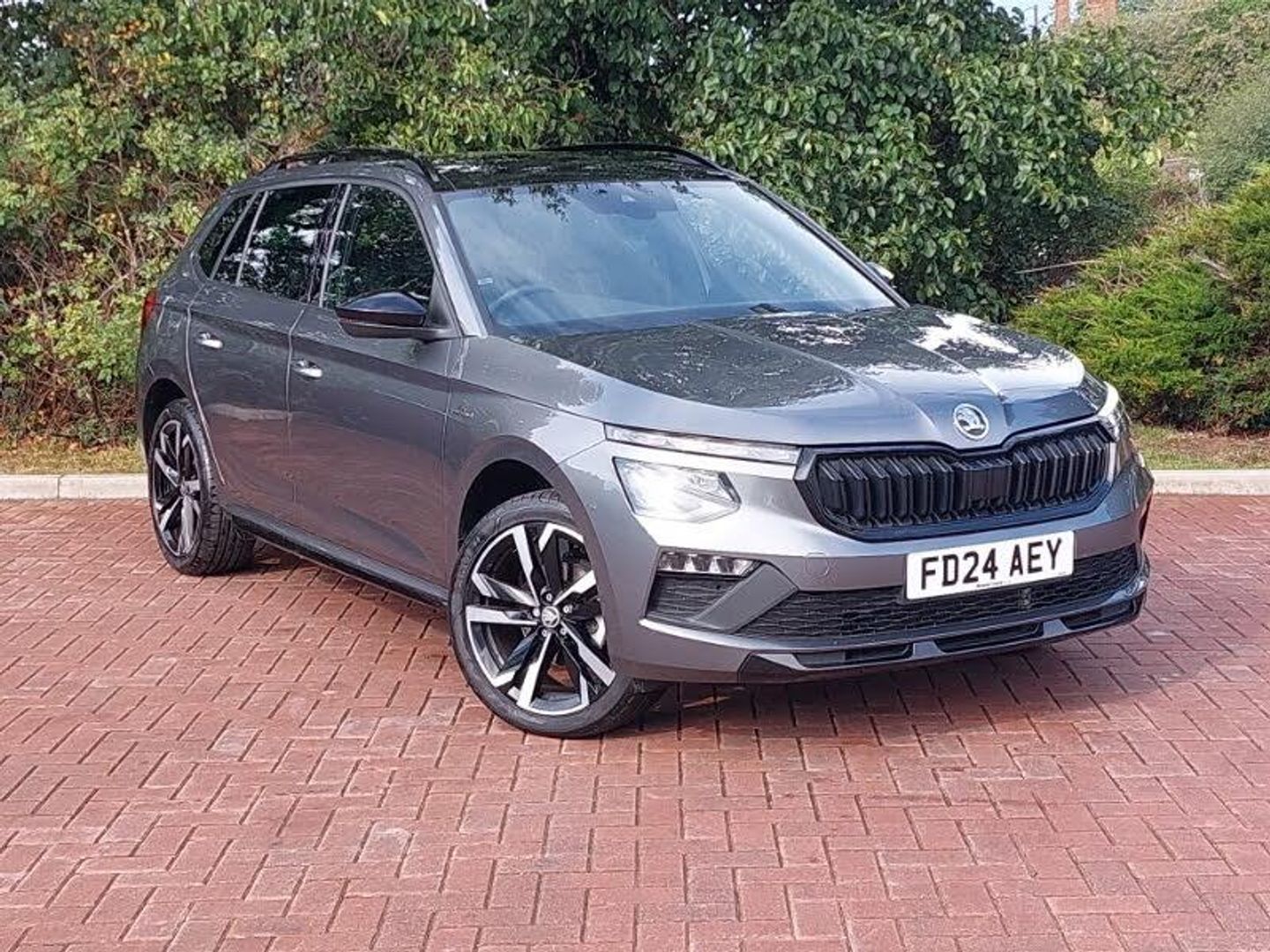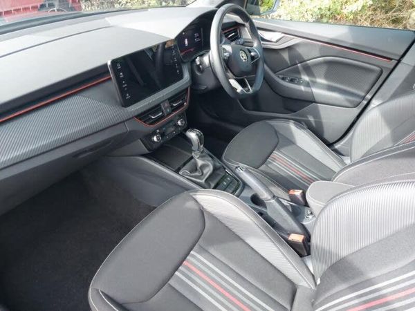 18" Ursa black diamond cut alloy wheels, 9.2" Skoda navigation display, Fixed panoramic sunroof with black roof rails, Virtual cockpit with 10.25" display, Rear parking sensor, Android Auto, Apple CarPlay, LED daytime running lights, MirrorLink, Speed limiter, Front assist system, Bluetooth system, DAB Digital radio, Automatic headlight control with coming home and leaving home feature, Front and rear electric windows, Dual zone climate control, Light and view plus package - Kamiq, Traction control, Anti-theft alarm system with interior monitoring, backup horn, towing protection and remote central locking with SAFE system, Electronic engine immobilizer