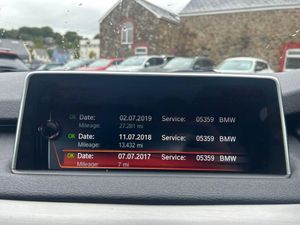 12V Power Sockets, 20GB HDD Memory, 20in Alloy Wheels - Light M Double Spoke Style - 469M Jet Black, 40-20-40 Split Folding Rear Seats, Access to BMW Connected Plus for 12 Months from Vehicle Production - Subscription Required, Adaptive Headlights, Adaptive M Sport Suspension, Air Conditioning - Automatic with Two-Zone Control, Airbags, Alarm System - Thatcham 1 with Remote Control and Engine Immobiliser, Alpine White, Ambient Interior Lighting, Apple CarPlay Preparation, Armrest - Front with Storage Compartment, Automatic Start-Stop Button, Automatically Dimming Rear View Mirror, Auxiliary Input Point for Auxiliary Playing Devices, Bluetooth Hands Free with USB Audio Interface, BMW ConnectedDrive Online Services, BMW ConnectedDrive Services, BMW Emergency Call, BMW Professional Radio with Single CD Player - with MP3 Playback Compatibility, BMW TeleServices, Brake Force Display, Check Control Warning System, Child Locking System - Rear Doors, Child Seat ISOFIX Attachment - Rear x2, Cold Weather Package, Condition Based Service, Courtesy Lights - Front and Rear with Soft On-Off Dimming, Cruise Control with Brake Function, Cup Holders - Front and Rear, DAB Digital Radio, Dakota Leather - Black with Black Interior, Deformation Zones - Front and Rear, Digital Cockpit, Direction Indicator - Side Repeaters - Integrated in Exterior Mirrors, Door Handles - Body Colour, Door Handles with Downlights, Door Mirrors - Aspheric - Tinted - Heated - Electric Adjustment, Door Mirrors - Ferric Grey Housing, Door Sill Finishers - M50d Designation, Driving Assistant, DSC - Dynamic Stability Control Plus, ECO PRO Mode, Electric Windows - Front and Rear, Electro-Mechanical Parking Brake with Auto-Hold Function, Enhanced Bluetooth Telephone Preparation with Wireless Charging, Exhaust Tailpipes - Stainless Steel with Black Finisher - Left and Right, Extended Storage, Exterior Trim - High Gloss Shadowline, Favourite Buttons, First Aid Kit and Warning Triangle, Floor Mats - Velour, Folding Side Mirrors with Auto-Dimming, Follow Me Home Headlight Function, Footwell Lights - Front with LED, Gearshift Lever with M Designation, Glove Compartment - Lockable and Illuminated, Head Restraints - Front and Rear, Head-Up Display, Headlining - Anthracite, High Level Third Brake Light, High-Beam Assistant, iDrive Touch Controller with Shortcut Buttons, Incorrect Fuelling Protection System, Indicator Lenses - Clear, Instrument Binnacle with Speedometer - Tachometer - Fuel Level and Consumption, Instrument Cluster with M50d Designation, Interior Trim - Aluminium Hexagon, Interior Trim - Fine Brushed Aluminium, Kidney Grille - Chrome with Titanium Vertical Slats, LED Fog Lights - Front, Locking Wheel Bolts, Loudspeaker System - BMW Advanced, Loudspeaker System - Harman Kardon, Luggage Compartment - Retractable and Removable Cover, M Aerodynamic Bodystyling, M Designation on Front Side Panels - Left and Right, M Leather Steering Wheel with Gearshift Paddles, M Servotronic Power Steering, M Sport Plus Package, Navigation System - BMW Professional Multimedia, OBC - On Board Computer, Optimum Shift Indicator, Panoramic Glass Sunroof, PDC - Park Distance Control - Front and Rear, Personal Profile, Power Socket - 12V in Luggage Compartment, Power Socket - 12V in Small Folding Compartment in Centre Console, Power Sockets - Two 12V in Centre Console - Rear, Rain Sensor with Automatic Headlight Activation, Reading Lights - Front and Rear, Real Time Traffic Information, Remote Control - Integrated Key with M Designation, Remote Control Locking, Remote Services, Reversing Assist Camera, Roof Rails - High-Gloss Shadowline, Run Flat Tyres, Seat Adjustment - Front Electric with Driver Memory, Seat Belts - Front - Inertia Reel with Pyrotechnical Belt Latch Tensioner - Belt Force Limiter and Belt Restrainer, Seat Belts - Rear - Three with Inertia Reel, Seat Heating - Front, Seat Heating - Rear, Securing Rings in Luggage Compartment x4, Side Impact Protection, Smokers Package, Speed Limit Display, Sport Automatic Transmission, Sport Seats - Front, Steering Column with Manual Reach and Rake Adjustment, Steering Wheel - Heated, Storage Compartment - Interior Door Panels, Sun Protection Glazing, Sun Visors with Illuminated Vanity Mirrors, Surround-View, Tailgate Split, Tailgate with X5 M50d Designation, Third-Row Seating, Toolkit Located in Luggage Compartment, TPMS - Tyre Pressure Monitoring System, Upper Tailgate Operation - Powered, Voice Control, Wash Wipe System - Rear, WiFi Hotspot Preparation, Windows - Heat Insulated-Green Tinted All Round, Windscreen Washer Jets - Heated, Xenon Headlights with Headlight Wash