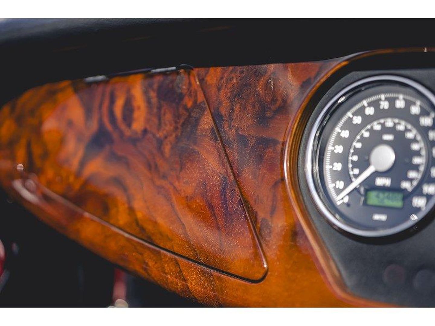 The interior of the car comes in black leather with red piping. It also has a walnut dashboard with a gloss veneer. It comes with a radio fitted, fully functioning air conditioning and 2 USB ports.