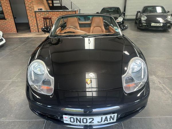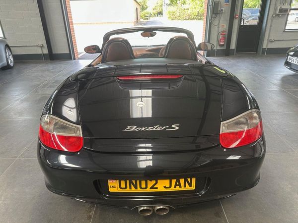 2004 Boxster S facelift model with just 23k miles from new. 1 previous keeper, Basalt black metallic, full cinnamon leather interior extended to doors and dash, sound package, air conditioning, power hood, top tinted screen, wind deflector, CDR 23 raio/CD with storage, service, new clutch and IMS upgrade just been carried out by us, new tyres.
